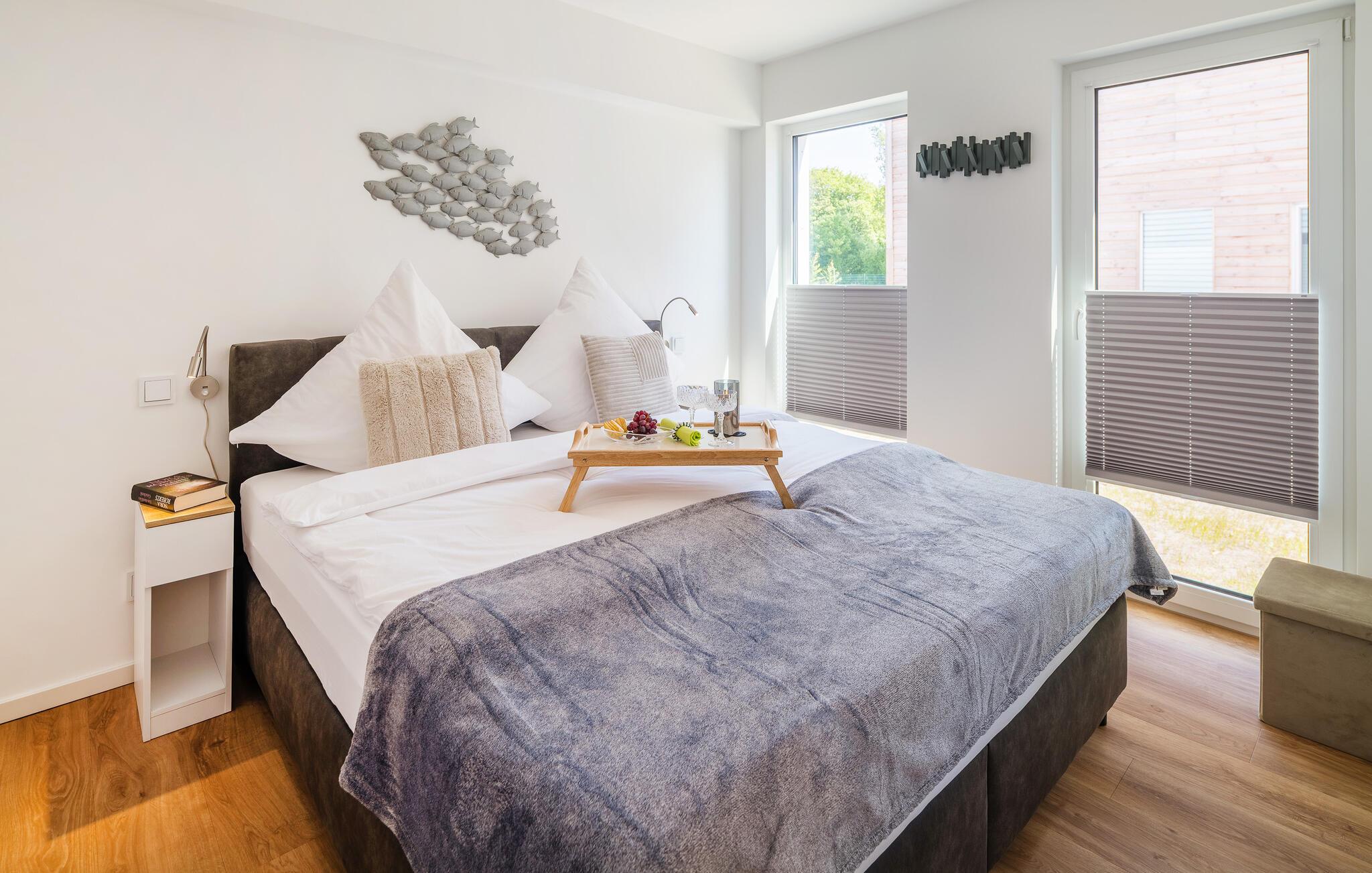 Nyd en dejlig ferie i denne komfortable ferielejlighed med infrarød sauna og pejs. Velkommen til denne indbydende og moderne lejlighed, der byder jer velkommen til en fantastisk beliggenhed på den smukke Butjadingen-halvø i Nordsø-byen Tossens ved Vadehavet og inviterer jer til en afslappende ferie omgivet af smuk natur med hele familien. Lejligheden tilbyder masser af plads til fælles aktiviteter, uanset om I laver mad sammen, holder en spilleaften eller nyder en hyggelig snak på sofaerne i den lyse og rummelige stue. Den stille knitren fra pejsen skaber en særlig hyggelig atmosfære. Et højdepunkt i lejligheden er den infrarøde sauna af høj kvalitet. Slap af på varme sommerdage på terrassen direkte ved vandet. Her kan I nyde en afslappet morgenmad og tilberede lækre måltider på grillen. Gå en tur til stranden, forfrisk jer i havet, eller tag en lang gåtur. Butjadingen-halvøen er kendetegnet ved sin direkte, men beskyttede beliggenhed ved den indre Jade-flod. Forskellige udflugtsmål, såsom den historiske hansestad Bremen eller havnebyen Bremerhaven, byder på kultur og sightseeing. På den frisiske strand er der et udsigtstårn med en fantastisk udsigt over Wilhelmshaven. For de yngre gæster tilbyder Tossens ”Nordsee-Lagune Butjadingen” og en pirat-legeplads.