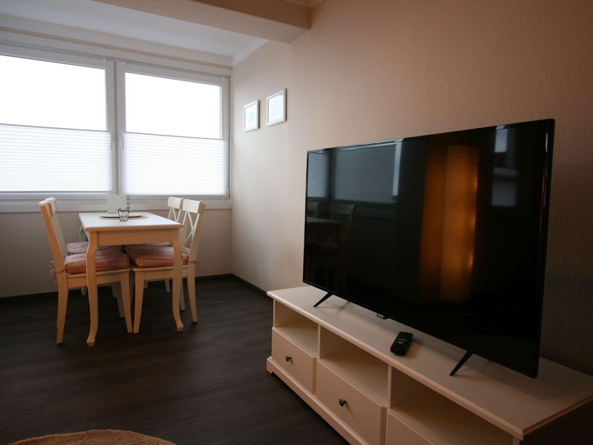 The holiday flat has been tastefully and timelessly furnished by the owner, who has not spared any exclusive details. The rooms are individually furnished and impress with their attention to detail. Antique, paired with modern luxury, paired with the everyday. Spend unforgettable days in this fantastic holiday flat with a view of the Baltic Sea. The holiday flat is in an exclusive location on Schönberg beach, directly on the promenade/sea bridge. You have a direct view of the Baltic Sea and the beautiful beach. From the hallway you enter the open-plan living/dining area. The new fitted kitchen will delight you and is equipped with everything you would expect from a modern kitchen. You will be entertained in bad weather (although we don't know that) by a modern Bluetooth box (JIM MARSHALL) and a huge PHILIPS LCD flat screen TV with 139 cm diagonal. In the shower room you will find a shower area measuring 120 x 90 cm, equipped with a rain shower. The washbasin is free-standing and impresses with its timeless design. The children's room has antique pine wardrobes and a Hemnes bed. The bed is extendable and offers enough space for 2 people on a lying surface of 2 x 80 cm x 200 cm. In the bedroom you will find a double bed with a lying surface of 160 x 200 cm and a large wardrobe in a timeless design.