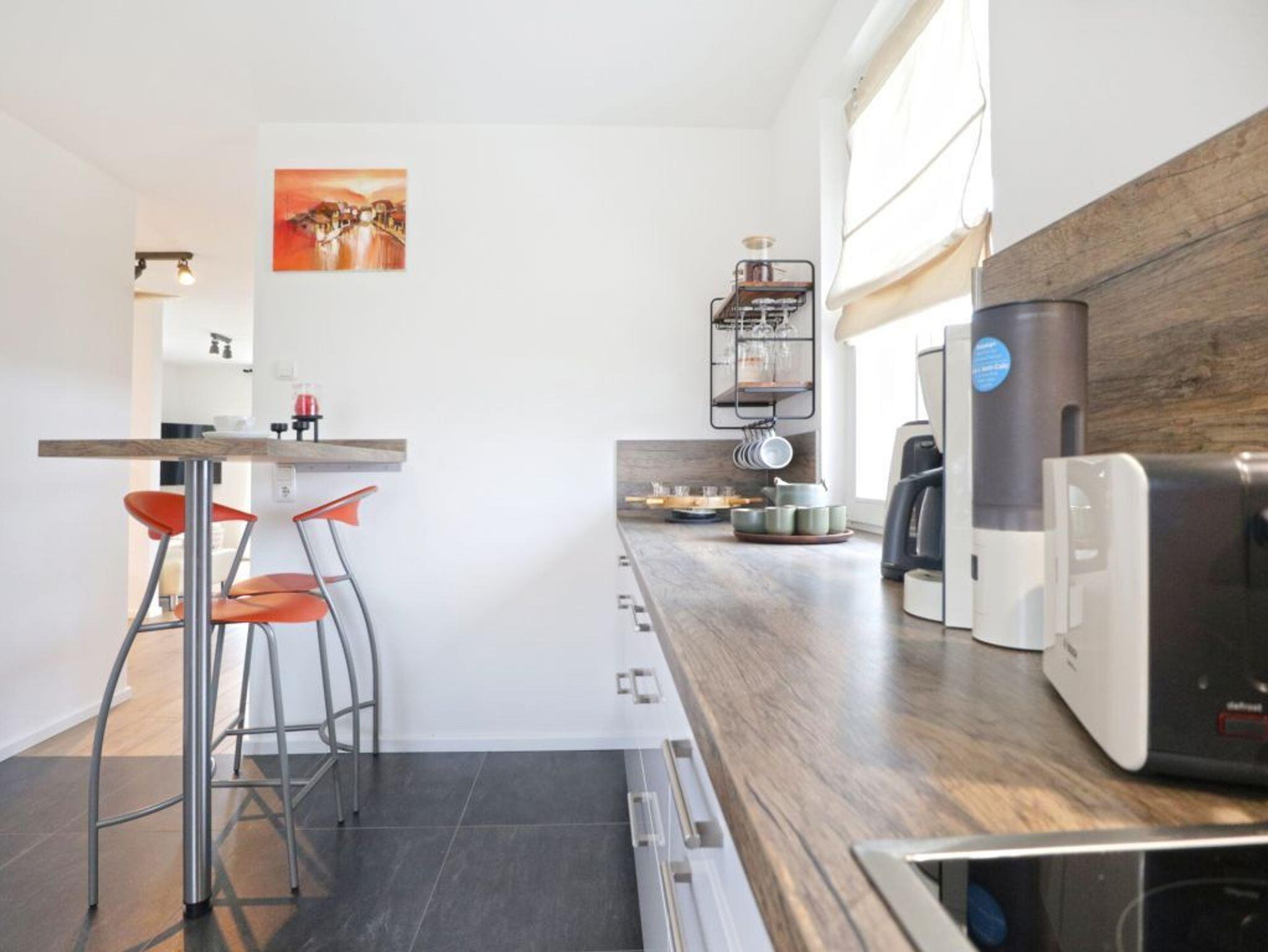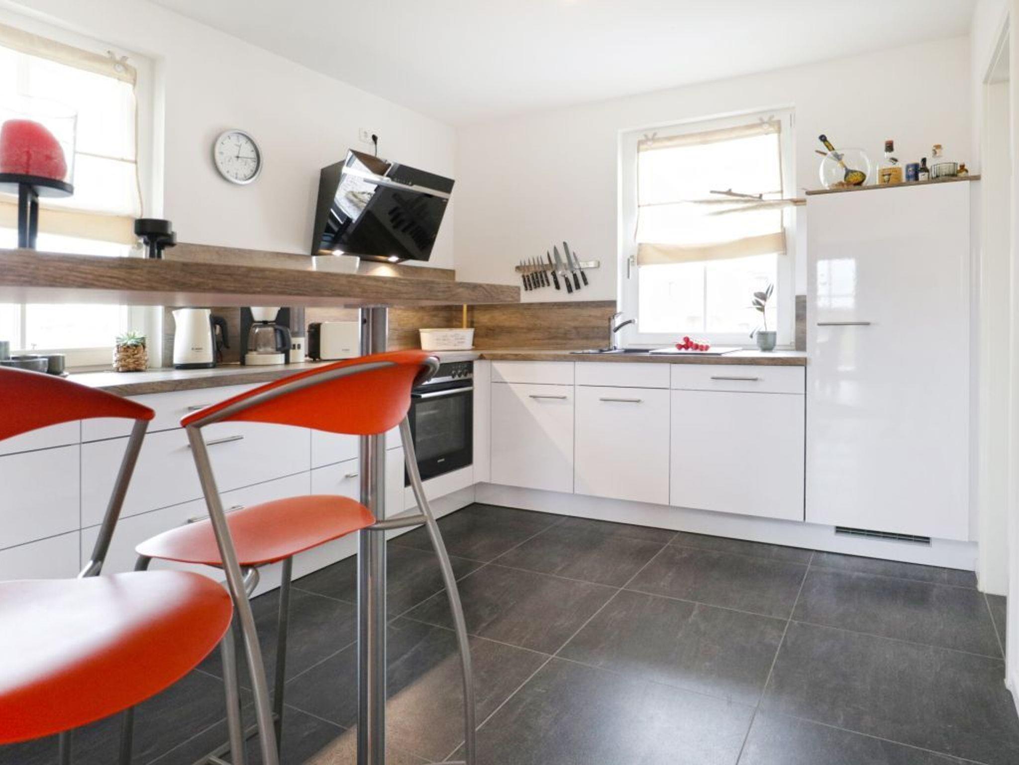 Blick auf den wohligen Kaminofen gemütlich machen können. Die separate Einbauküche ist mit