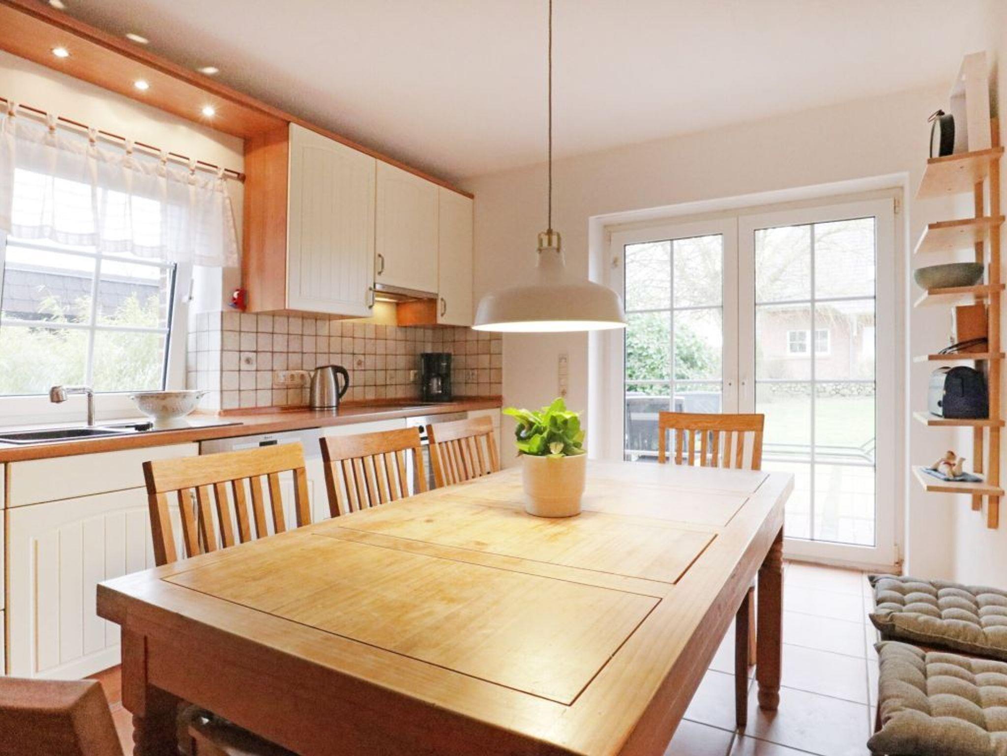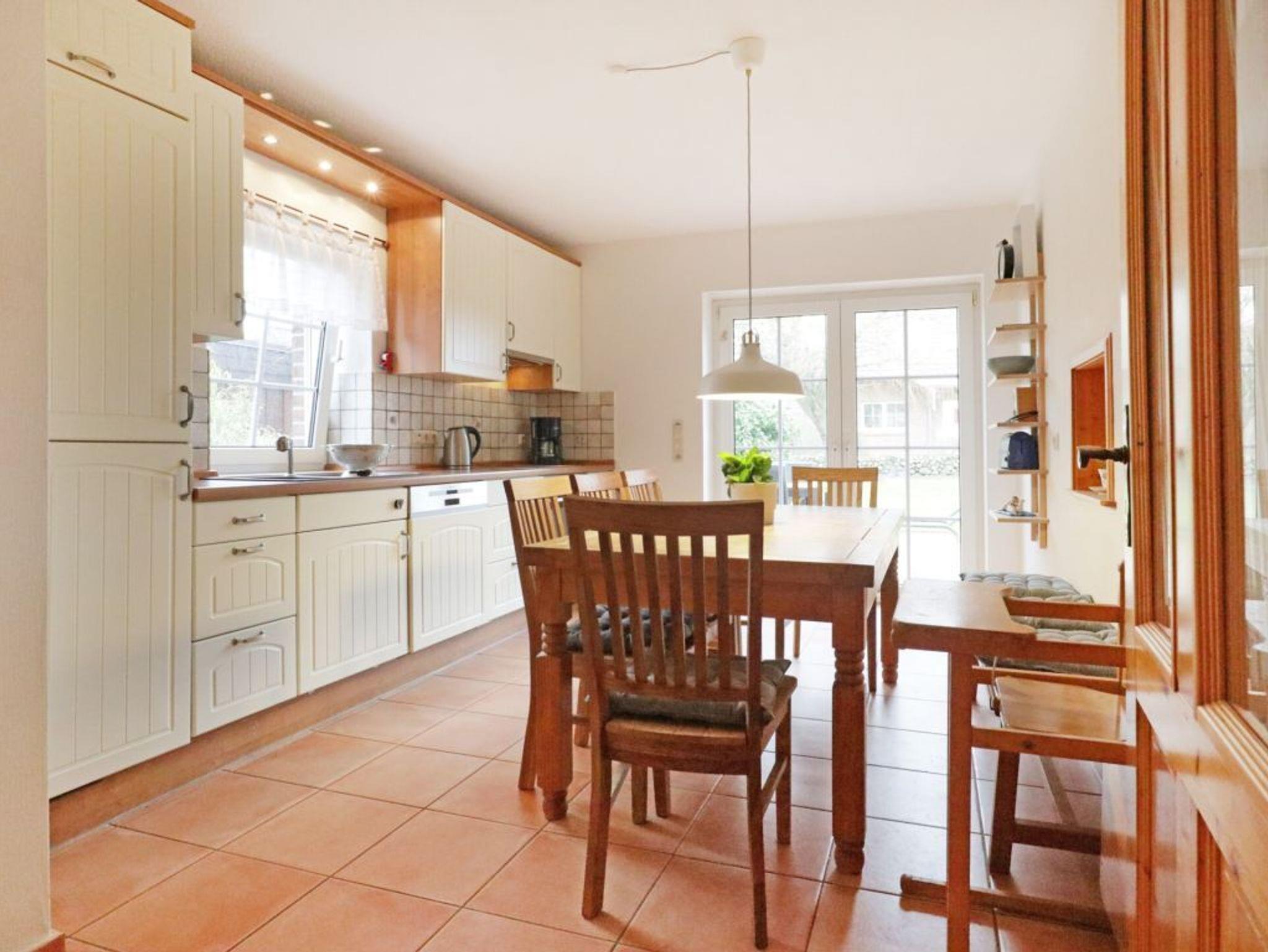 Das Feriendomizil Sonnenblick besitzt eine Wohnfläche von 132qm 105qm und verwöhnt mit sehr komfortabler Ausstattung. Die durchdachte Raumaufteilung mit drei separaten Schlafzimmern zudem ein Tageslicht Vollbad und Gäste-WC ermöglichen einen erholsamen Aufenthalt für bis zu 8 Personen. Der großzügige Wohn- und Essbereich mit Kaminofen lädt zur Auszeit ein. Hier können Sie die wohlige Wärme auf dem bequemen Sofa genießen, während Sie fernsehen oder Musik hören. Kostenloses WLAN steht Ihnen ebenfalls zur Verfügung. Angrenzend befindet sich eine separate, voll ausgestattete Küche mit Terrassenzugang, die alles bietet, was Sie benötigen: Ceranfeldherd, Backofen, Mikrowelle, Kühlschrank, Kaffeemaschine, Wasserkocher, Toaster und Geschirrspüler. Ihre Mahlzeiten können Sie am großen Esstisch oder auf der saisonal möblierten Terrasse mit Blick in den Garten genießen. Im Erdgeschoss finden Sie ein Schlafzimmer mit Doppelbett und Kleiderschrank sowie einen Hauswirtschaftsraum mit kostenloser Waschmaschine. Ein Gäste-WC ist ebenfalls vorhanden. Über eine Treppe gelangen Sie ins Obergeschoss, wo sich zwei weitere Schlafzimmer mit jeweils einem Doppelbett, Kleiderschrank und einem Einzelbett befinden. Eines der Zimmer ist mit einem Fernseher ausgestattet. Das geräumige Tageslichtbadezimmer bietet Ihnen eine Badewanne, Dusche, Waschtisch und WC. Für Familien stehen ein Kinderreisebett und ein Hochstuhl bereit. Ihre Fahrzeuge parken Sie kostenlos auf zwei hauseigenen Stellplätzen. Auch Gäste mit Hund sind herzlich willkommen. Ein Hund wird mit 10? pro Tag berechnet. Bitte beachten Sie, dass bei Anreise eine Kaution von 500,00 ? zu hinterlegen ist. Das Ferien Einzelhaus bietet eine komfortable und gut ausgestattete Umgebung für einen familienfreundlichen Urlaub nahe der Ostsee.