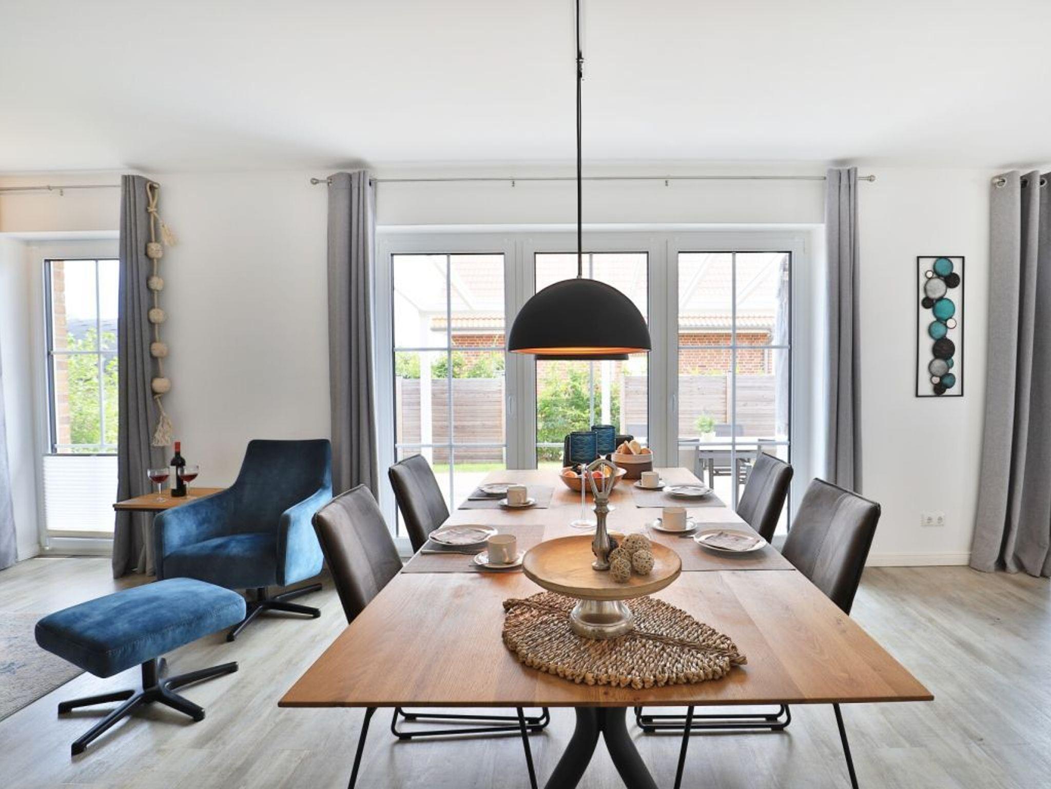 Das hochwertig eingerichtete 4- Zimmer Einfamilienhaus Kapitänhaus ermöglicht Ihnen einen nahezu perfekten Ferienaufenthalt. Lassen Sie sich verzaubern von diesem geräumigen Ferienhaus mit Balkon, überdachter Terrasse sowie Garten mit Fasssauna (gegen Gebühr). Die Wohnfläche umfasst 131qm und bietet erholsame Urlaubsatmosphäre für bis zu sechs Personen.