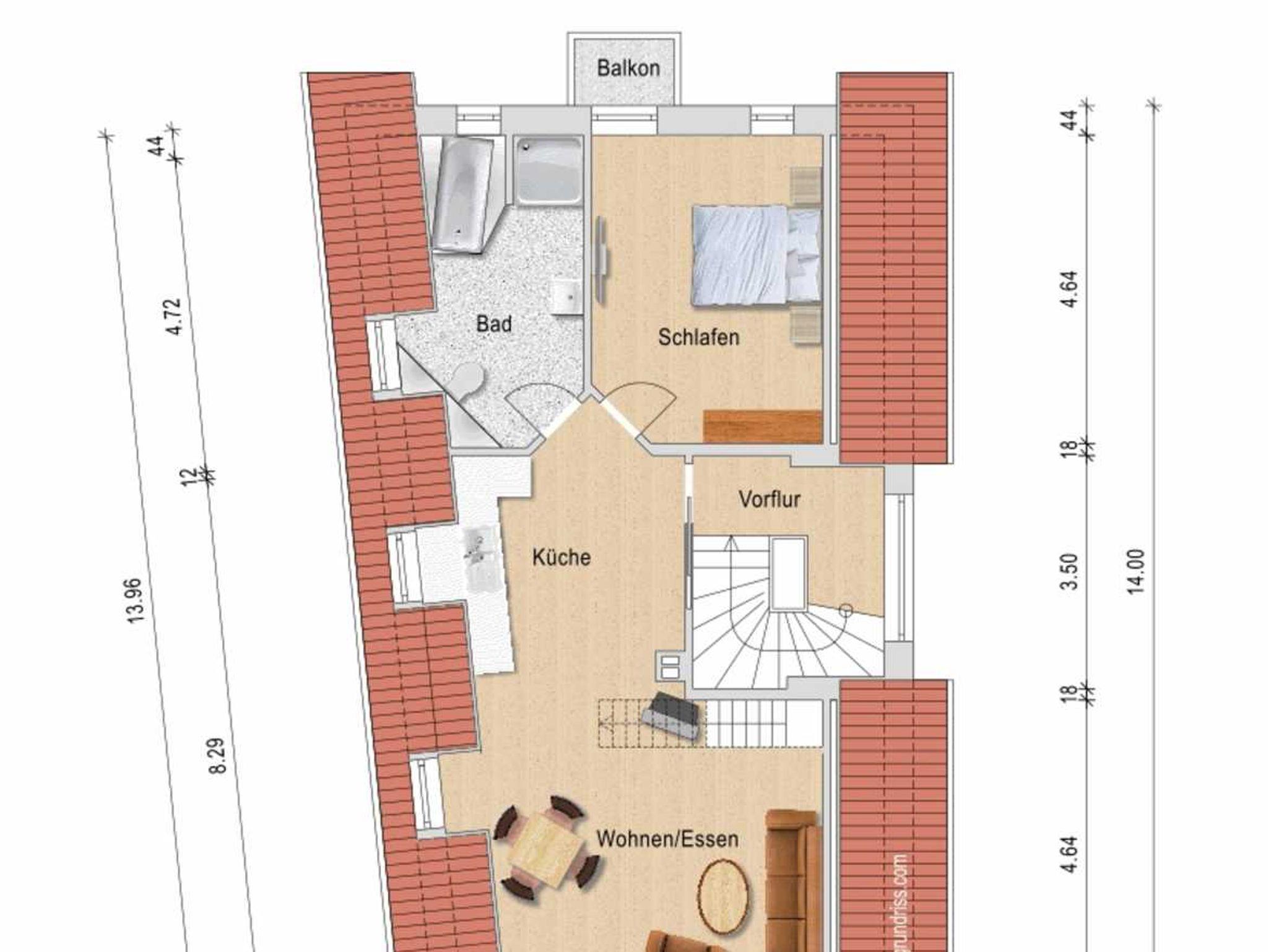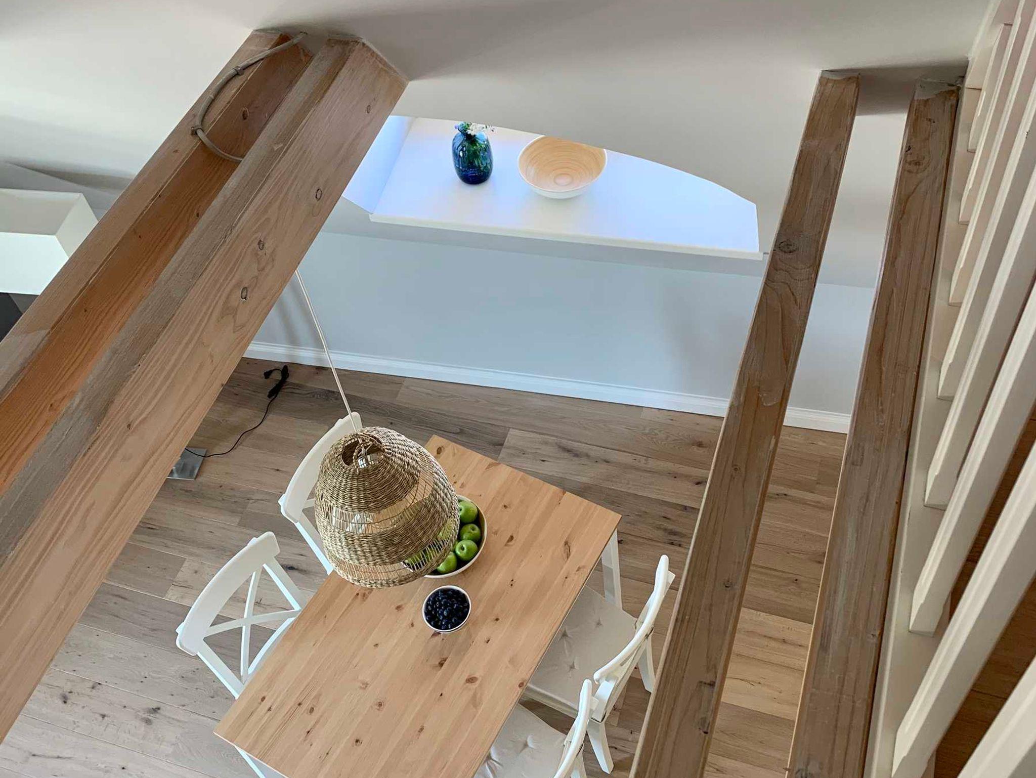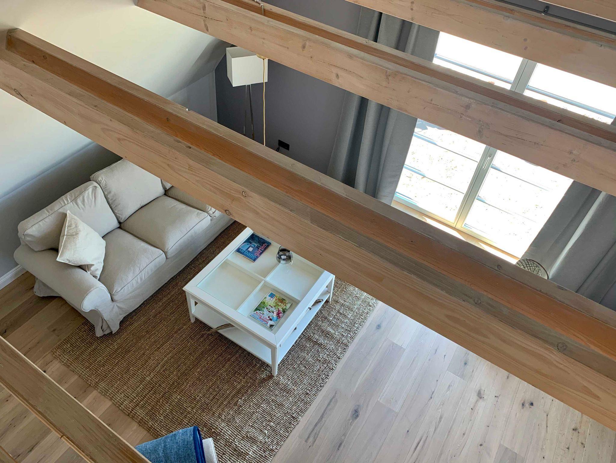 ab. Vom Wohnzimmer aus gelangen Sie in den offenen Spitzboden, auf welchem sich