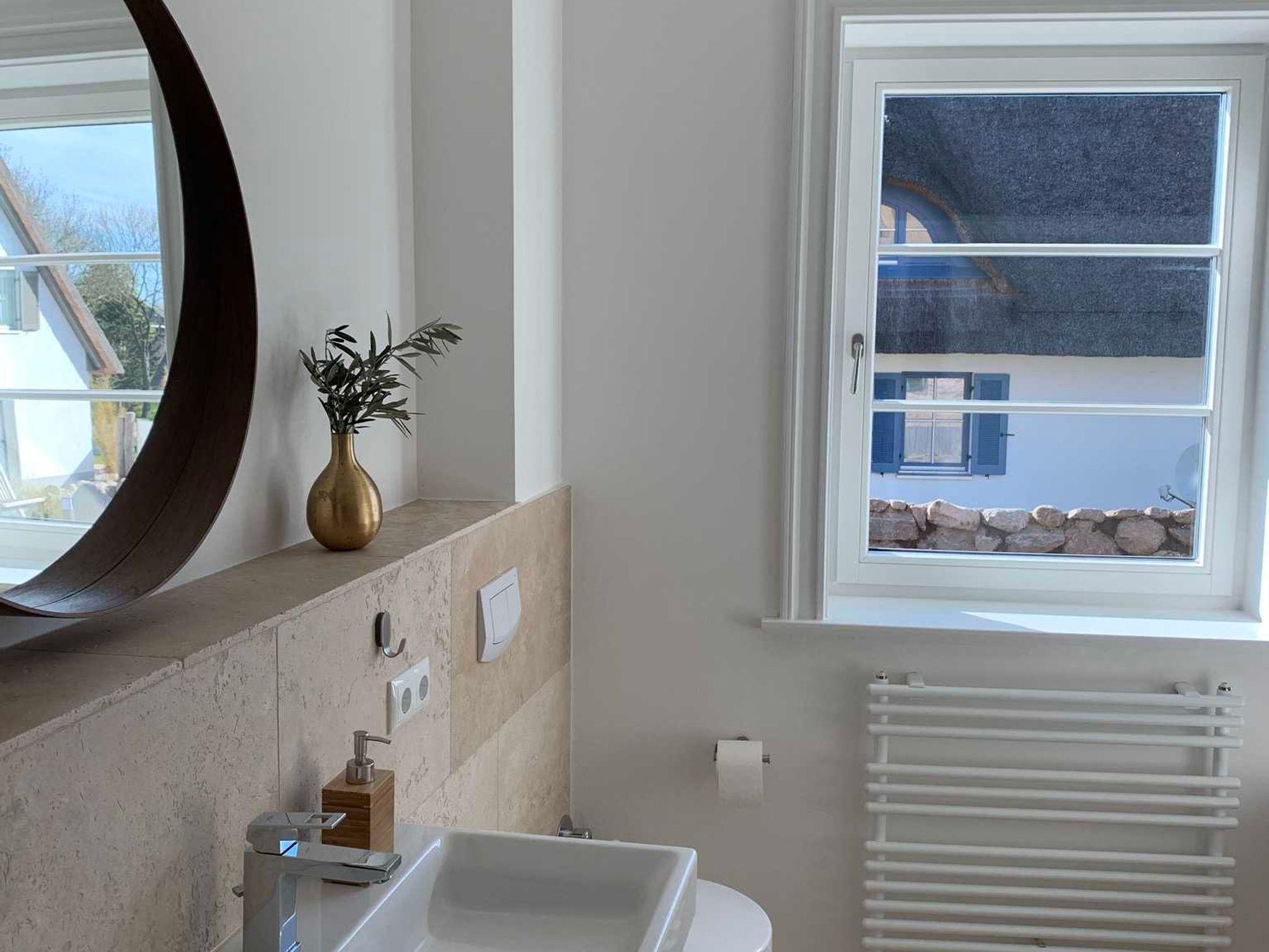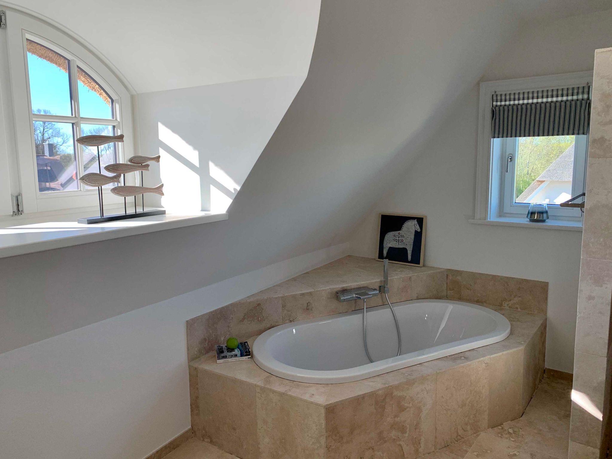 große Komfortbad mit Badewanne, großer Dusche, runden auch dieses Wohlfühletage