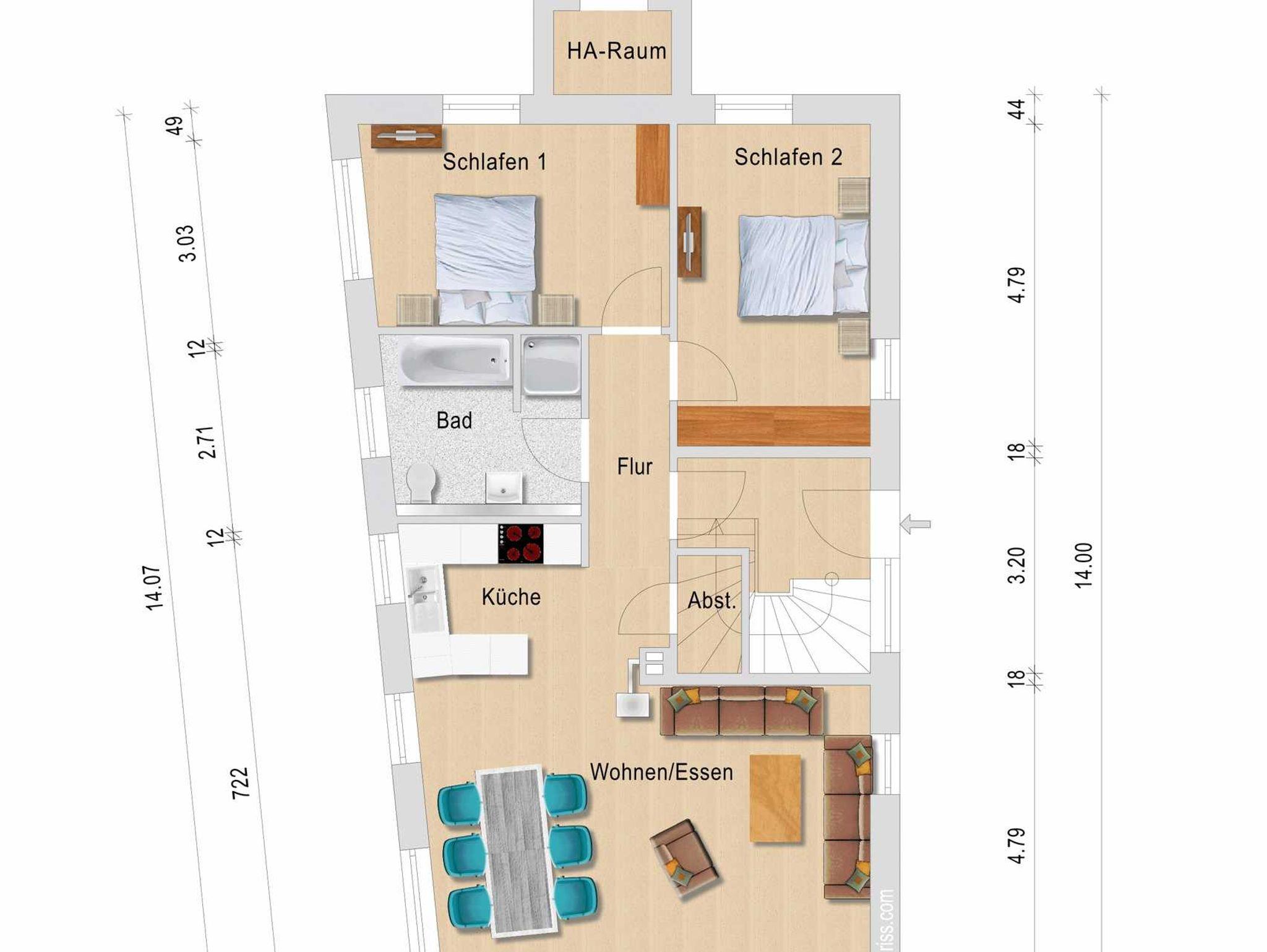 Hauptsaison können Sie auch auf Anfrage nur das Erd- oder Obergeschoß anmieten. Bitte erfragen