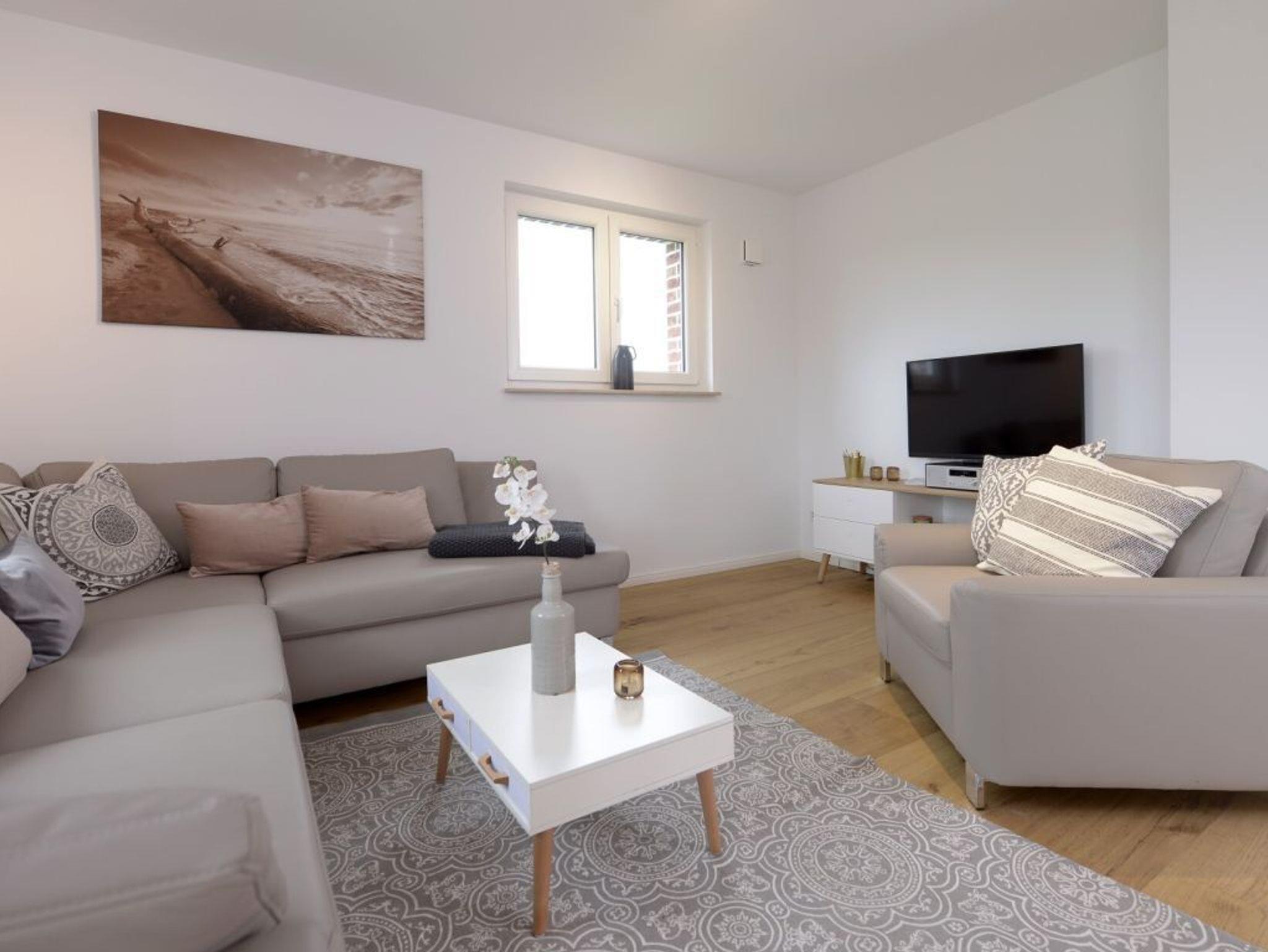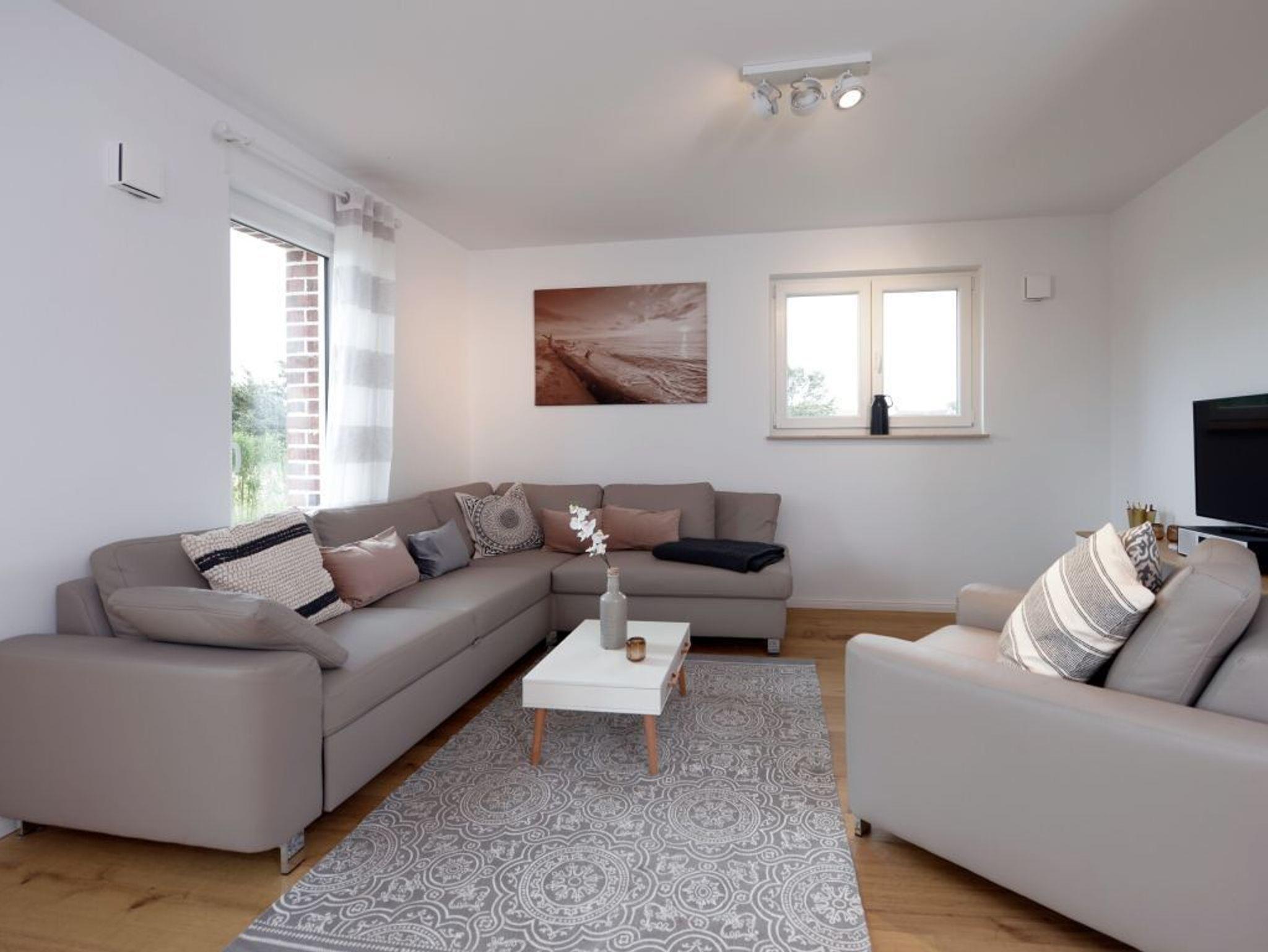 Für unsere Gäste, die sich einen ganz besonderen Urlaub wünschen, bieten wir dieses außergewöhnlich schöne Ferienhaus für bis zu 8 Personen ? max. 6 Erwachsene- Die lichtdurchflutete Wohnfläche von 136 m² ist perfekt unterteilt in einen sehr modernen Wohnbereich mit Komfortsofa, Fernseher, Musikanlage, Telefon und angrenzender offener Küchenzeile, mit neuester Technik ? Geschirrspüler, Induktionsherd, Backofen, Dunstabzug, Mikrowelle, Kühlschrank mit Gefrierfach u.v.m. Der große Esstisch lädt zu gemeinsamen Mahlzeiten ein und Sie blicken von dort in den schönen, durch eine Hecke blickgeschützten Garten. Das Highlight ist der Spa-Bereich im 1. Obergeschoss mit einem geräumigen Wellness-Bereich mit Ruheliege, in dem Sie die Sauna sowie das separate Dampfbad, eine Rain-Dance Dusche und auch einen Kneippschlauch für gesunde Anwendungen nutzen können. Des Weiteren befinden sich vier separate Schlafzimmer im Obergeschoss 2x mit Doppelbett und 2x mit jeweils 2 Einzelbetten. In dem familienfreundlichen Feriendomizil sind selbstverständlich auch ein Bollerwagen, Kinderhochstuhl und Kinderreisebett sowie eine Waschmaschine vorhanden. Wlan steht kostenfrei zur Verfügung. Zwei PKW Stellplätze befinden sich direkt am Ferienhaus 3 Meeresperlen. In dem Nichtraucher- Traumferienhaus sind Haustiere nicht gestattet. Es wird eine Kaution von 250,00 Euro erhoben. Strom und Heizung werden nach Verbrauch gegen Gebühr abgerechnet.