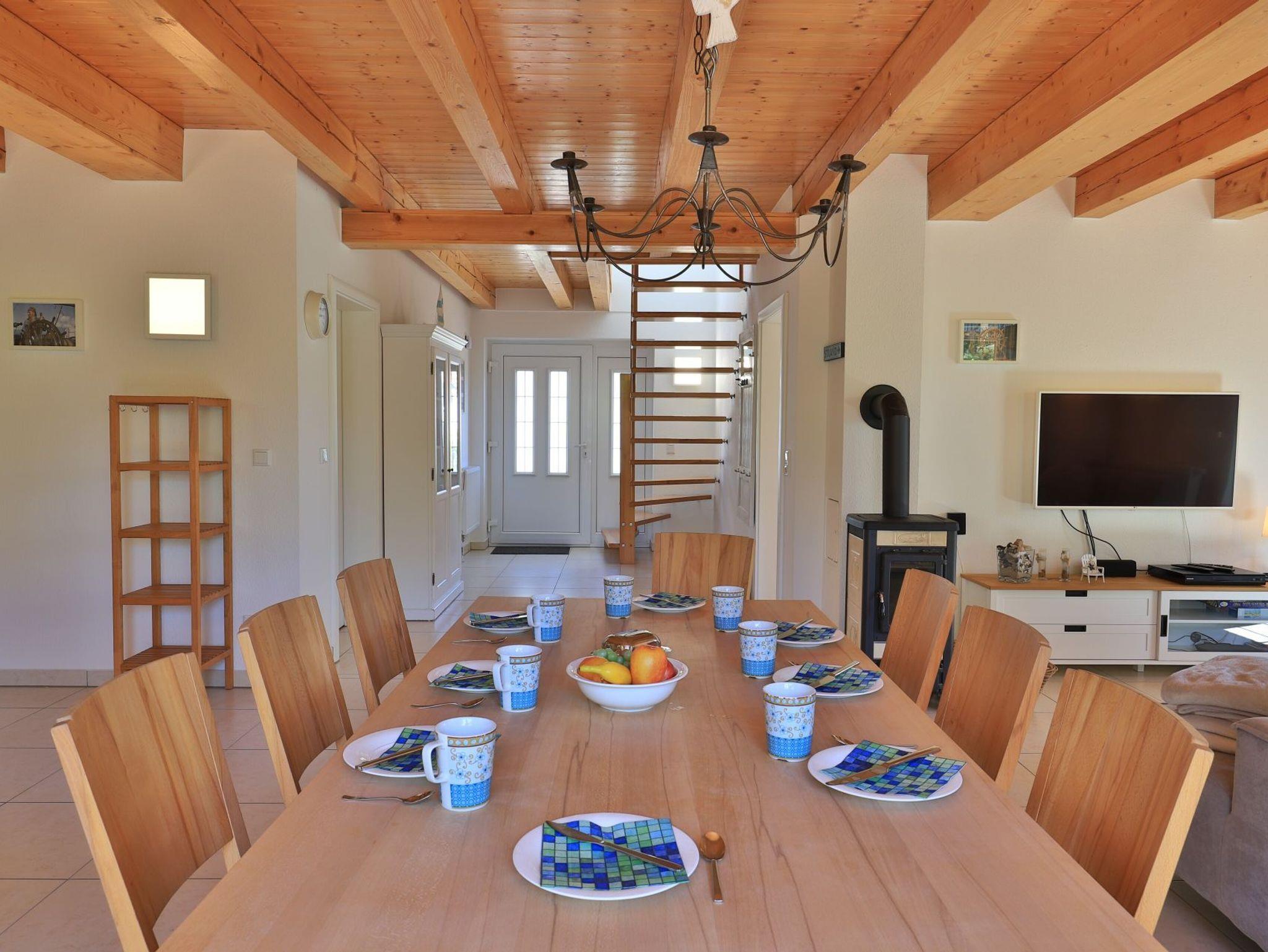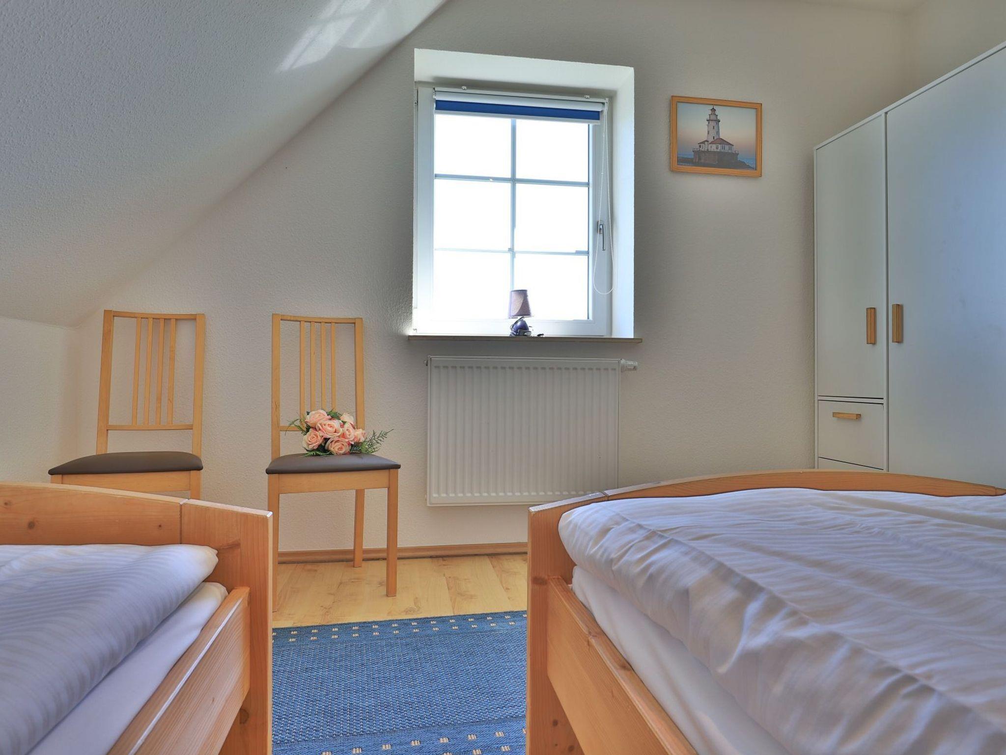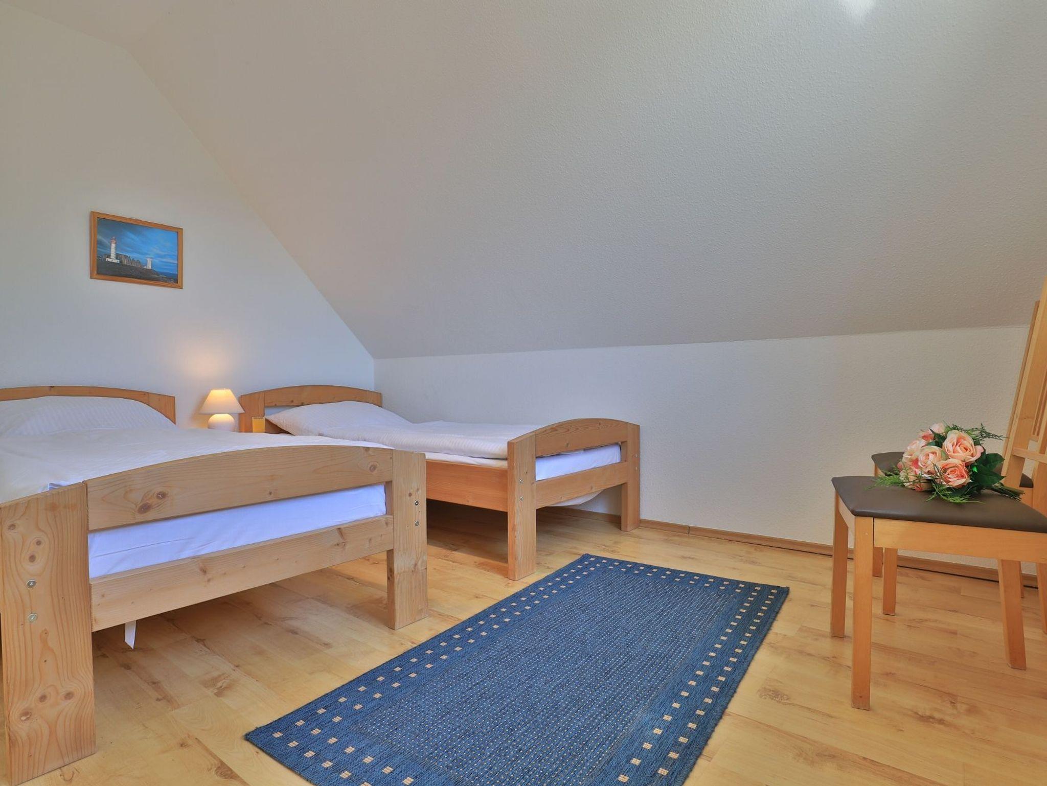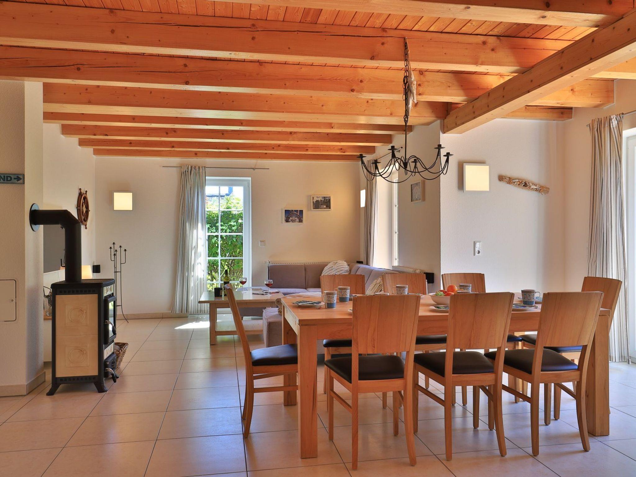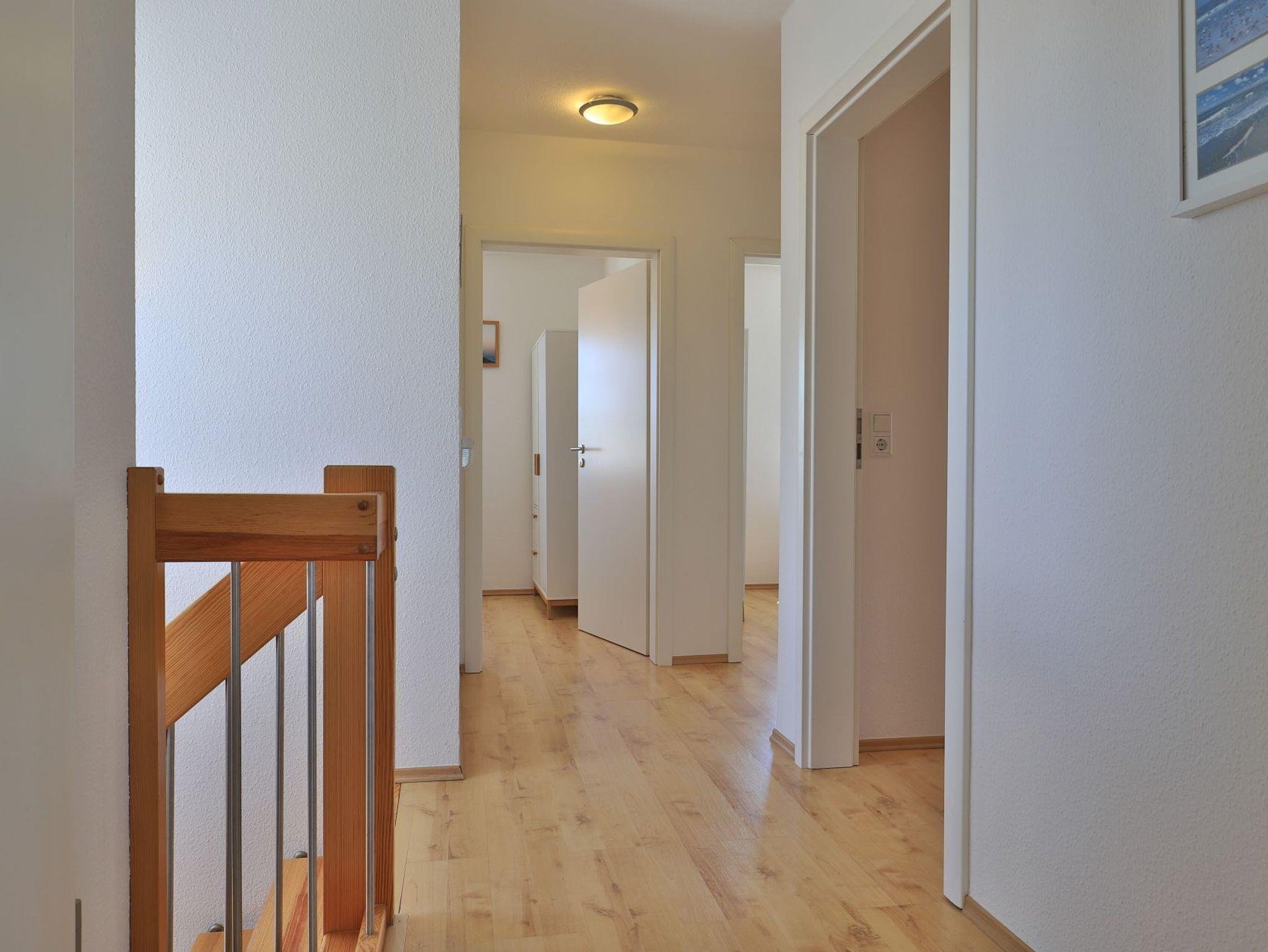 Sehr komfortabel empfängt Sie das familienfreundliche Einzel-Ferienhaus Wellenreiter mit einer großzügigen Wohnfläche von 140qm und bietet Platz für bis zu 8 Personen. Die durchdachte Raumaufteilung sorgt für viel Komfort und ein angenehmes Wohngefühl für Familien und Gruppen. Der helle und gemütliche Wohn- und Essbereich ist in freundlichen Farben gestaltet und lädt zum Entspannen ein. Hier stehen Ihnen ein Kaminofen, TV, DVD sowie WLAN zur Verfügung. Die offene und komplett ausgestattete Komfort-Einbauküche ist harmonisch in den Wohnbereich integriert und bietet alles, was Sie für einen entspannten Aufenthalt benötigen. Vom Wohnbereich aus gelangen Sie direkt auf die saisonal möblierte Süd-West-Terrasse und in den großen Garten, der viel Platz zum Verweilen und Spielen bietet. Im Erdgeschoss befindet sich außerdem ein Schlafzimmer mit Doppelbett und Kleiderschrank sowie ein modernes Tageslicht-Duschbad. Zusätzlich steht Ihnen eine Waschmaschine zur Verfügung. Über eine Treppe erreichen Sie das gemütliche Obergeschoss mit drei weiteren Schlafzimmern. Zwei der Schlafzimmer sind jeweils mit einem Doppelbett und einem Kleiderschrank ausgestattet. Das dritte Schlafzimmer verfügt über zwei Einzelbetten und einen Kleiderschrank. Das geräumige Wellness-Vollbad bietet zusätzliche Erholung: Hier erwartet Sie eine Sauna für bis zu 6 Personen, die gegen Gebühr (0,70 ? pro kWh) genutzt werden kann. Für Familien mit kleinen Kindern stehen ein Kinderhochstuhl und ein Kinderreisebett bereit. Zwei kostenfreie PKW-Stellplätze befinden sich direkt auf dem Grundstück. Das Ferienhaus ist ein Nichtraucherhaus, Haustiere sind nicht gestattet. Bitte beachten Sie, dass bei der Anreise eine Kaution in Höhe von 250,00 ? erhoben wird.