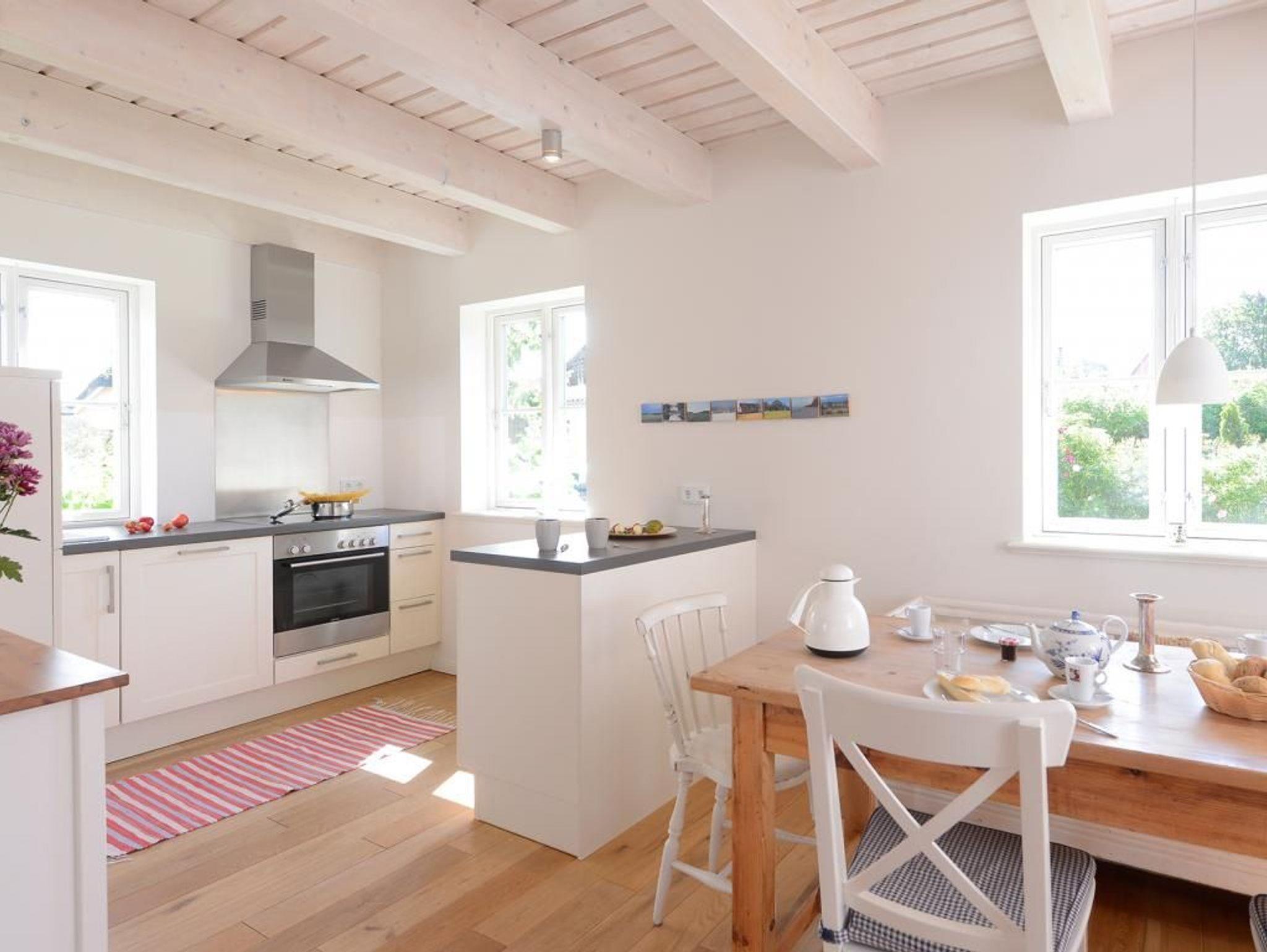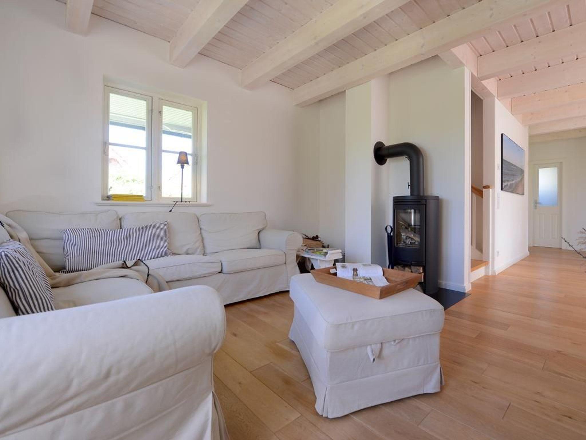 Mit bis zu 5 Personen verbringen Sie in diesem sehr behaglichen Feriendomizil mit Terrasse und Garten einen erholsamen Urlaub nur 500m zur Ostsee. Die gut durchdachte Wohnraumaufteilung mit einer Wohnfläche von 110qm ist unterteilt in einen großzügigen Wohn-/Essbereich mit einem bequemen Sofa, einem Esstisch, Kaminofen sowie komplett ausgestatteter Wohnküche mit Heißluftherd, Backofen, Dunstabzugshaube, Kühlschrank, Geschirrspüler. Im Wohnzimmer befinden sich selbstverständlich Digitales Fernsehen via DVB-S wie auch eine Stereoanlage, CD-Player. Im Obergeschoss des Hauses sind drei separate Schlafzimmer 1x Doppelbett, 1x Einzelbett, 1x Etagenbett. Auch ein Duschbad ist im Obergeschoss vorhanden. Im Haus steht außerdem ein Gäste- WC zur Verfügung und eine Waschmaschine können Sie kostenfrei nutzen. Für Familien mit Kindern bieten wir ein Kinderreisebett mit Matratze & Kinderhochstuhl kostenfrei. Alle Fußböden sind mit Holzdielen versehen, die Bäder sind gefliest und mit Fußbodenheizung ausgestattet. Bitte beachten Sie, dass Haustiere sowie Rauchen in diesem Ferienhaus nicht gestattet ist. Ein PKW Stellplatz befindet sich am Haus. Ihre mitgebrachten Fahrräder können Sie im zugehörigen Abstellschuppen unterbringen.
