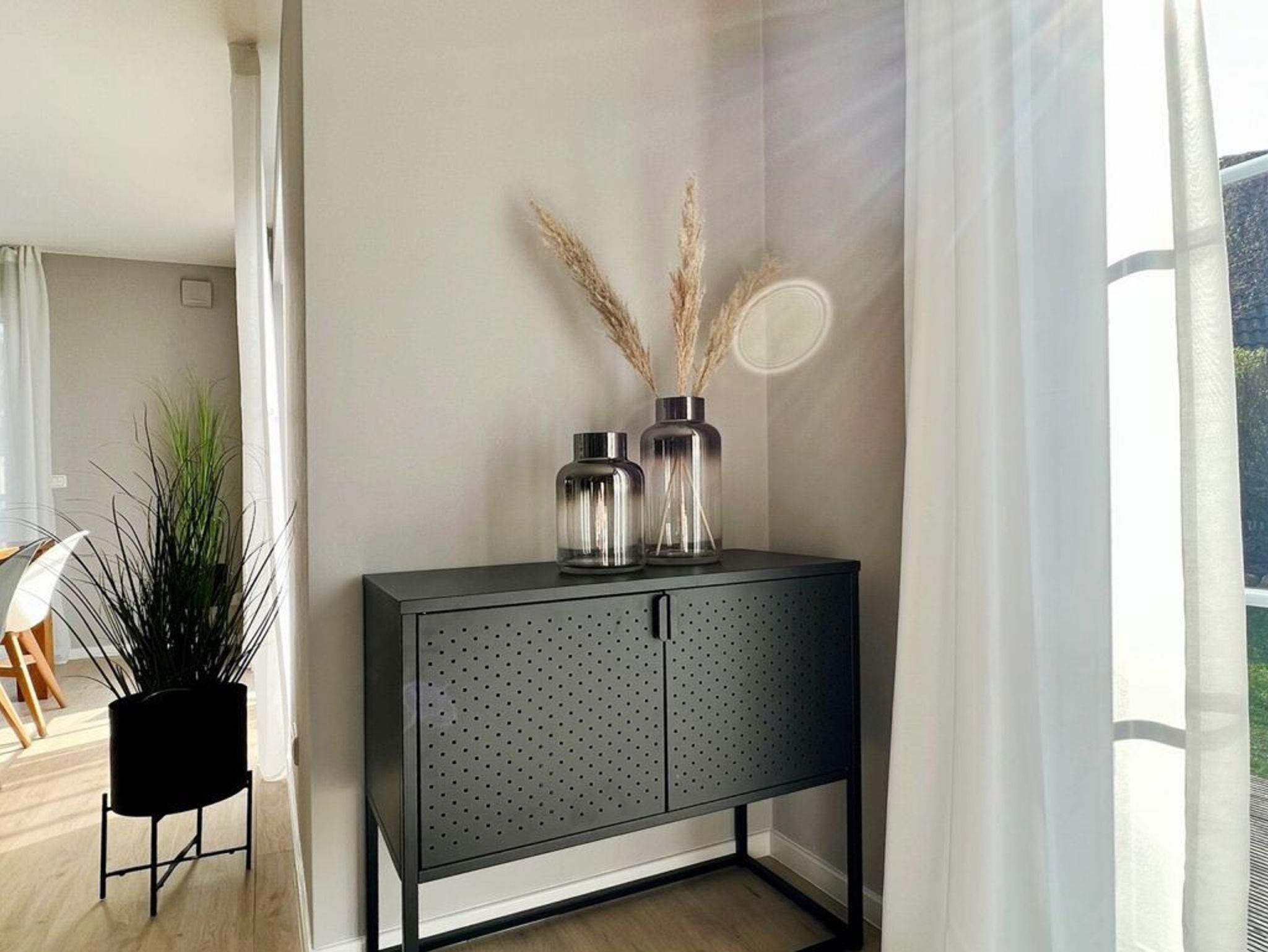 Das exklusive Ferienhaus Sonnenliebe überzeugt mit einer hellen und modernen Ausstattung. Nur etwa 900 Meter trennen Sie von dem entdeckungsreichen Sandstrand, was Ihnen die Möglichkeit gibt, die Küste in vollen Zügen zu genießen. Der großzügige Wohnbereich empfängt Sie mit einem hochwertigen Ecksofa und einem Flachbild-TV der Extraklasse, der mit einem DVD-Player und einer Stereo-Anlage ausgestattet ist. An kühlen Herbstabenden lädt der Kaminofen dazu ein, es sich gemütlich zu machen. Von diesem einladenden Wohnbereich aus gelangen Sie in die offene und lichtdurchflutete Einbauküche. Hier können Sie Ihre Urlaubsmahlzeiten nach Herzenslust zubereiten, denn die Küche ist mit einem modernen Herd mit Ceranfeld, einem Backofen, einem großen Kühlschrank, einem Gefrierschrank, einem Geschirrspüler und einer Mikrowelle ausgestattet. Praktisch ist auch der angrenzende Hauswirtschaftsraum, in dem Sie eine Waschmaschine und Wäschetrockner finden. Das Domizil bietet zudem vier geschmackvoll eingerichtete Schlafzimmer. Drei Schlafzimmer mit Doppelbett und eines mit zwei Einzelbetten. Zwei moderne Bäder sind vorhanden, eines ist mit einer Dusche und einer Badewanne ausgestattet, das weitere dient als Duschbad. Für zusätzlichen Komfort steht im Haus auch eine Sauna zur Verfügung, die Sie während Ihres Aufenthalts nach Belieben nutzen können. Der liebevoll gestaltete Gartenbereich ist ein weiteres Highlight und bietet sowohl großen als auch kleinen Gästen ausreichend Platz zum Verweilen und Spielen. Genießen Sie die Sonne und die klare Luft der Ostsee auf insgesamt drei Terrassenbereichen, die ideal für entspannte Stunden im Freien sind. Für Familien wurde an alles gedacht: Ein Kinderreisebett, zwei Kinderhochstühle, Kinderspielzeug, Babybadewanne, MP3-Docking-Station sowie eine Playstation 3 stehen zur Verfügung. Darüber hinaus gibt es einen zweiten TV in einem der Schlafzimmer, kostenfreies WLAN und bequeme Lounge-Möbel auf den Terrassen. Der Garten kann ebenfalls genutzt werden, und ein großer Grill wartet darauf, für gesellige Abende angeheizt zu werden. Bitte halten Sie bei Ihrer Anreise eine Kaution in Höhe von 300 Euro in bar bereit. Das Nichtraucher Ferienhaus vereint modernen Komfort mit familienfreundlicher Ausstattung. Hautstiere sind nicht gestattet.