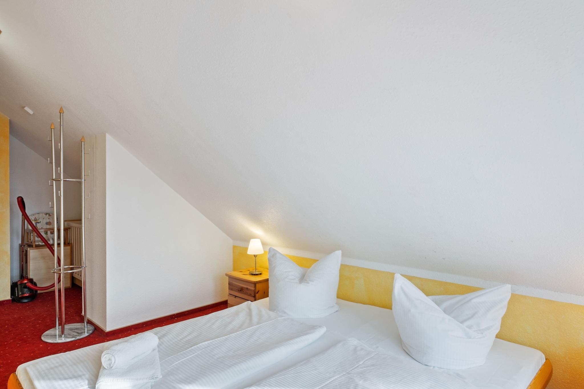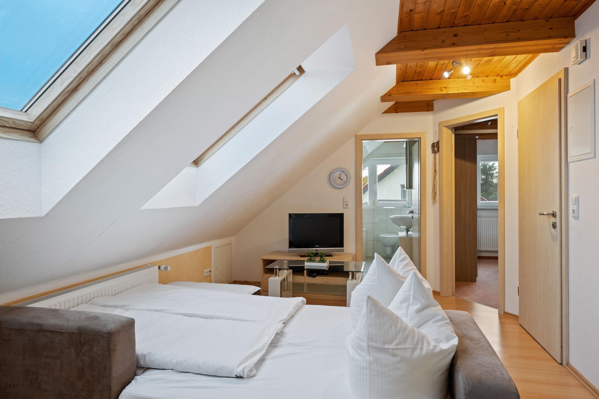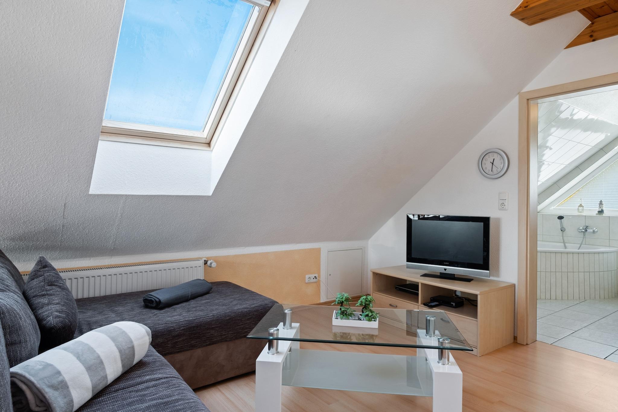 Denne kæledyrsvenlige loftslejlighed ligger i den fredelige landsby Groß Schwansee, kun 800 meter fra stranden, og tilbyder et charmerende tilflugtssted for familier. Det åbne køkken er fuldt udstyret med et elektrisk komfur med 4 kogeplader, ovn, kaffemaskine og spiseplads til seks - perfekt til fælles måltider efter en dag ved havet. Stuen/soveværelset har en dobbelt sovesofa og satellit-tv, mens to separate soveværelser byder på dobbeltsenge, det ene med en småbørnsseng til små gæster. Et badeværelse med badekar tilføjer et strejf af komfort til længere ophold. Udenfor kan du nyde en fælles have med legeredskaber, herunder en sandkasse og rutsjebane, plus parkering på stedet og en høj stol for ekstra bekvemmelighed. Beliggende nær den naturskønne Lindenallee - en sti med træer, der fører direkte til stranden - og kun 750 m fra det elegante Brasserie Groß Schwansee, forener denne lejlighed landskabsro med kystcharme.