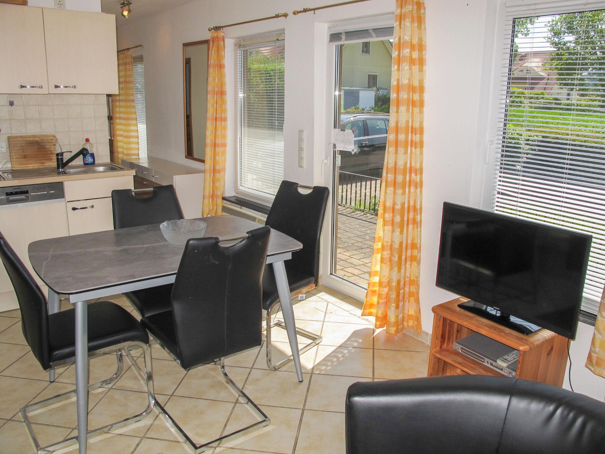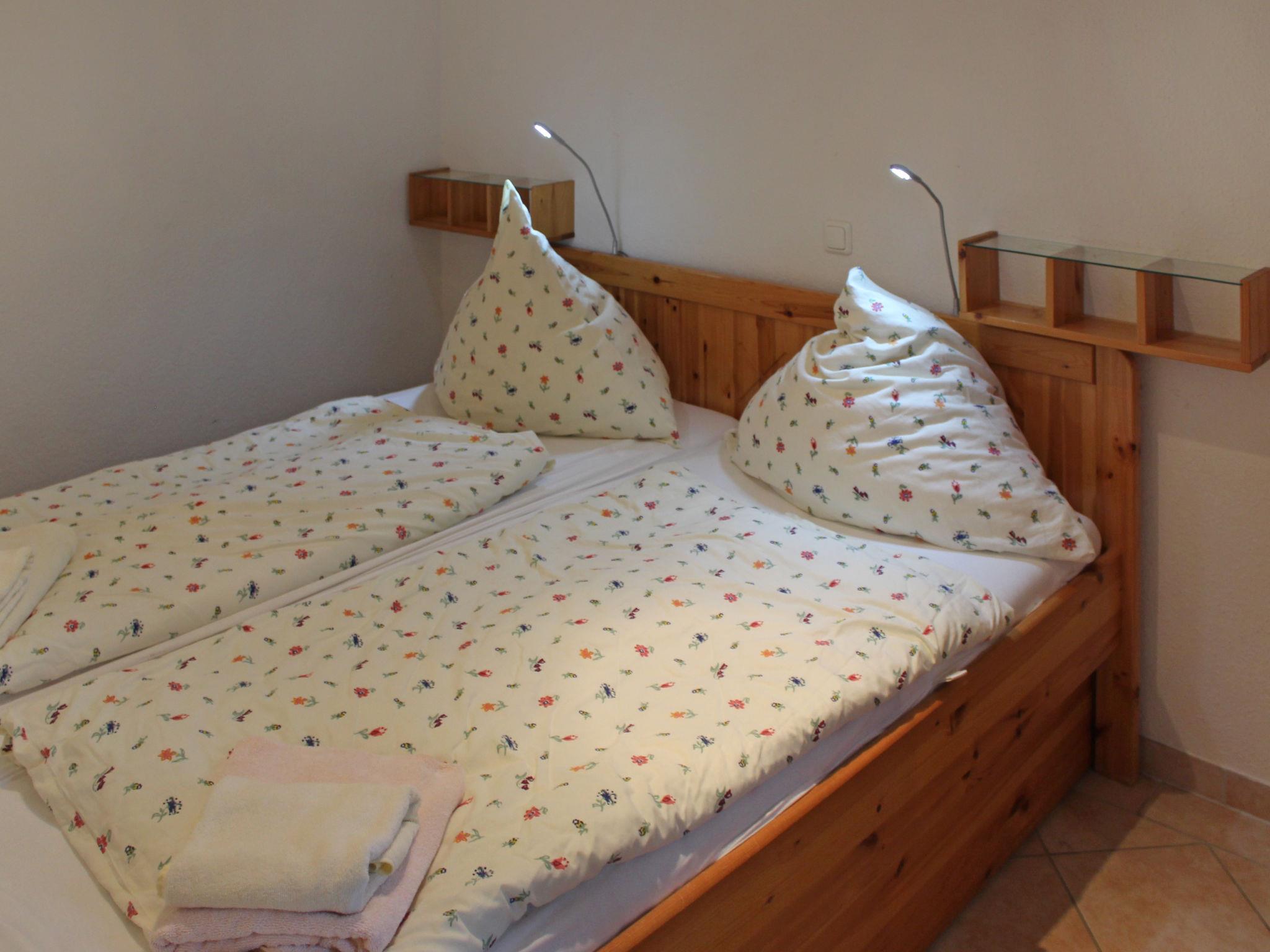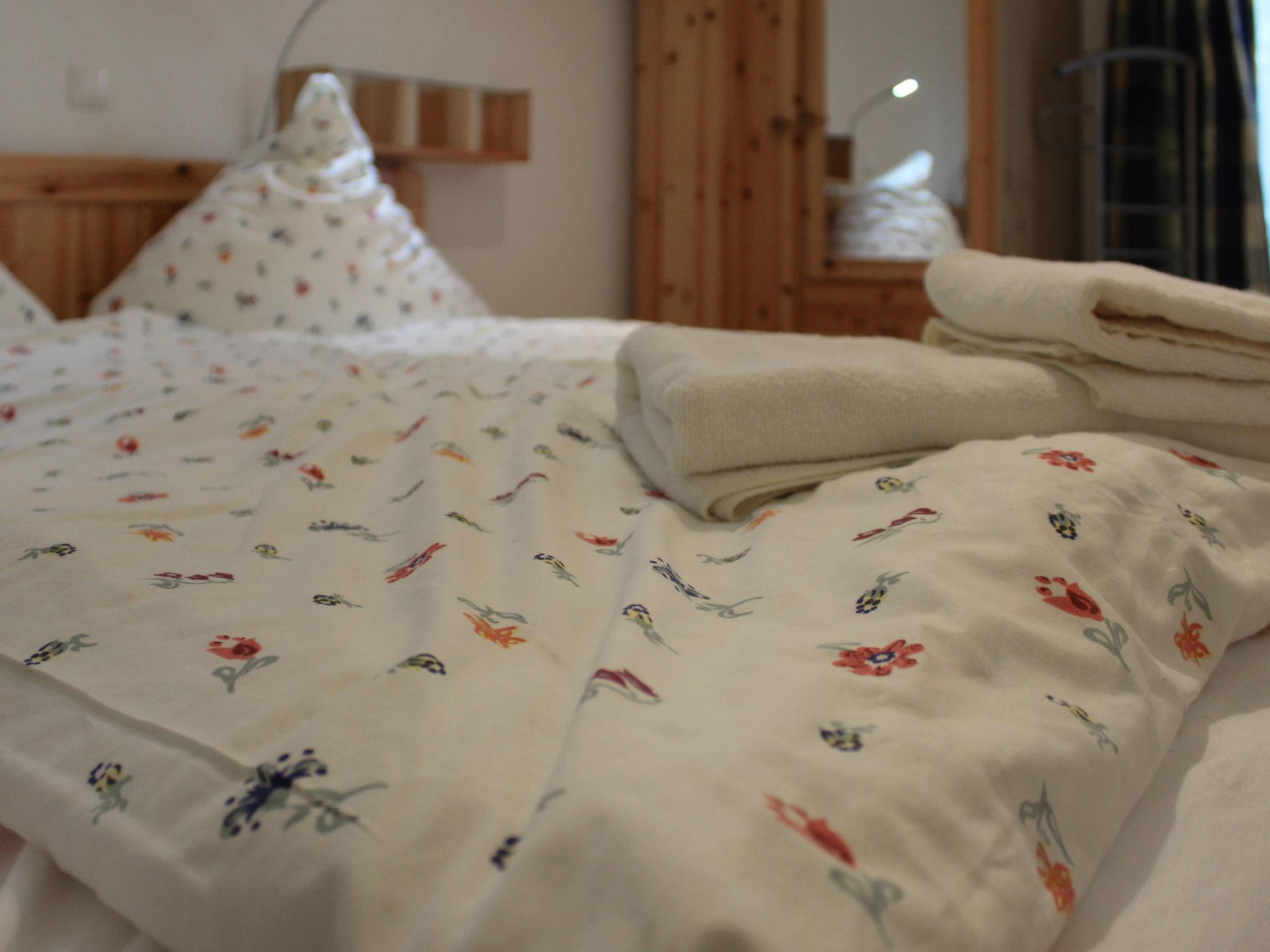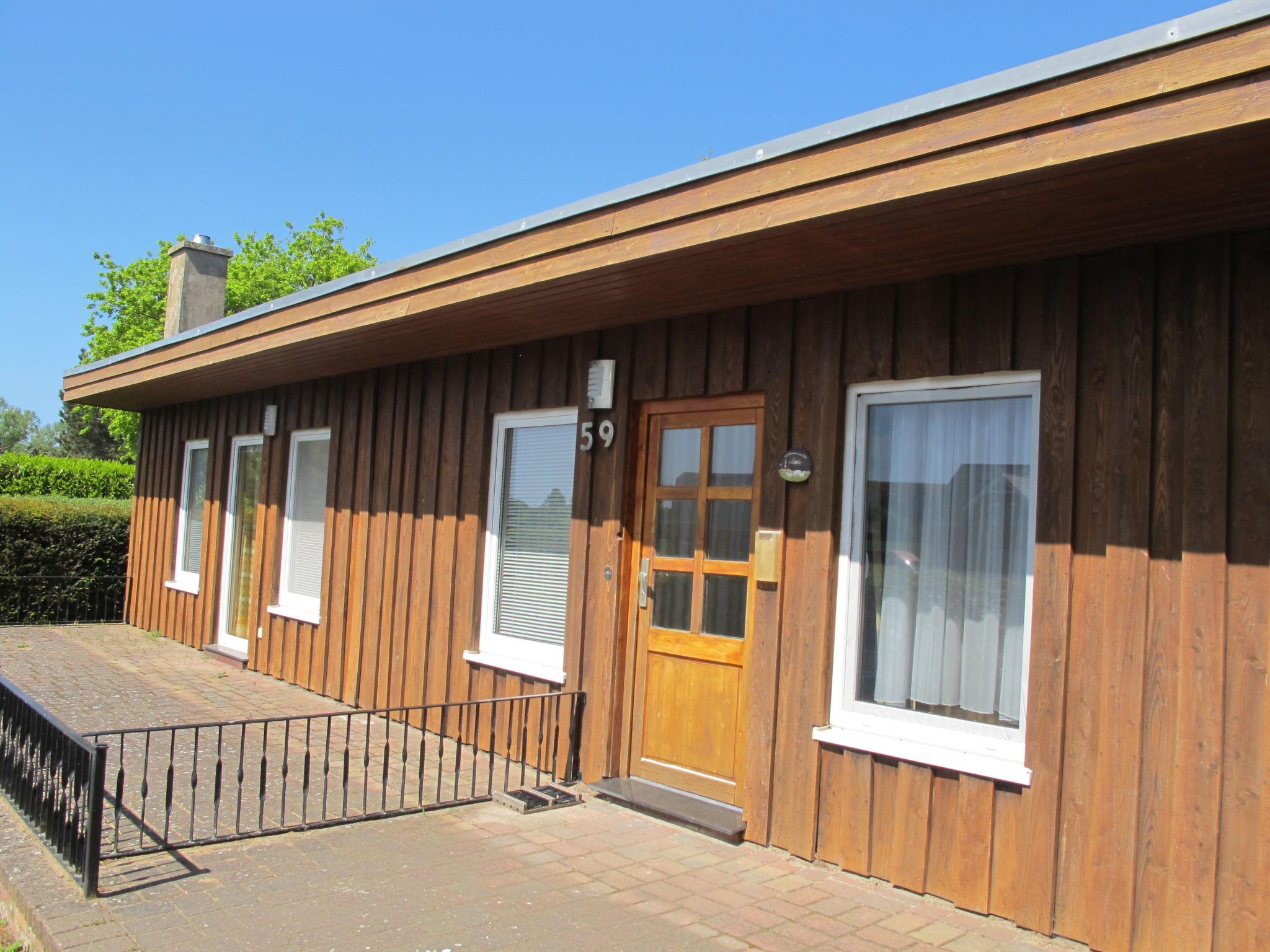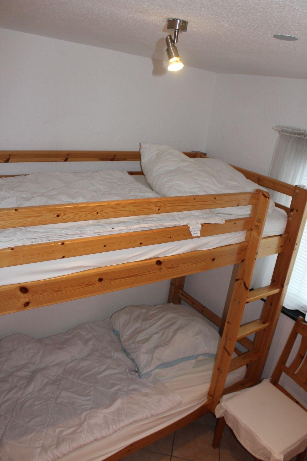 3-room bungalow 45 m2, on the ground floor. Cosy furnishings: living/dining room 12 m2 with Scandinavian wood stove and satellite TV (flat screen), CD-player. Exit to the terrace. 1 room with 1 double bed (180 cm, length 200 cm), satellite TV (flat screen). 1 small children's room with 1 x 2 bunk beds (90 cm, length 200 cm). Kitchenette (oven, dishwasher, 4 ceramic glass hob hotplates, kettle, electric coffee machine). Shower/WC. Electric heating. 2 terraces, south facing position and north facing position. Terrace furniture, barbecue (portable). Facilities: sauna, logs (extra). Internet (WiFi, free). Please note: non-smoking house. Maximum 1 pet/ dog allowed. Smoke alarm, fire extinguisher. The sauna with relaxation room and two additional beds (tandem bed, 2 x 90 cm, length 200 cm) is located in an annex(separate entrance).