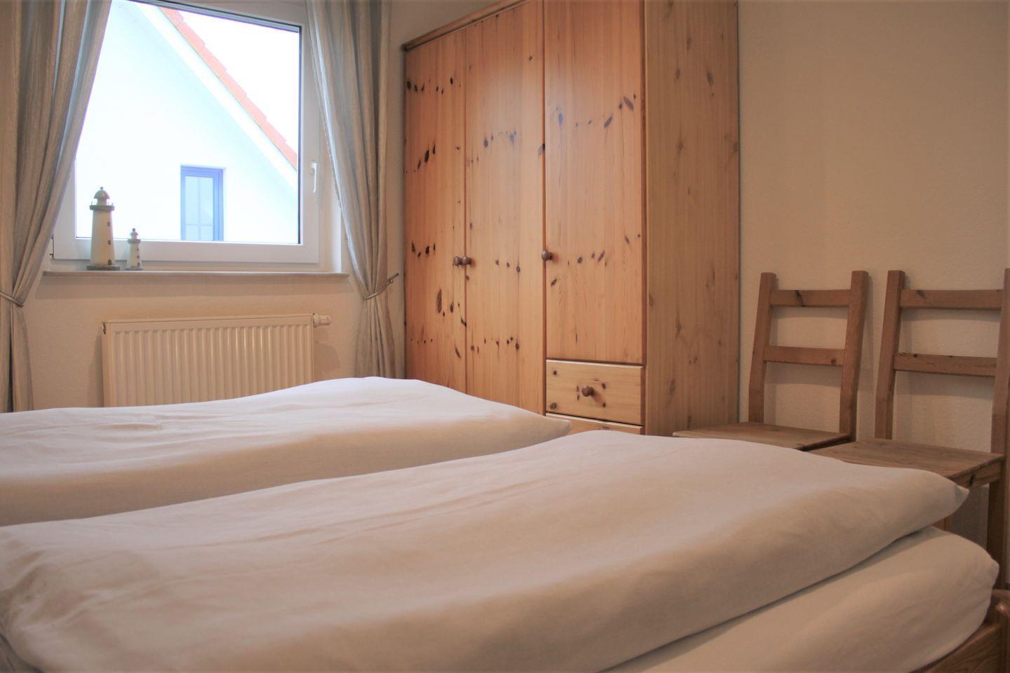 Zum Ferienhaus gehören außerdem zwei separate Schlafzimmer, die entweder mit einem Doppelbett oder zwei Einzelbetten ausgestattet sind. Des Weiteren steht Ihnen ein Bad mit Dusche und WC sowie ein zusätzliches Gäste-WC zur Verfügung.