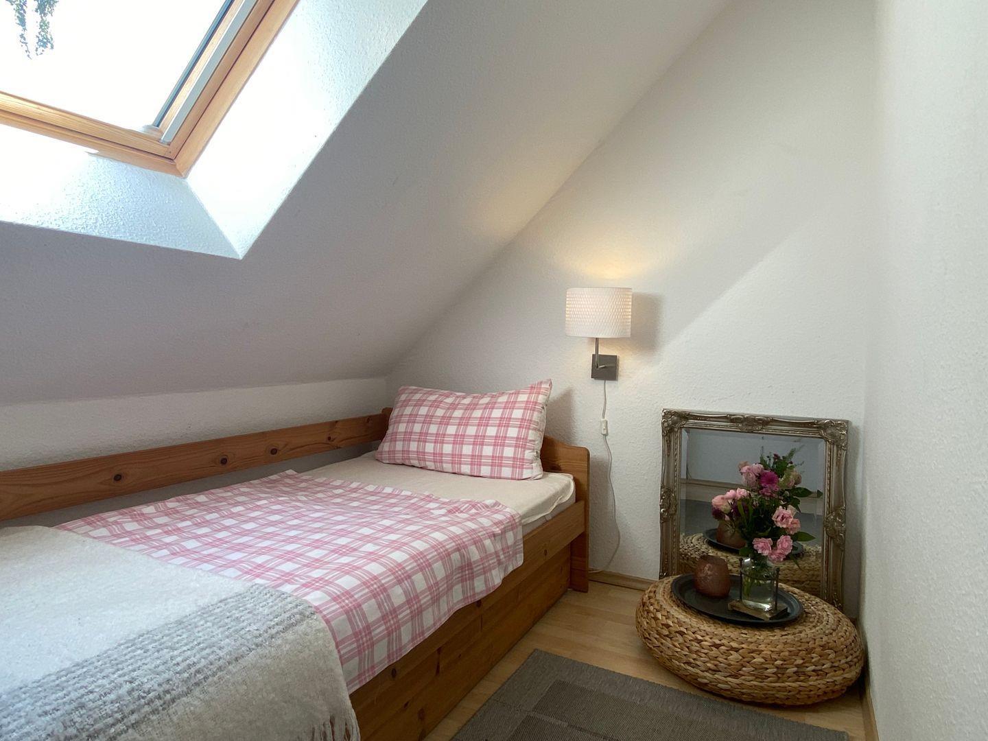Das Haus erstreckt sich über zwei Etagen und verfügt über drei separate Schlafzimmer, die genügend Privatsphäre für alle Gäste bieten. Zwei der Schlafzimmer sind mit komfortablen Doppelbetten ausgestattet, die für erholsame Nächte sorgen. Das dritte Schlafzimmer bietet ein Ausziehbett, ideal für Kinder oder Freunde. Alle Zimmer sind liebevoll gestaltet und laden zum Wohlfühlen ein.
