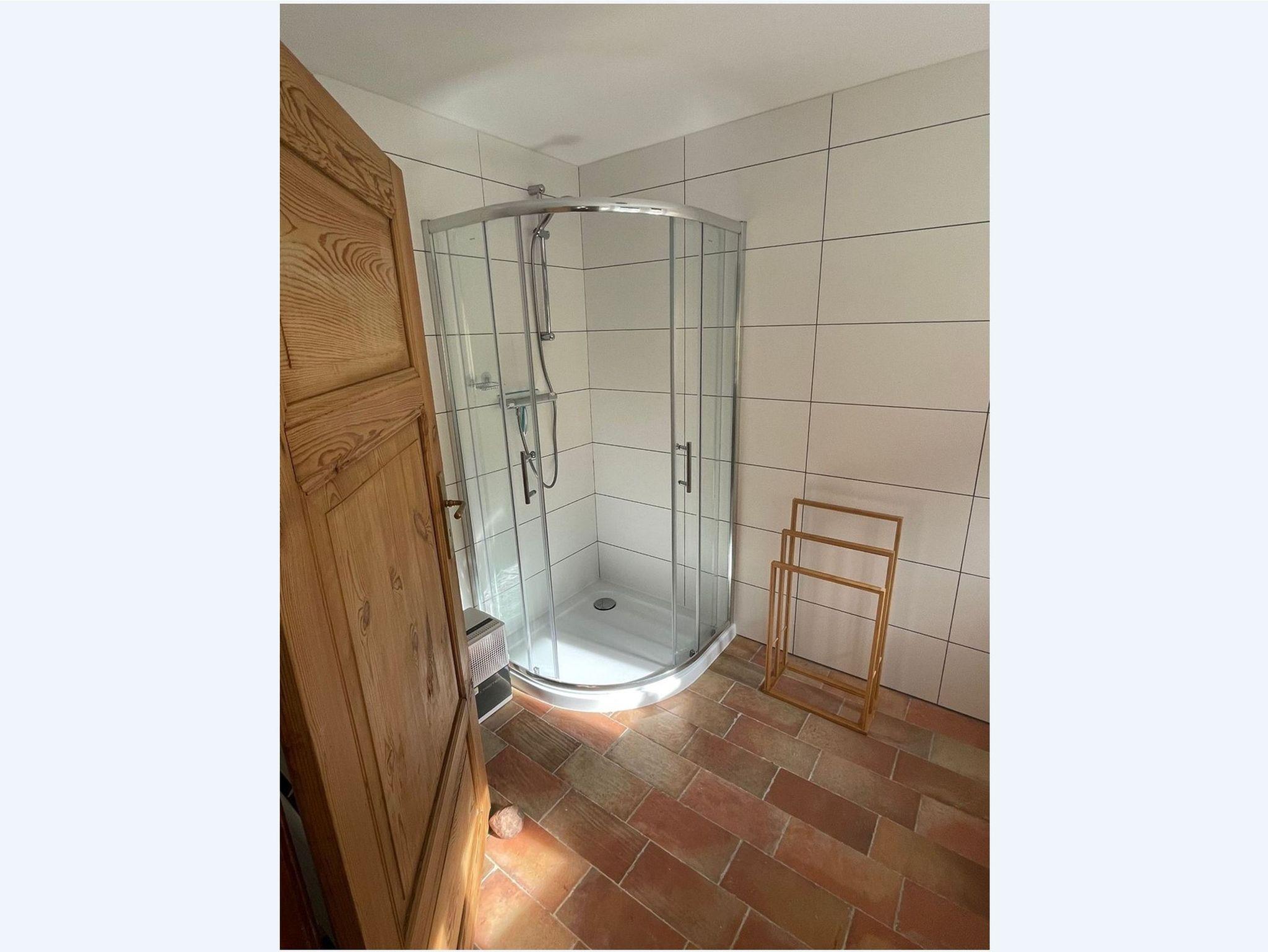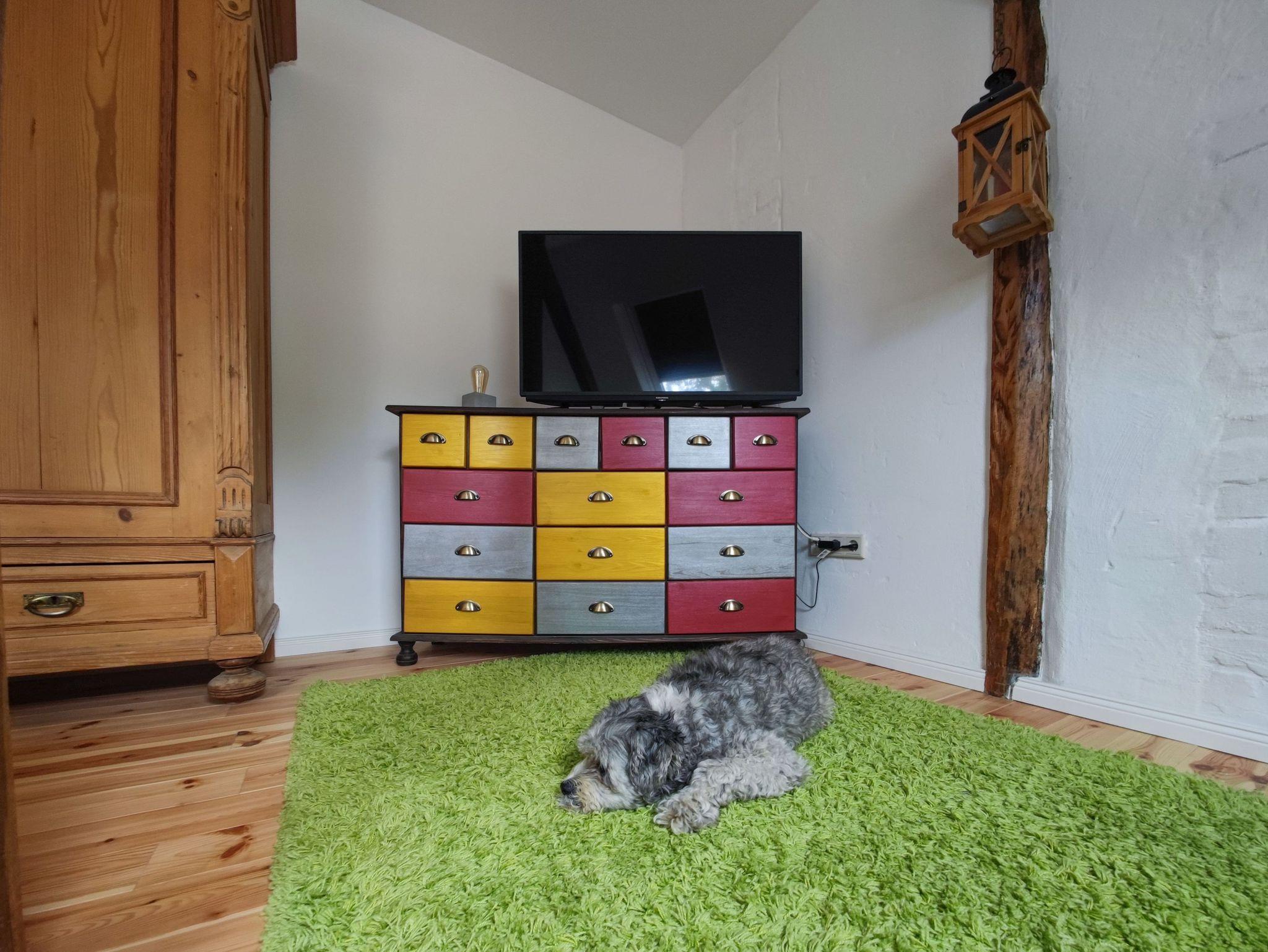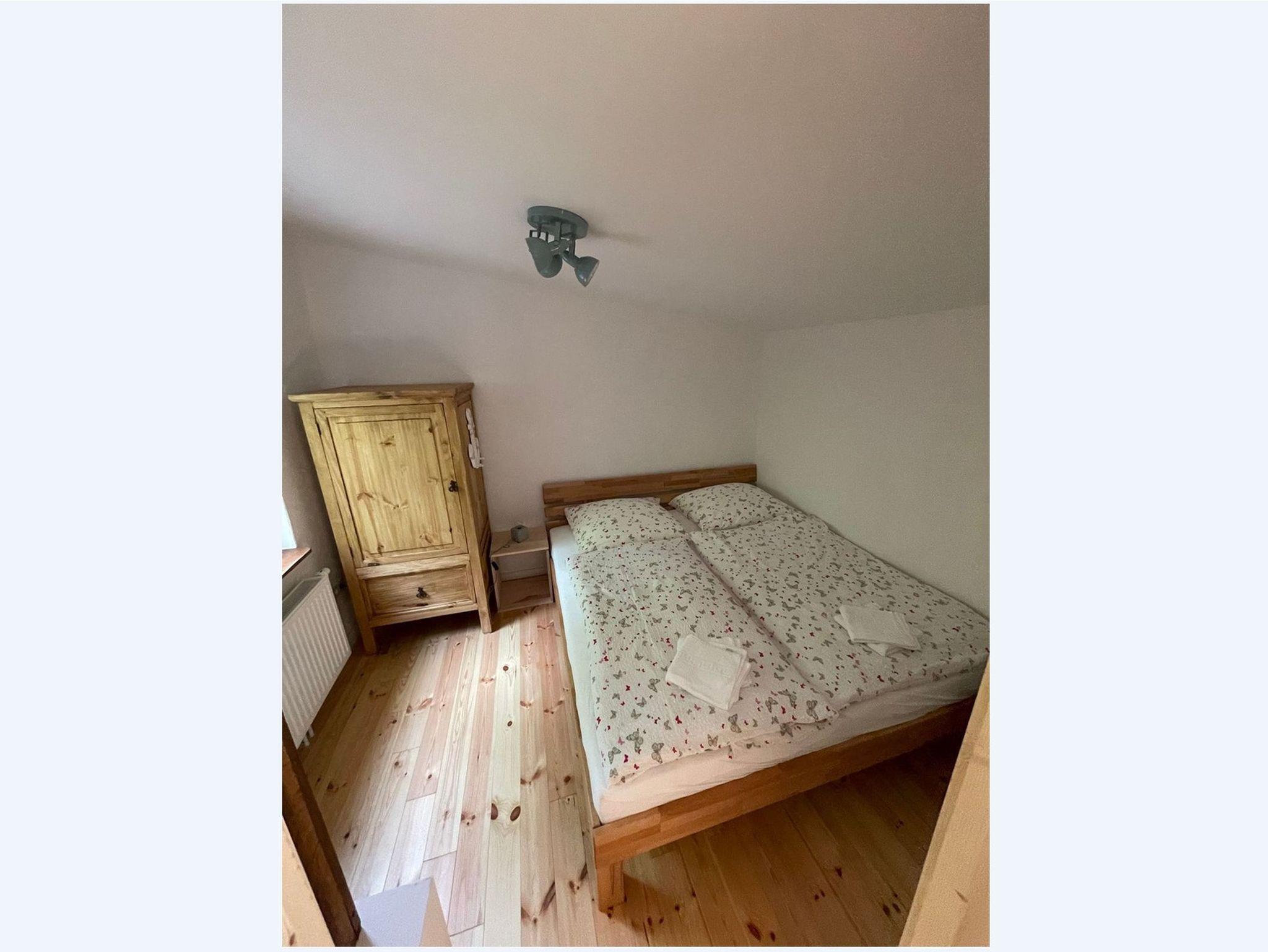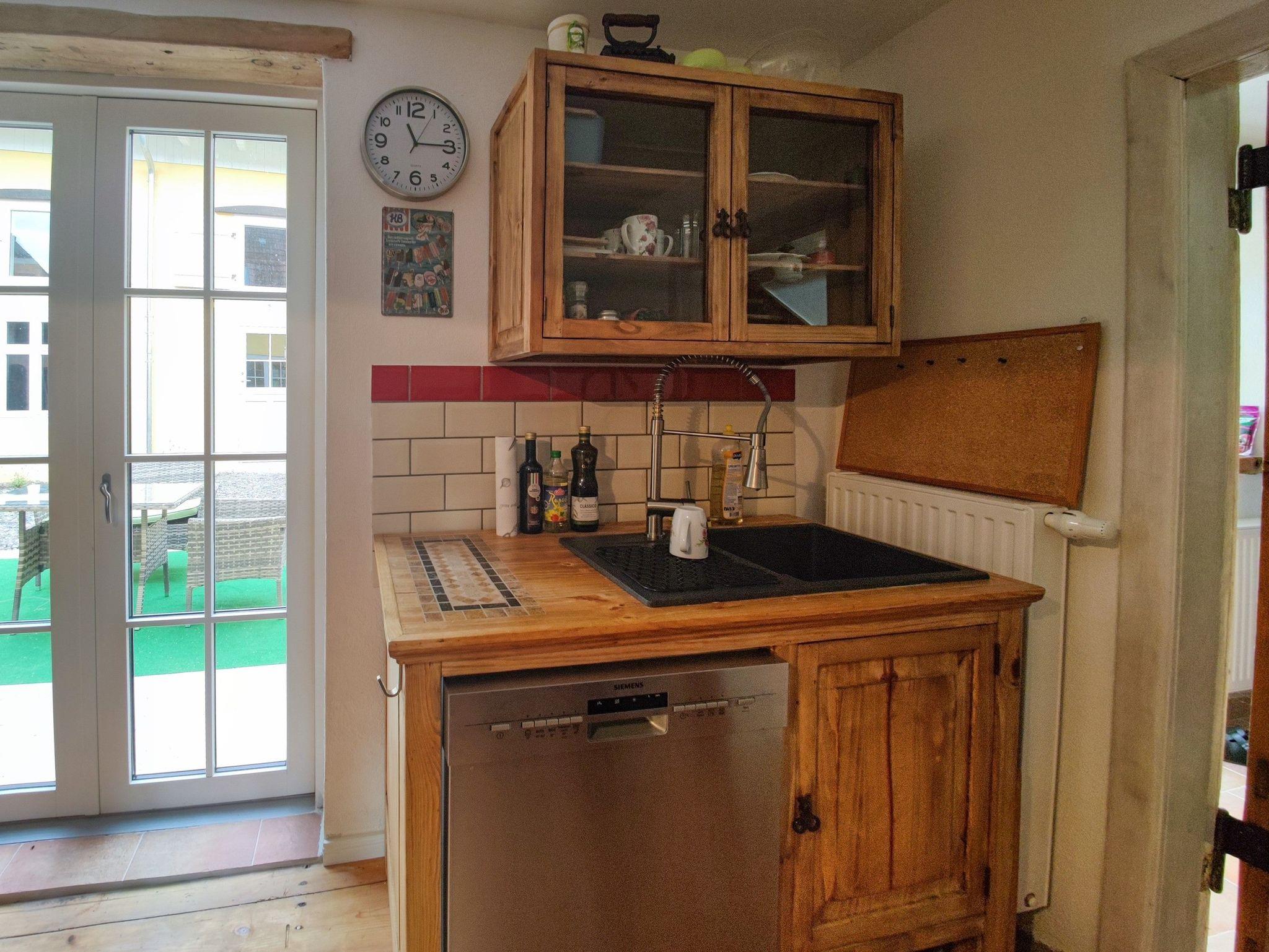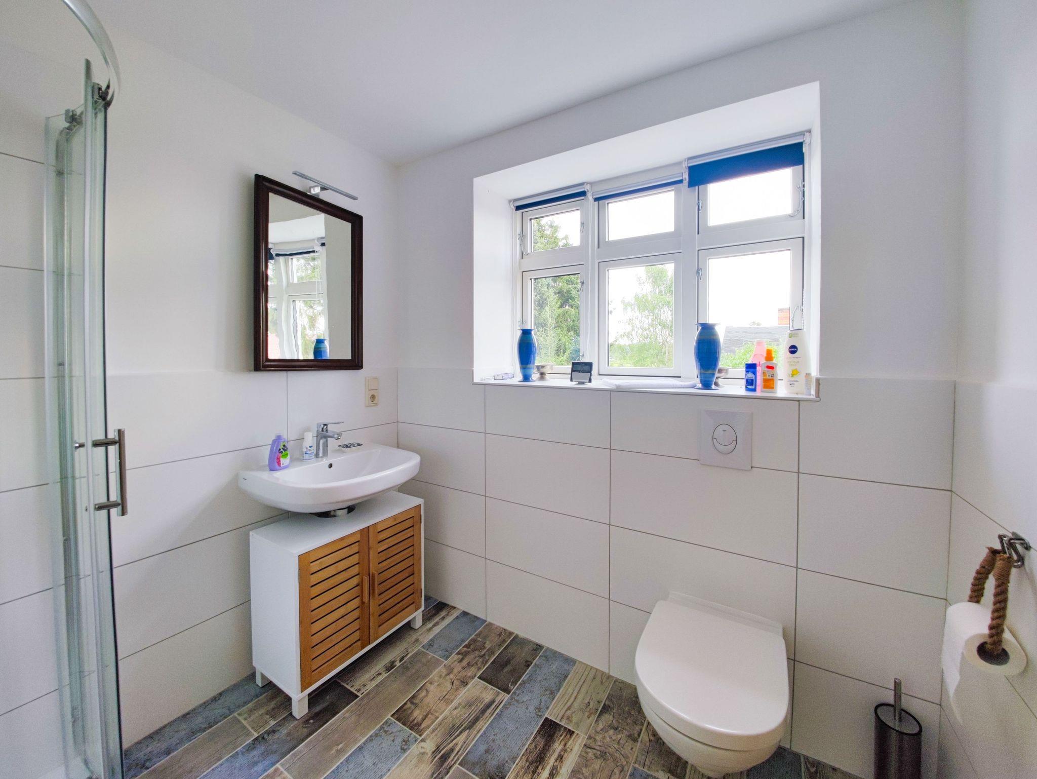 Das zweite Häuschen, „Antons Remise“, liegt hinter „Ellas Gehöft“ und überzeugt durch ebenso viel Charme. Im Erdgeschoss finden Sie eine gut ausgestattete Küche, ein Wohnzimmer mit Kachelofen und ein Badezimmer mit Dusche und WC. Auch hier führt eine steilere Treppe ins Obergeschoss, wo sich zwei Schlafzimmer mit Doppelbetten befinden.