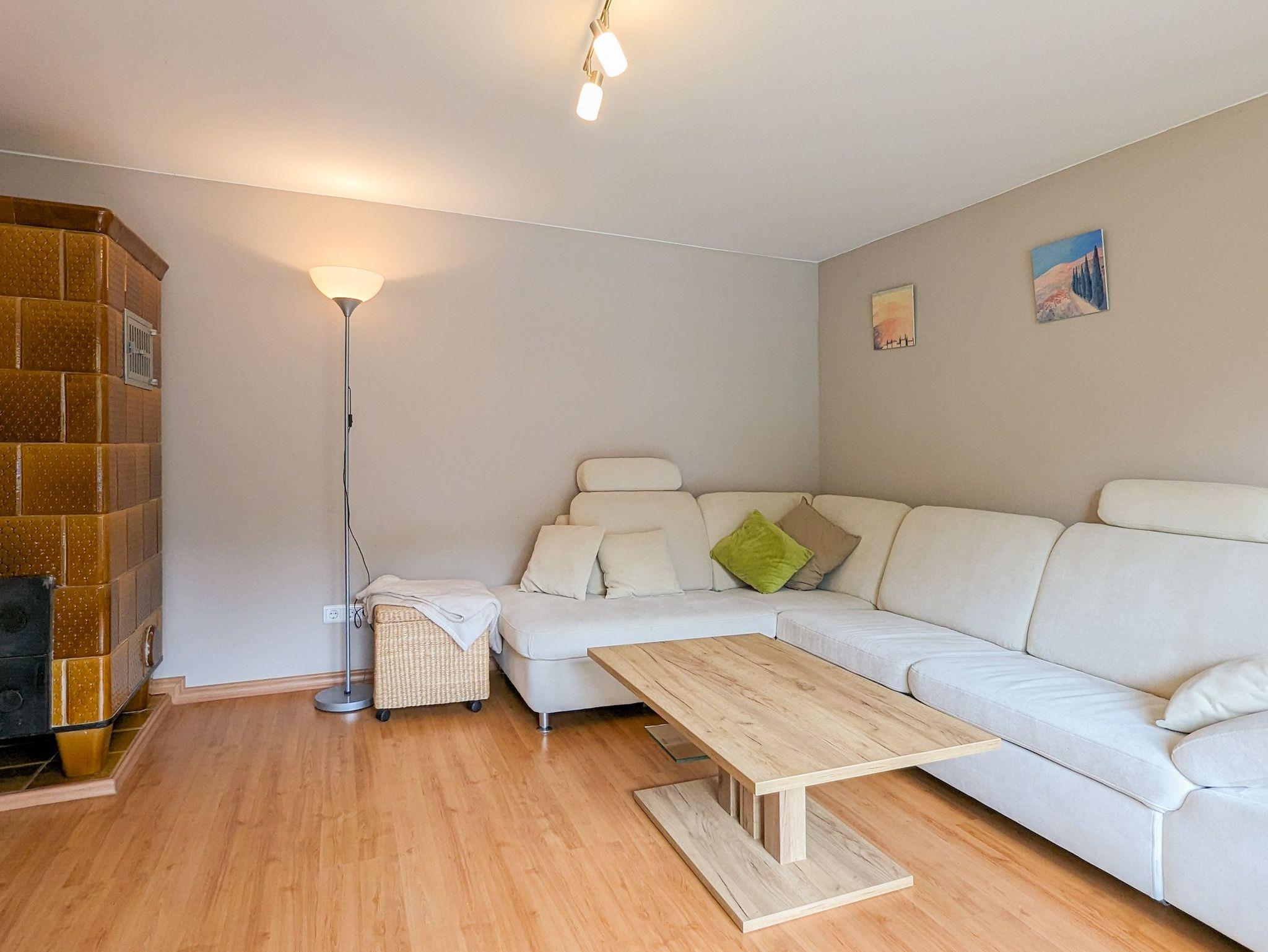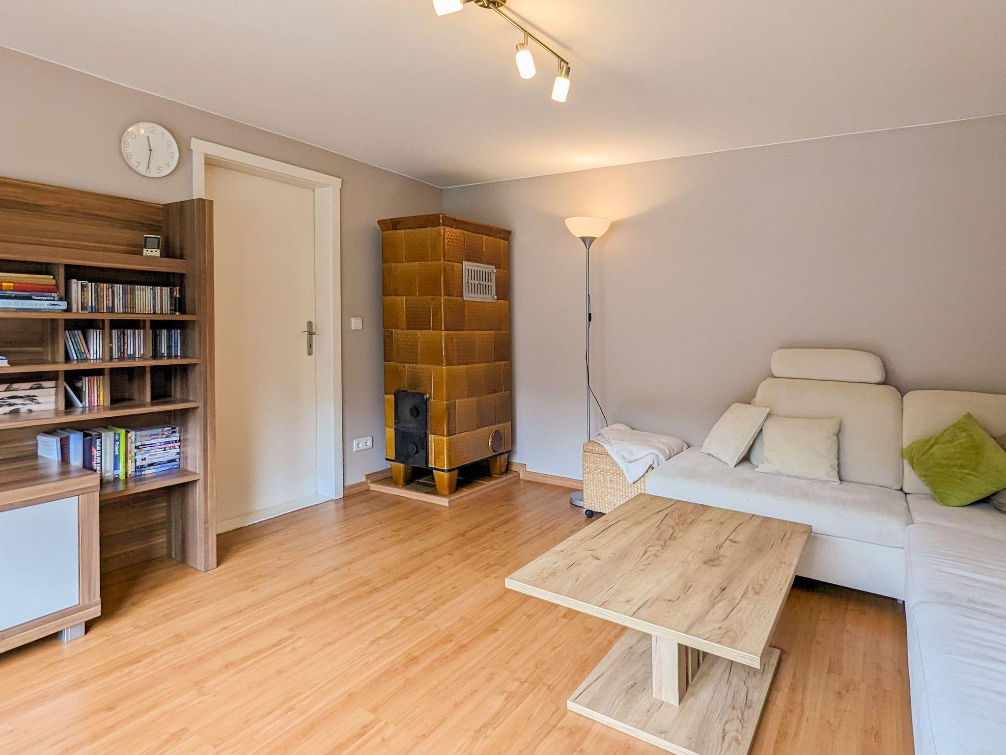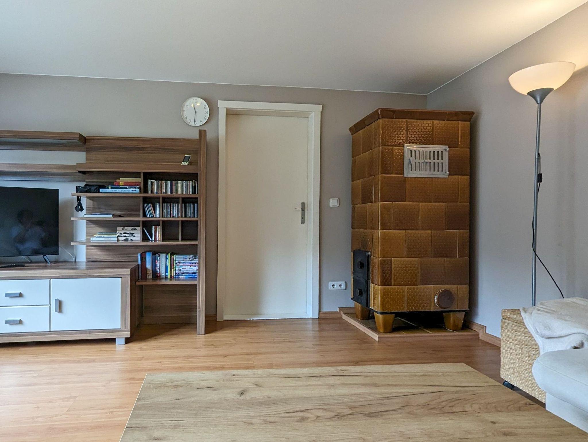 Für kühlere Abende steht im Wohnzimmer ein Kachelofen zur Nutzung bereit.