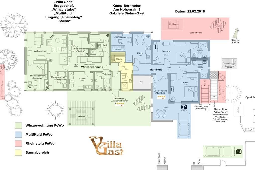 Guest at Villa Gast! Enjoy peace and beautiful view of the Rhine. 2 bathrooms, TV also in a double room, sauna, WiFi, breakfast bookable, Google app, YouTube tour