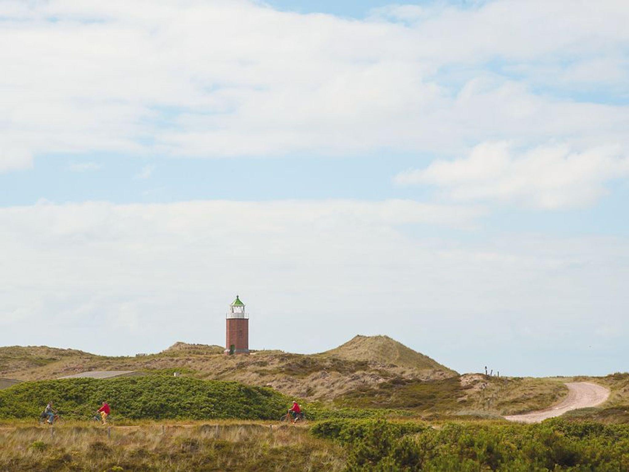Ein verschlungener Pfad führt zu diesem Hausteil im Norden Kampens auf einer Düne unweit der Hauptstraße, was angesichts der grandiosen Kulisse kaum ins Gewicht fällt. Der Panoramablick reicht vom Quermarkenfeuer über die Salzwiesen bis zum Wattenmeer. Von der Terrasse nach Westen geht es in den gemütlichen Wohnbereich mit einem Esstisch für Vier und separater Küche. Aus dem Doppelschlafzimmer im Obergeschoss ist der Ausblick herrlich. Außerdem gibt es hier ein elegantes Duschbad. Im Untergeschoss befindet sich ein weiteres Doppelschlafzimmer und ebenfalls ein modernes Duschbad samt Waschmaschine.