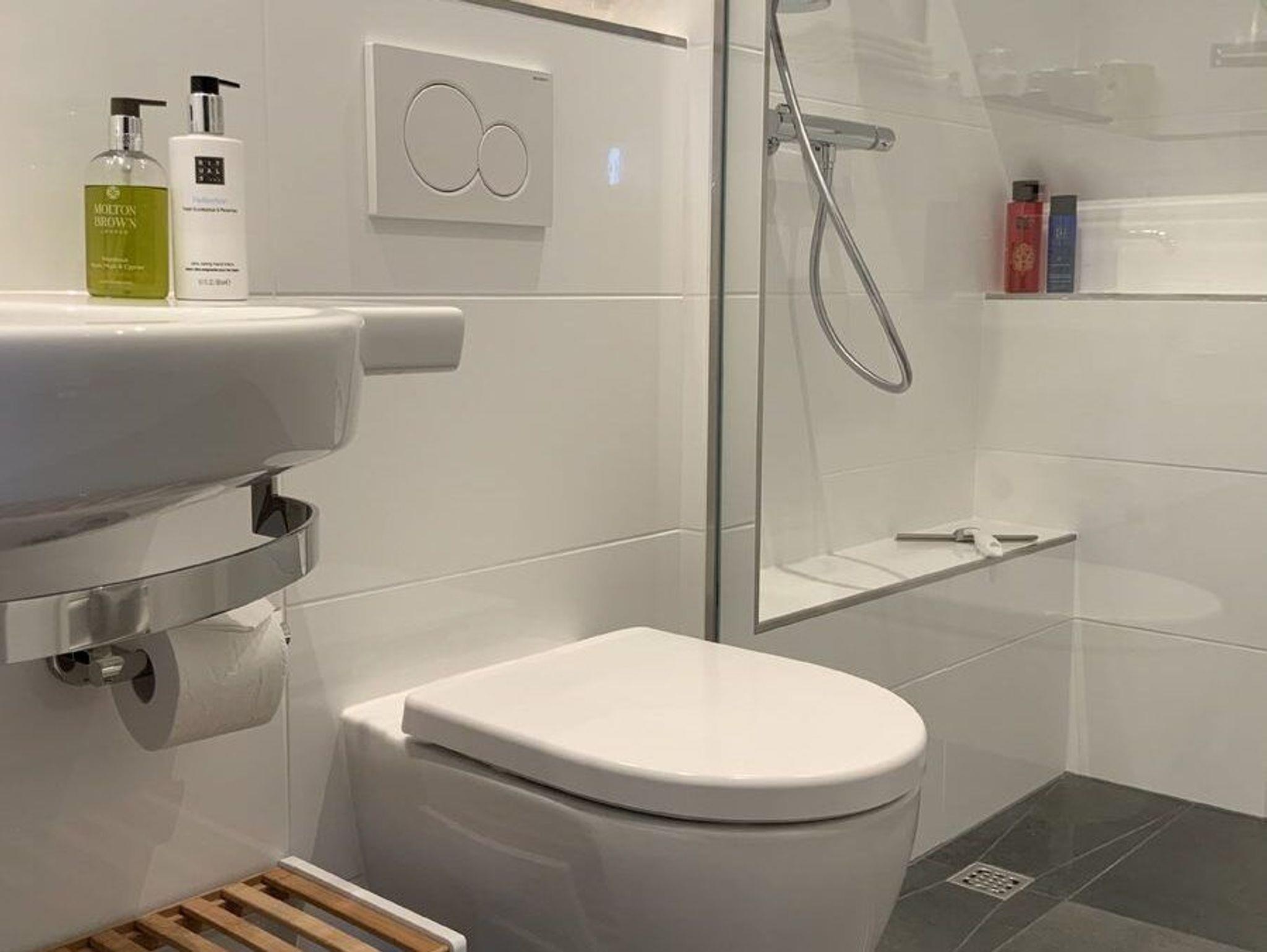 Mitten im Dorf, in einer ruhigen Nebenstraße liegt dieses schöne urige Hausteil. Das Erdgeschoss in friesisch-blau mit fröhlichen Farbakzenten erfreut mit dem offenen WohnEssbereich mit voll ausgestatteter Küche, sowie einem Gäste-WC. Von hier aus gelangen Sie auch auf die Sonnenterrasse gen Westen. Im Obergeschoss geht es weiter mit einem Doppelschlafzimmer und einem modernen Duschbad. Gleich nebenan liegt noch ein weiteres Schlafzimmer mit zwei Einzelbetten. Damit die Wartezeiten sich morgens im Rahmen halten, steht Ihnen im Untergeschoss noch ein weiteres Duschbad zur Verfügung.