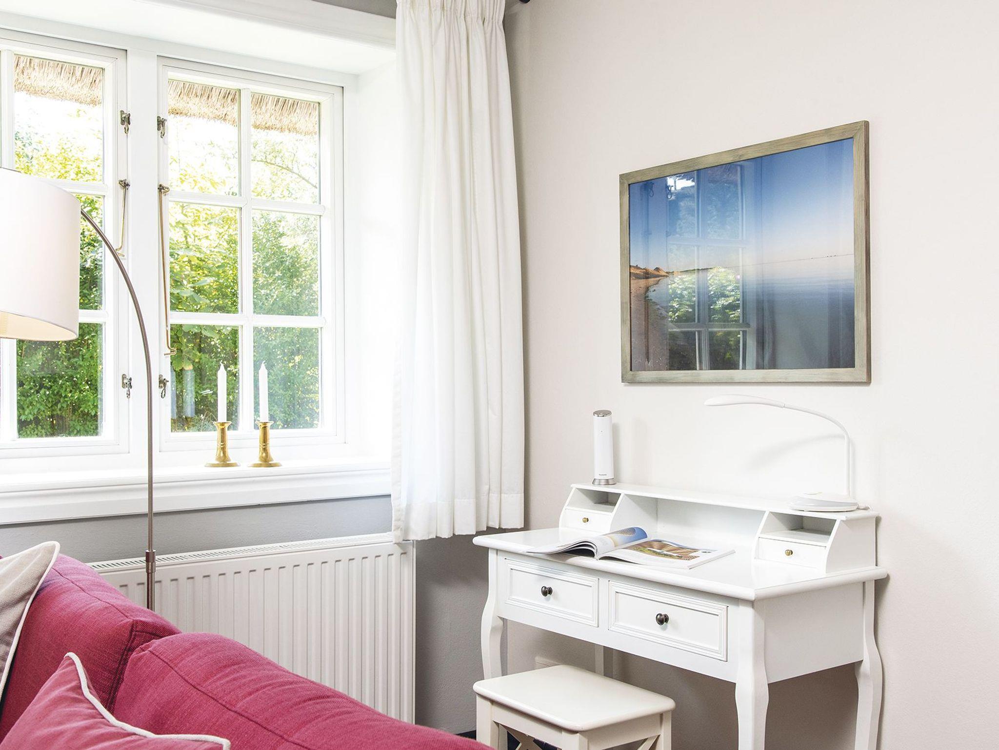 Mitten im Dorf, in einer ruhigen Nebenstraße liegt dieses schöne urige Hausteil. Sie betreten das Quartier im Erdgeschoss im großzügigen Wohn-Essbereich mit Sofaecke, kleinem Arbeitsplatz und offener Küche in friesischblau. Die eigene kleine Terrasse vor dem Hausteil lädt zum ausgiebigen Frühstück oder Sonnenbaden ein. Im Obergeschoss sind ein Doppelschlafzimmer und ein Einzelschlafzimmer ebenfalls in blau gehalten. Außerdem erwartet Sie hier ein modernes Bad mit geräumiger Dusche. Umgeben ist das Schroeders Haus von einem großen eingewachsenen Garten.