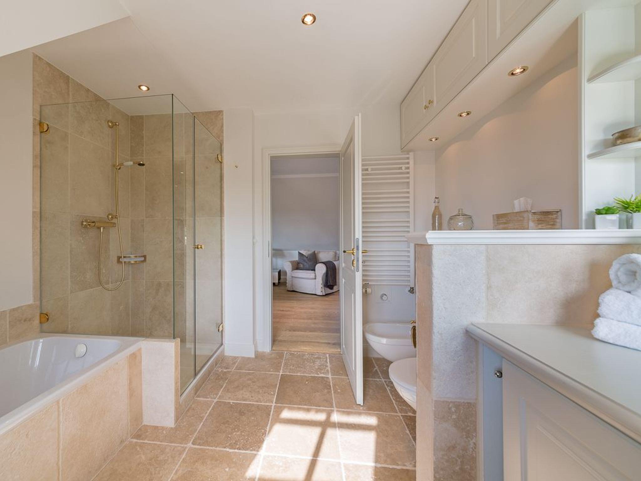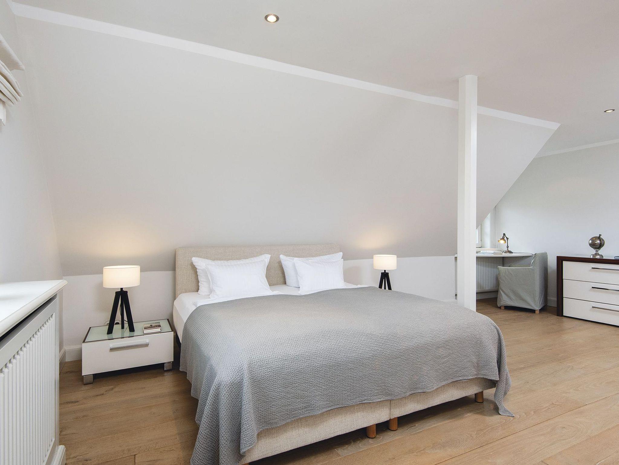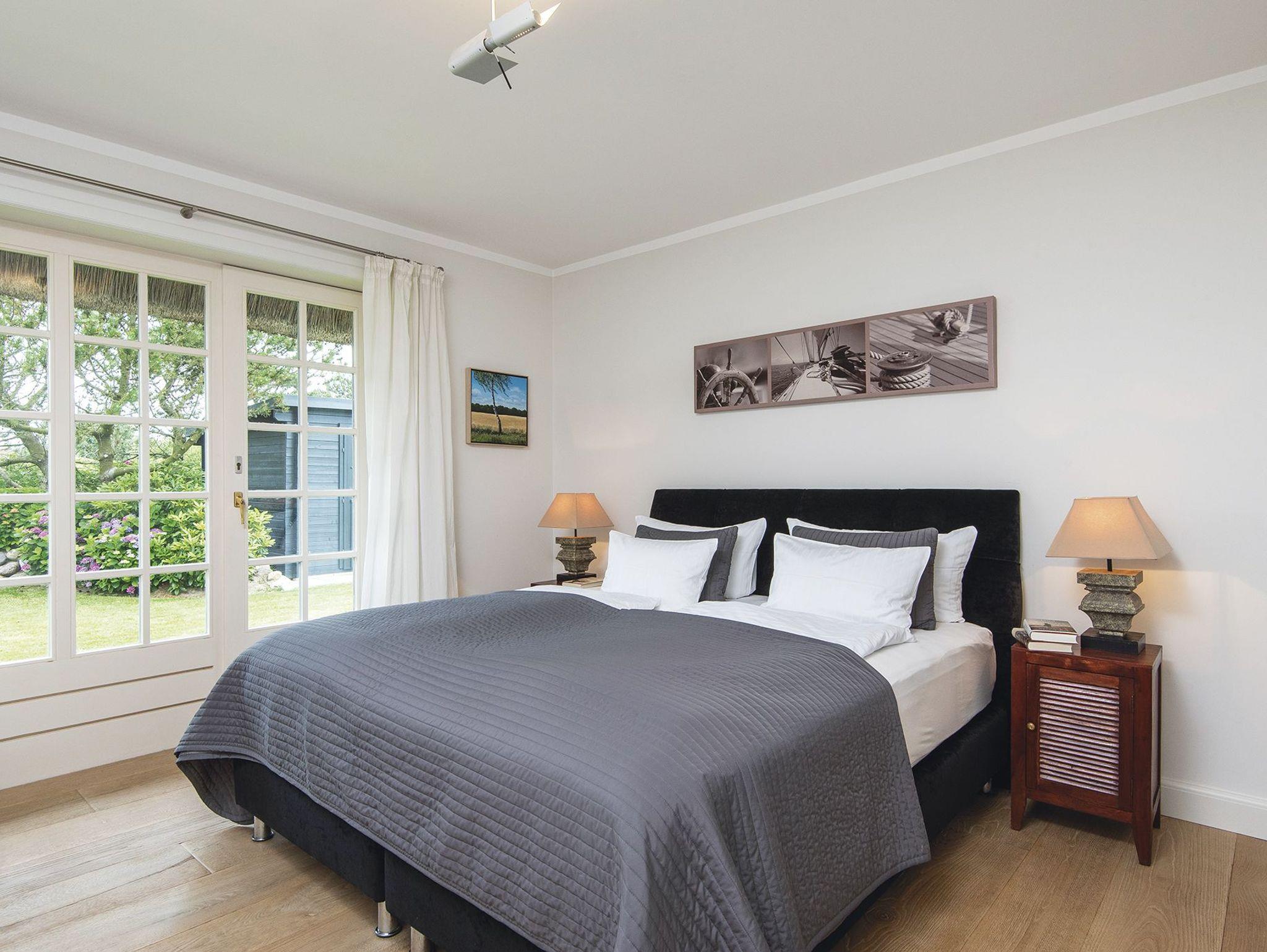 Schlichte Eleganz trifft Wohnlichkeit - hier erwartet Sie von allem nur das Beste. Durch das luftige Entrée erreichen Sie den lichtdurchfluteten und überaus großzügigen Wohn- und Essbereich. Bodentiefe Fensterfronten mit gleich zwei Terrassentüren ermöglichen den grandiosen Blick in den umzäunten Garten Richtung Süden über die Felder bis zum Kampener Leuchtturm Langer Christian. Gleich zwei Tafeln für sechs bzw acht Personen, eine davon in der offenen voll ausgestatteten Küche, laden zu geselligen Runden ein. Außerdem sorgen ein Kachelofen und elegante Sofas nebst großem TV für den Gemütlichkeitsfaktor. Über einen kleinen Flur gelangen Sie zu den zwei schönen Doppelschlafzimmern im Erdgeschoss - eine Seltenheit in Kampen! Eines mit Schreibtisch und Terrassenaustritt nach Westen, beide mit geräumigen Einbauschränken, natürlich nebst ebenerdigem Duschbad. Im Obergeschoss fällt die Wahl schwer zwischen den zwei großzügigen Doppelschlafzimmern jeweils mit begehbarem Kleiderschrank und DuschWannenbad en suite, eines mit atemberaubenden Blick vorbei am Leuchtturm bis nach Wenningstedt, das andere erfreut das Auge mit den beschaulichen Reetdächern Kampens. Im Untergeschoss wird Wellness groß geschrieben. Eine Whirlwanne über Eck, eine gemauerte Dusche und die Sauna für bis zu Vier, sowie zwei Relaxliegen samt TV lassen keine Wünsche offen. Zudem befinden sich auf dieser Etage noch je ein Doppel- und ein Einzelschlafzimmer, sowie ein Duschbad. Ein großzügiges Quartier für Familien und alle mit Sinn für Schönes.