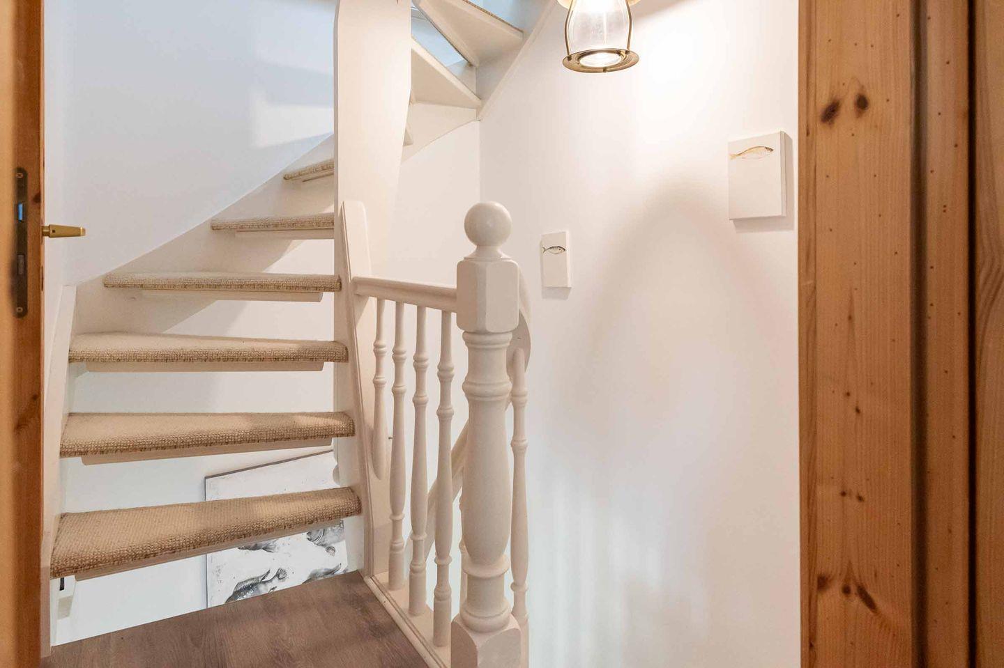 Über eine Wendeltreppe gelangen Sie in das Obergeschoss:
