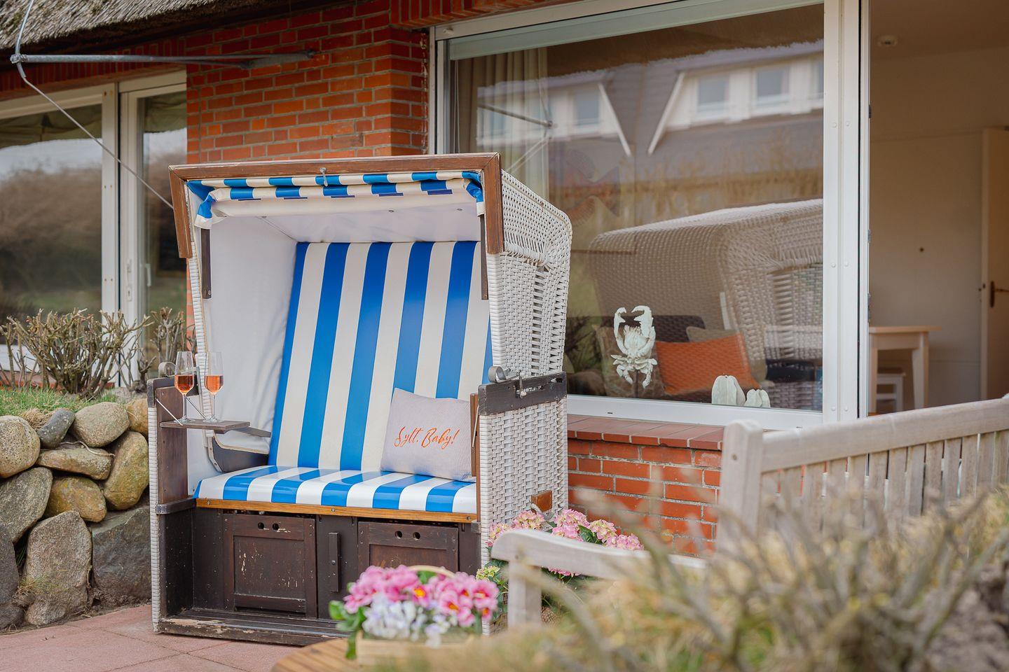 Der private Strandkorb ist der ideale Ort, um die letzten Sonnenstrahlen des Tages zu genießen oder einfach ein gutes Buch zu lesen.