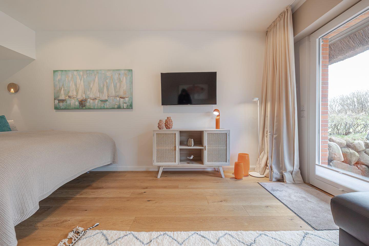 Die Wohnung befindet sich in Kampen, einem der exklusivsten und gleichzeitig schönsten Orte auf der Insel, wo raue Küstenlandschaften, weite Dünenfelder und das unverwechselbare Rote Kliff eine einmalige Kulisse schaffen.