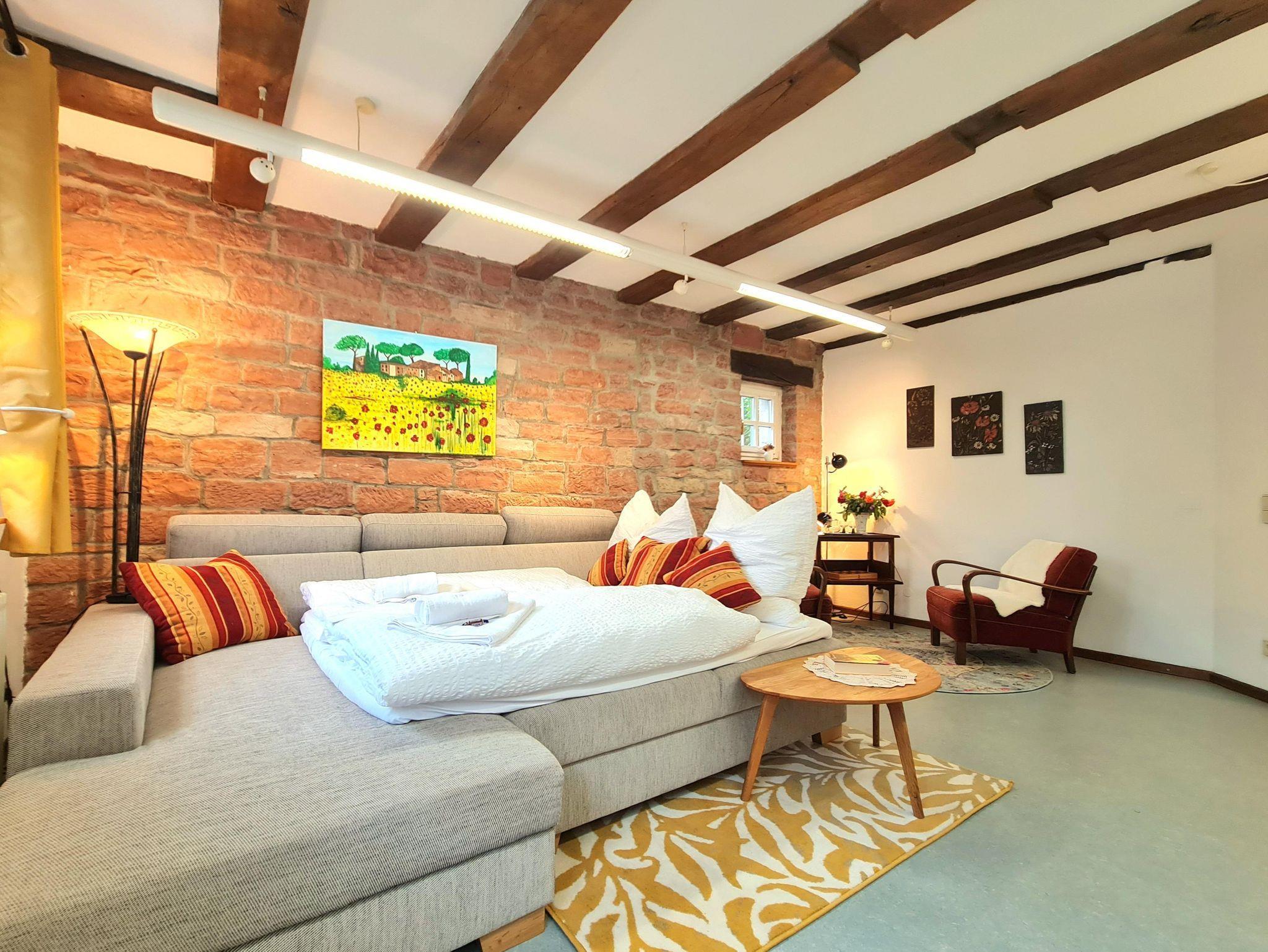 Das stilvolle Fachwerk Apartment mit seinen charmanten Balken und der offenen Natursteinwand in Wohnzimmer und Küche, bietet dir eine hochwertige Ausstattung mit Platz für 6 Gäste. Damit du dich so wohl fühlst wie zu Hause halten wir für dich alle Annehmlichkeiten bereit.