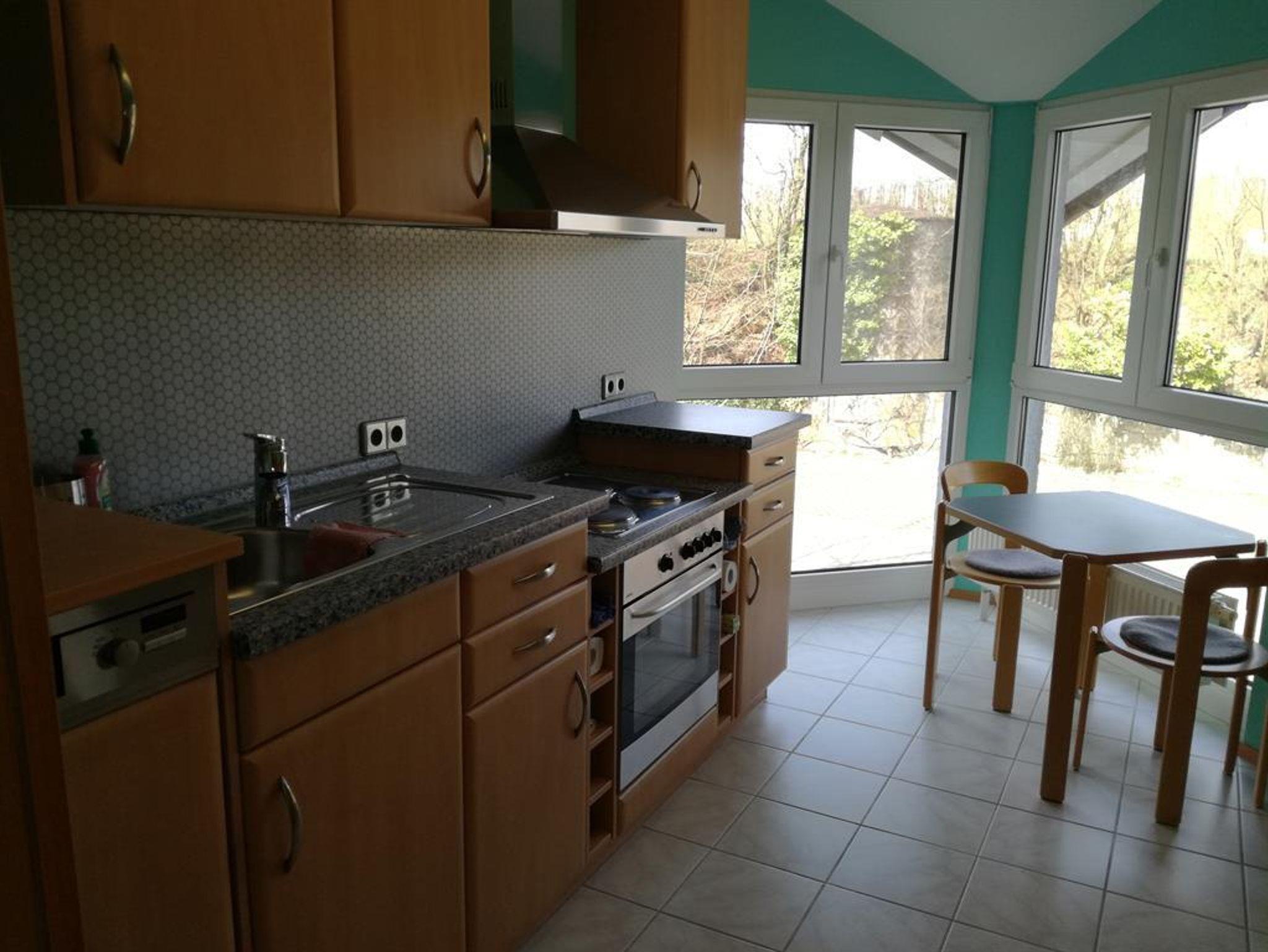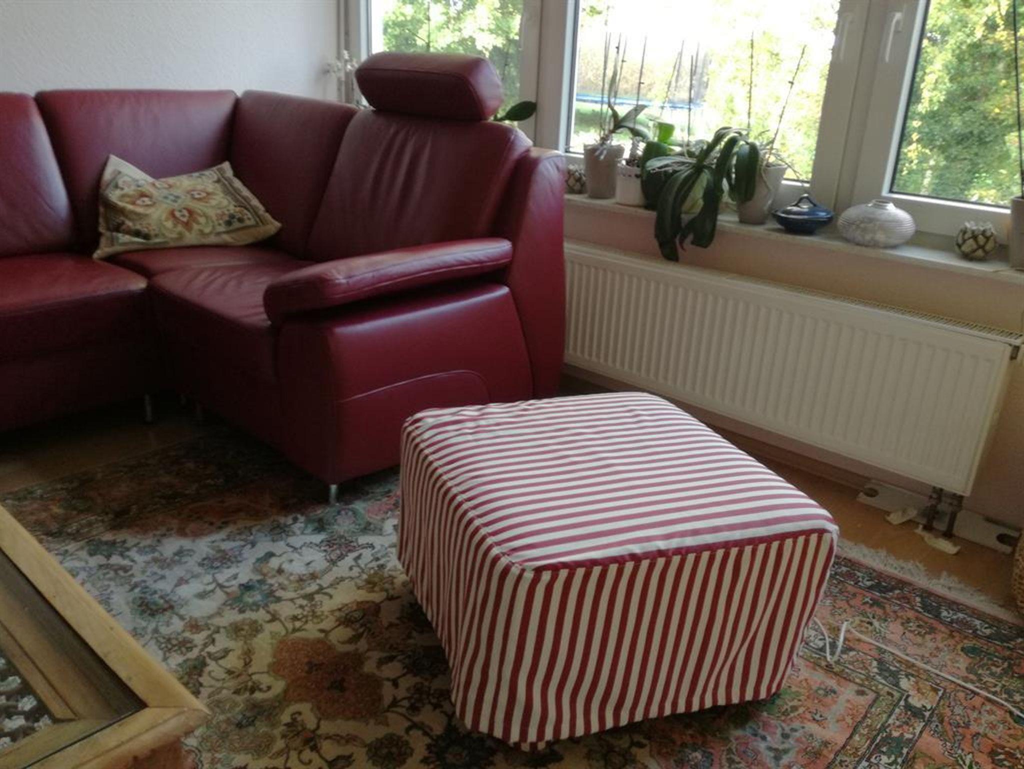 Die Fewo mit 2 Schalfzimmern erwartet Sie mit 80 qm Wohnfläche und liegt im 1. OG des Ferienhauses. Sie besticht durch ein sehr großes Wohnzimmer mit durchgängiger Fensterfront zum Garten hinaus. Die Ostseit beschert ein schönes Morgenlicht. Das große Sofa bietet bis zu 6 Personen Platz, ebenso der ausziehbare Esstisch. Dazu erwartet Sie eine separate großzügige Küche mit einem zusätzlichen Sitzplatz. Der zugehörige Balkon ist überdacht.
