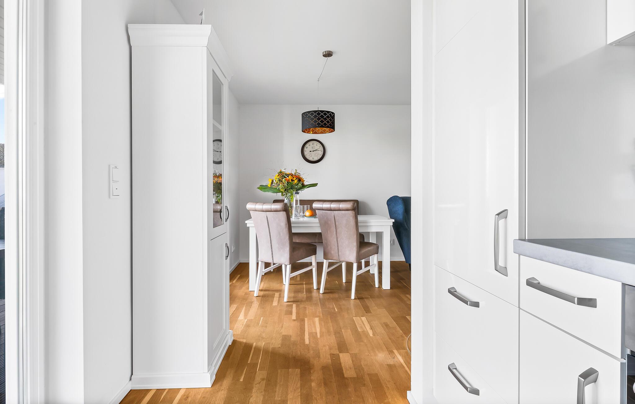 Velkommen til den magiske Captain Haddock ferielejlighed, som tilbyder jer det perfekte tilflugtssted til at nyde jeres ferie fuldt ud. Så snart I åbner døren, kommer I ind i en rummelig stue/spisestue med et behageligt opholdsområde, et fjernsyn og en knitrende pejs til koldere dage. Her finder I også et spisebord og det tilstødende køkken. Dette lader intet tilbage at ønske og tilbyder alt, hvad I har brug for til kreativ madlavning. Herfra er der adgang til den store, overdækkede terrasse, hvor I kan nyde den skønne friske havluft. De to soveværelser er smagfuldt designet og inviterer jer til at få en god nats søvn. En komfortabel boxspring dobbeltseng venter jer i master bedroom, mens det andet soveværelse er udstyret med to hyggelige boxspring enkeltsenge. I begge rum finder I nok opbevaringsplads til jeres personlige ejendele og en behagelig atmosfære, der inviterer jer til at slappe af. Badeværelset er et rigtigt højdepunkt i denne bolig. Udover en moderne bruser finder I også et luksuriøst spabad, hvor I kan slappe skønt af efter en aktiv dag fuld af udforskning. Hvis I længes efter yderligere afslapning, vil den infrarøde sauna hjælpe jer med at lægge hverdagens stress bag jer og finde fuldstændig ro. For nemheds skyld er der en privat parkeringsplads, hvor I sikkert kan parkere jeres køretøj. I finder også et cykelskur til at opbevare jeres cykler sikkert, hvis I vil udforske det omkringliggende område på cykel. Indtast Captain Haddock og lad jer fortrylle af denne ferielejligheds unikke atmosfære og charme på landet. Her finder I alt hvad I behøver til en afslappende ferie, så I kan nyde jeres ophold i fulde drag og tage uforglemmelige minder med jer hjem. Vores foretrukne sted om aftenen på terrassen. Det perfekte sted at afslutte dagen med en grillaften med hele familien. Bemærk venligst: OstseeResort Olpenitz er meget populært, og der bygges fortsat i parken. Ikke desto mindre kan I se frem til en 5-stjernet standard og et førsteklasses ophold. Byggeaktiviteterne kommer ikke til at forstyrre jer på ferien, og derfor gives der ikke yderligere afslag i prisen.