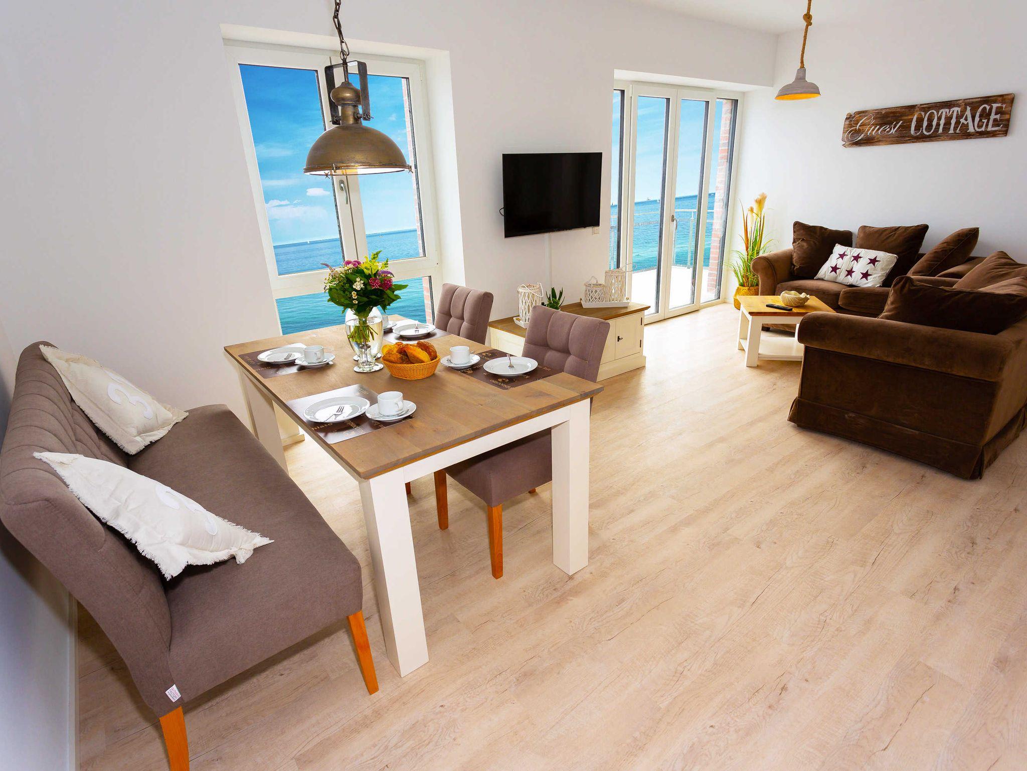 Die Komfort-Ferienwohnung Waterkant befindet sich in dem durch einen Aufzug erreichbaren 1. Obergeschoss vom Molenhuus, das nur 6 Meter (!) von der Ostsee entfernt liegt. Die Wohnung bietet Platz für bis zu 4 Personen und ist exzellent und sehr hochwertig ausgestattet.