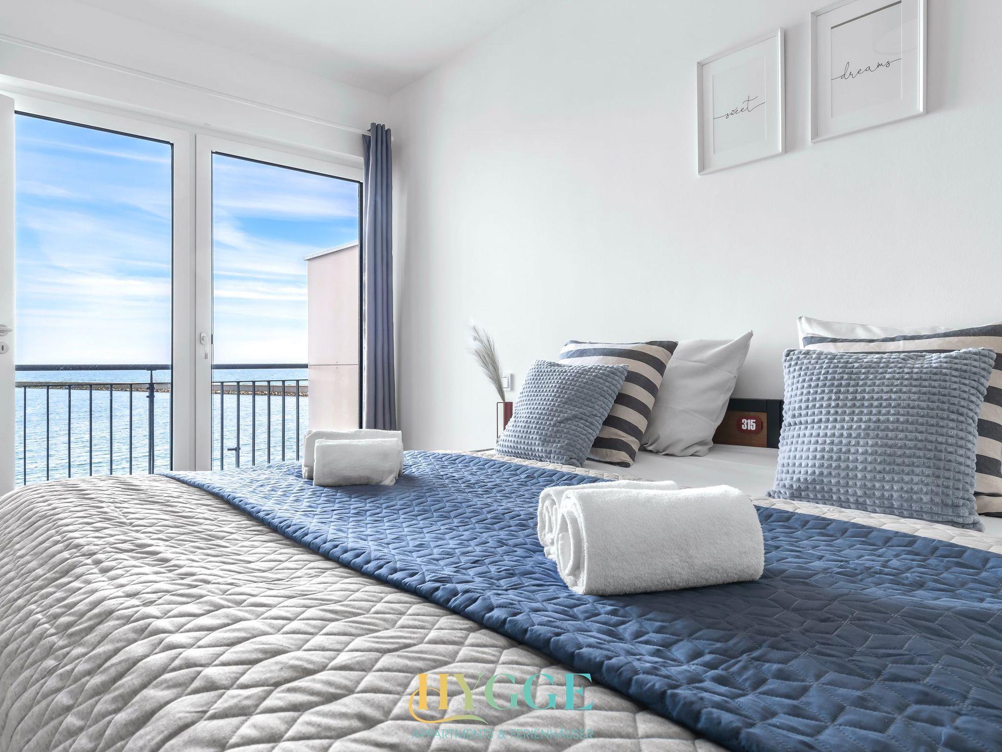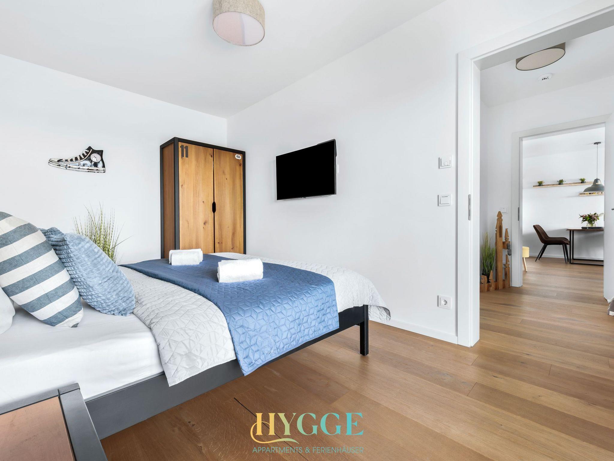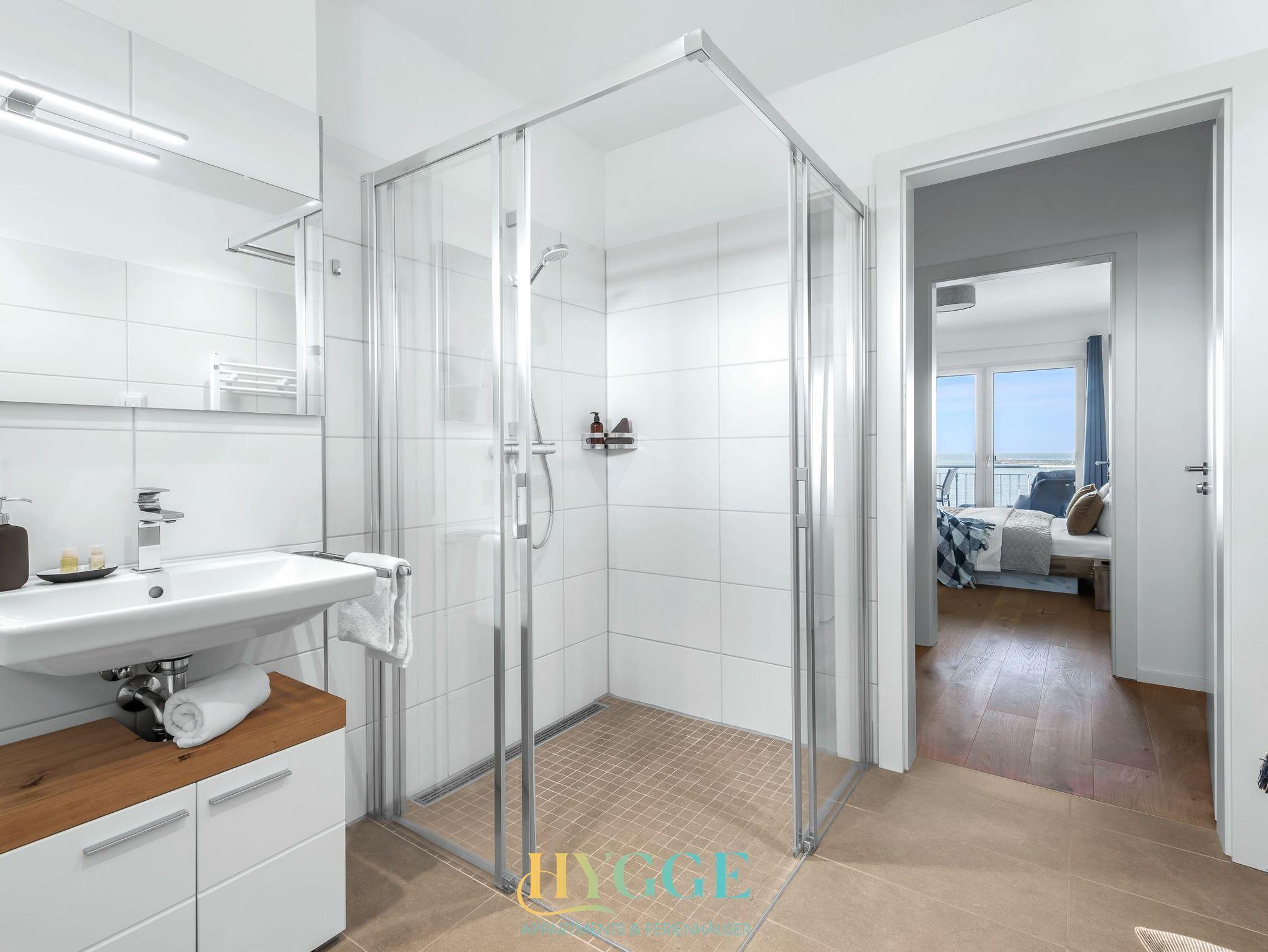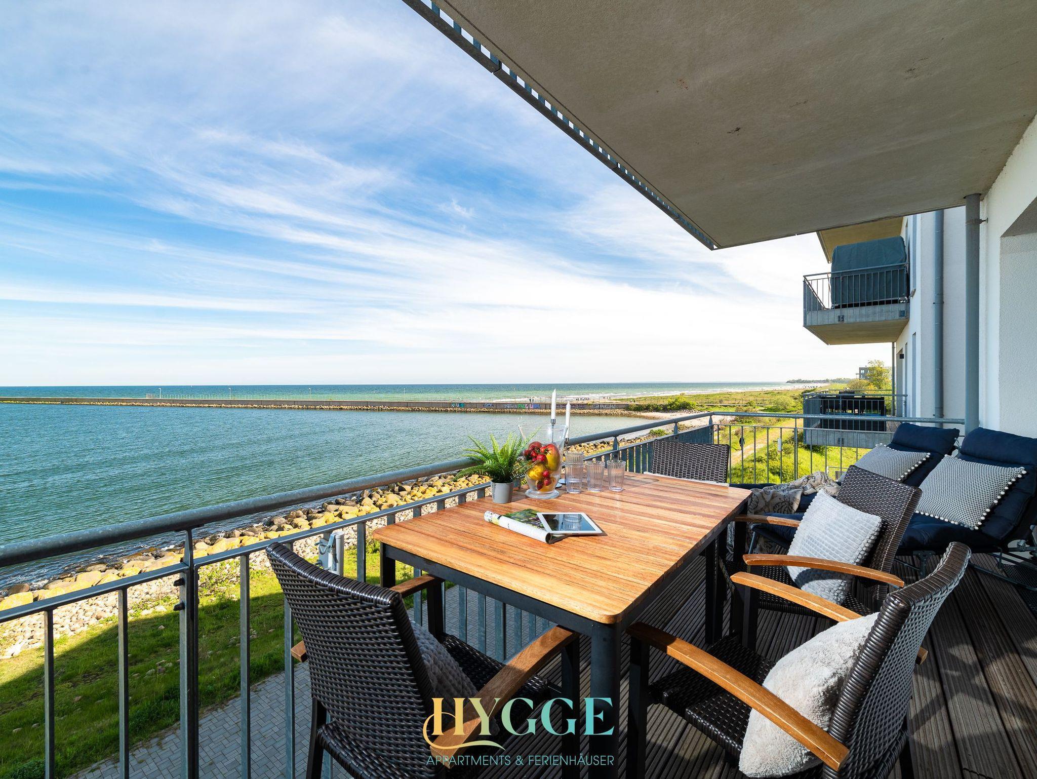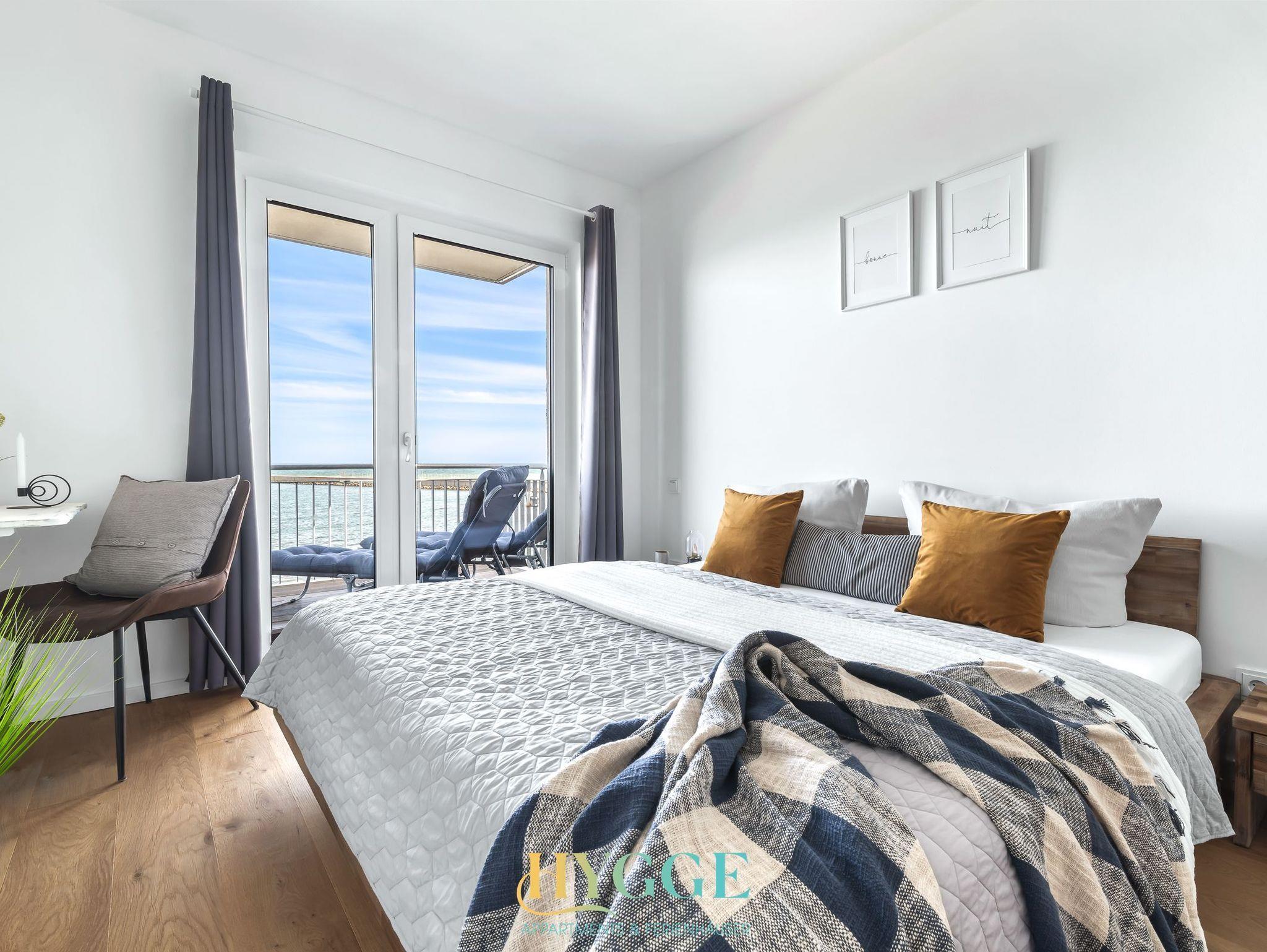 Diese traumhafte Ferienwohnung verfügt über zwei Schlafzimmer, ein großes Bad, einen großzügigen Wohn- & Essbereich sowie einen sehr großen Balkon mit Meerblick. Die gemütliche Sitzlandschaft im Wohnbereich lädt zum Entspannen ein und bietet einen faszinierenden Blick auf das Wasser. Besonders in der dunklen Jahreszeit wird es hier hyggelig, wenn die Ostsee vor der Fensterfront ihr Temperament zeigt und das Sofa zu einem Rotwein bei prasselndem Kaminfeuer einlädt. Für Indoor-Entertainment sorgt ein großer Fernseher. Im Sommer steht ihnen einen Grill auf der Loggia zur zur Verfügung. Alle Zimmer sind mit einem eigenen TV Gerät mit MagentaTV und diversen Streaming Diensten ausgestattet. Der Zugang erfolgt vom eigenen Parkplatz in der Tiefgarage über den Fahrstuhl in die zweite Garage.