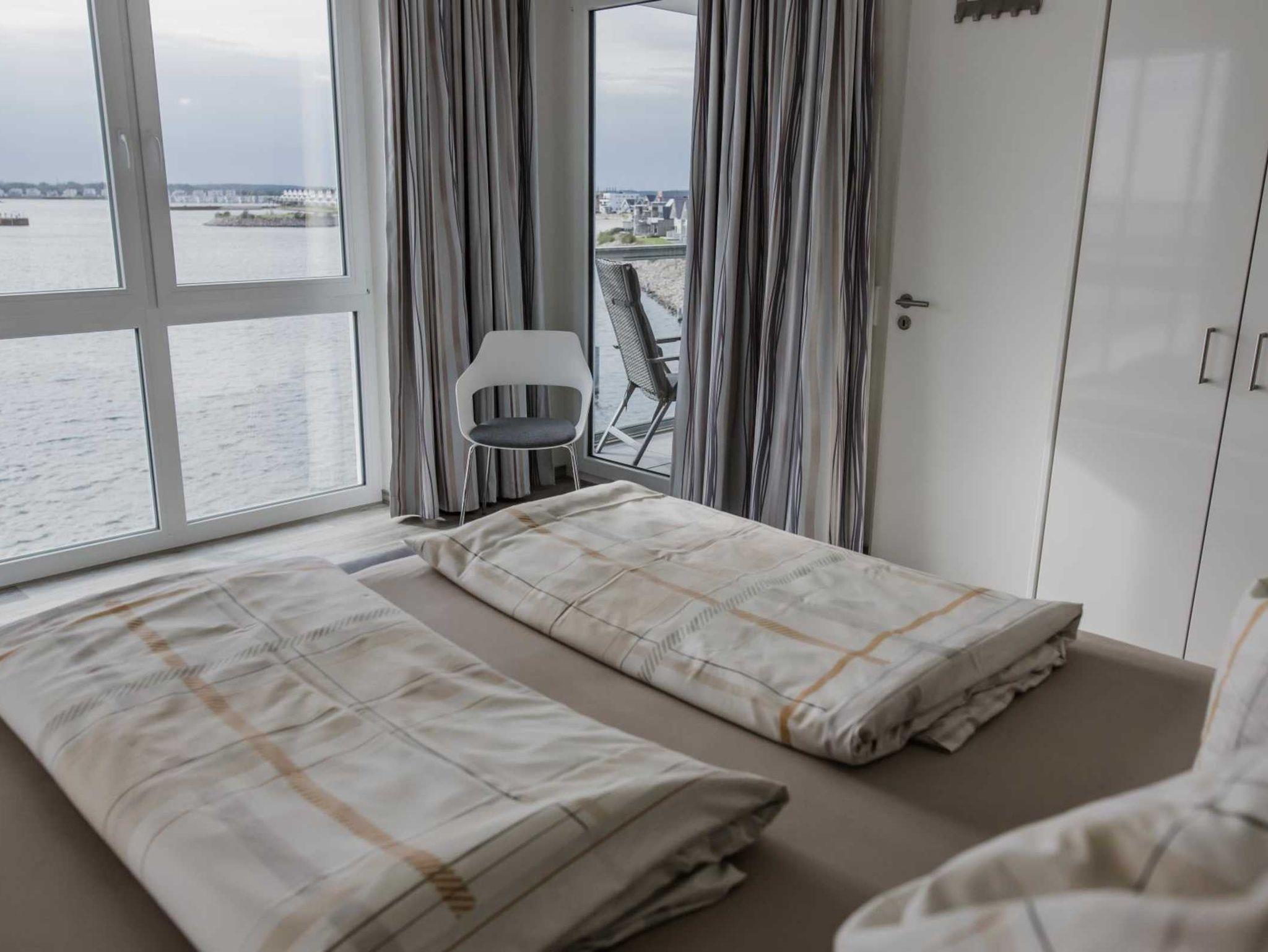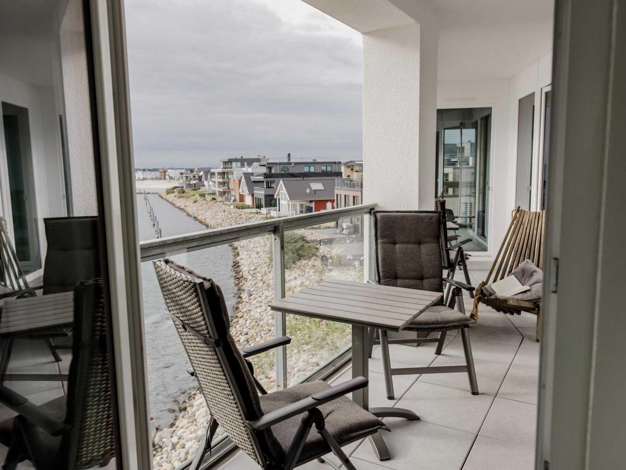 Genießen Sie den Balkon! Ihr Blick schweift ungehindert über den Hafen, die Hafeneinfahrt bis zur Ostsee. Alles was sich in diesem Ostsee-/Hafenbereich „tummelt“ ist in Ihrem direkten Blickfeld!