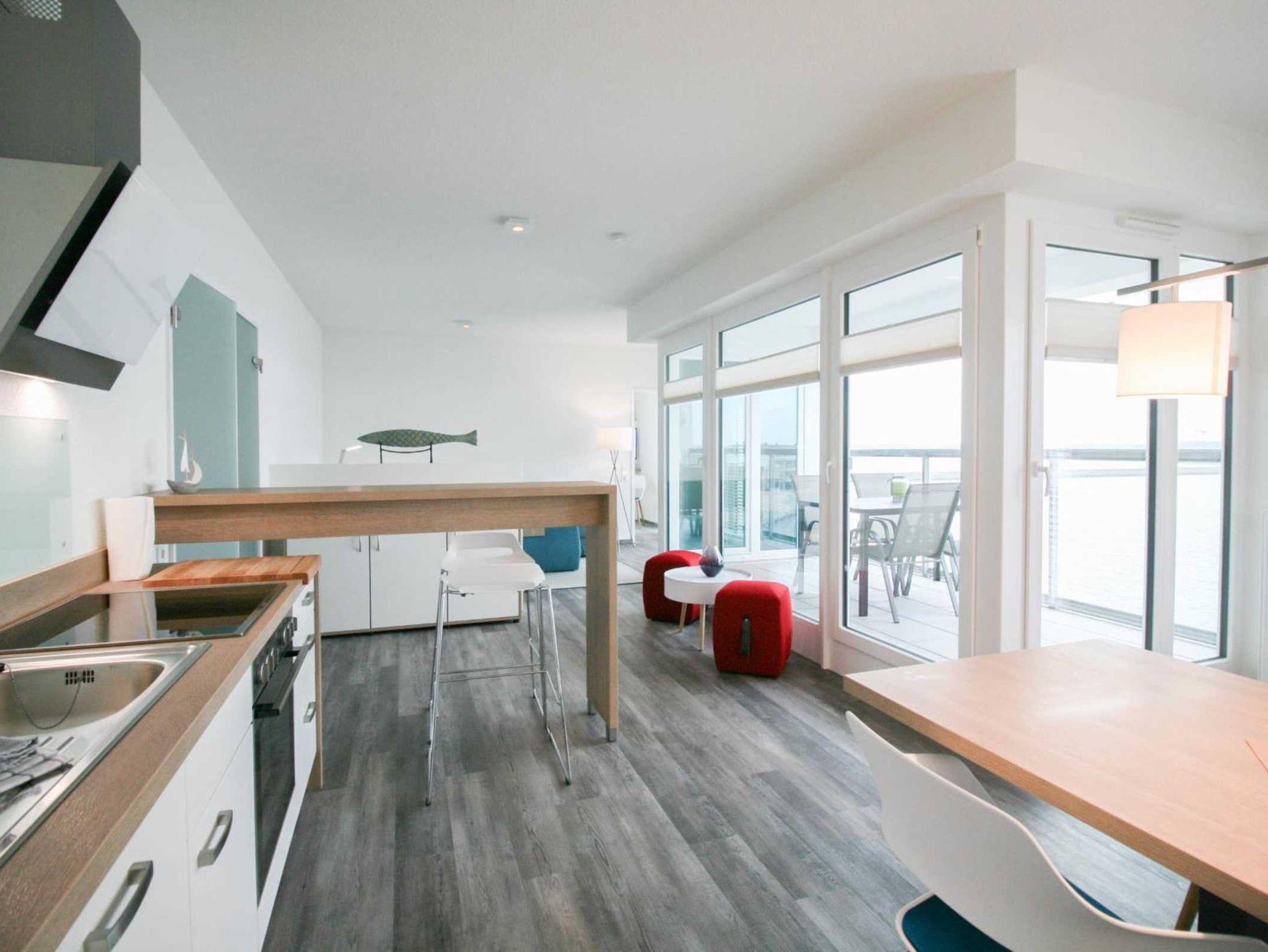 Die Residenz Bollwark beherbergt 26 hervorragend ausgestattete Wohneinheiten. In den Zwei- und Dreizimmerappartements fühlen sich erholungsuchende Paare ebenso wohl wie Familien mit Kindern, die erlebnisreiche Tage am Meer verbringen möchten. Alle Wohnungen verfügen über einen privaten Balkon, eine Terrasse oder Loggia: Dort lassen die Feriengäste den Tag nah dran am Geschehen auf dem Wasser entspannt mit einer Tasse Kaffee beginnen oder abends bei einem Glas Rotwein Revue passieren. Für das Interieur der hellen und großzügig geschnittenen Wohneinheiten waren erfahrene Inneneinrichtungsspezialisten verantwortlich.