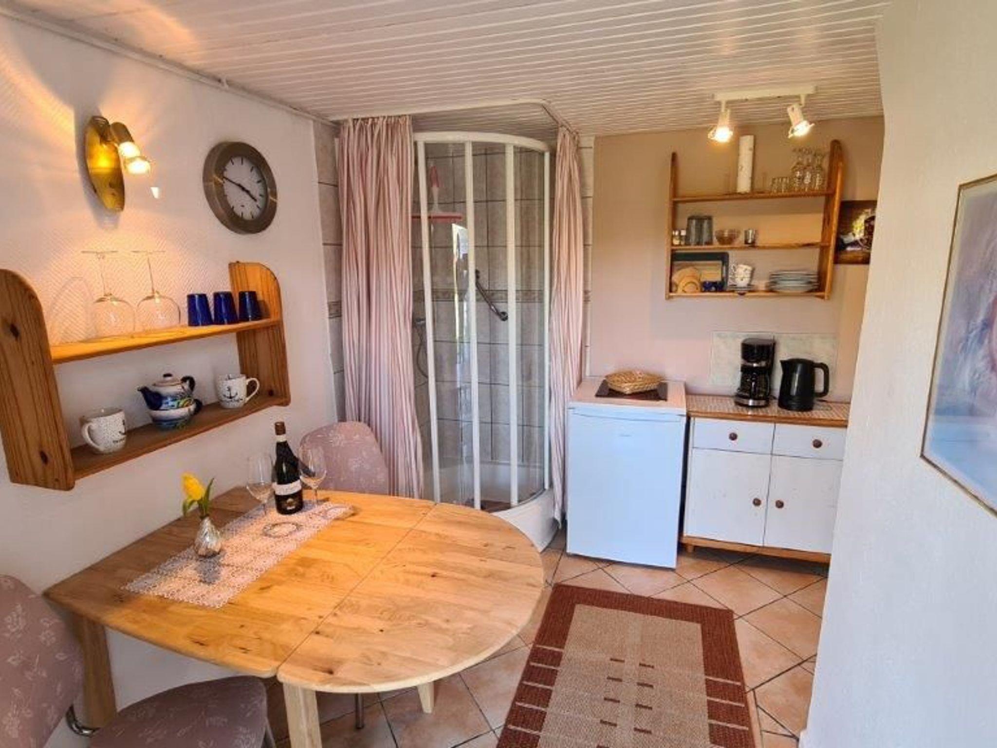 FW 25: Zweiraumwohneinheit im EG für 2 Personen. Kühlschrank vorhanden, Dusche im ersten Wohnbereich.