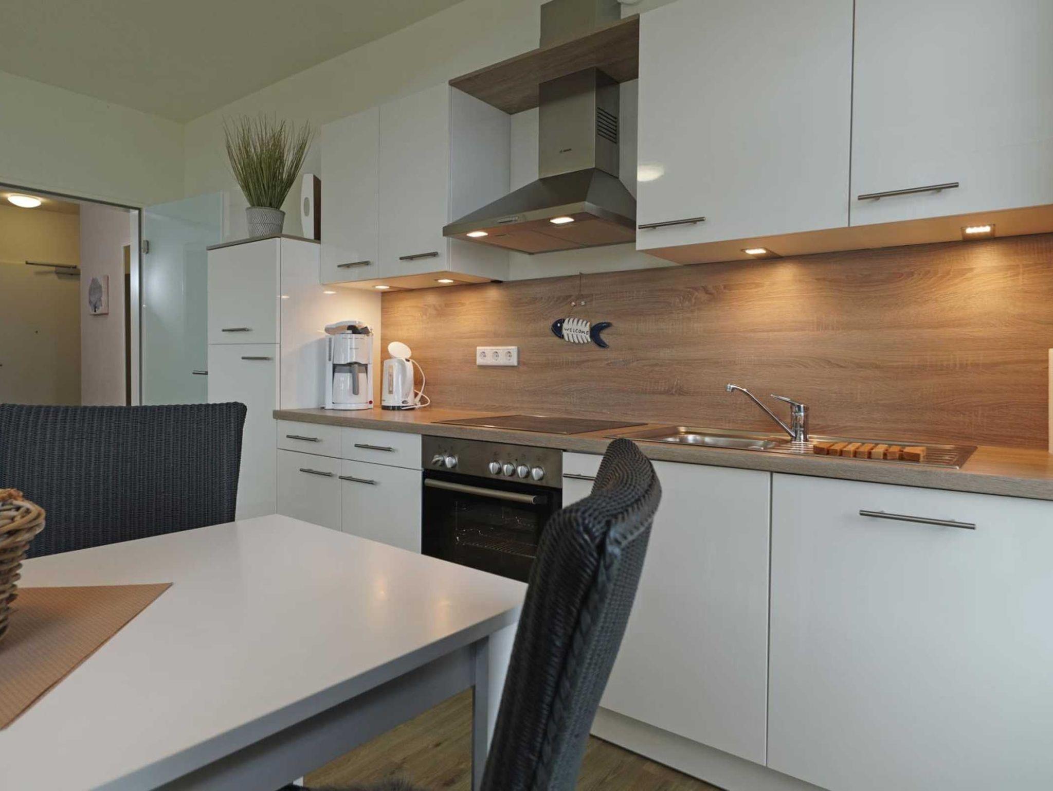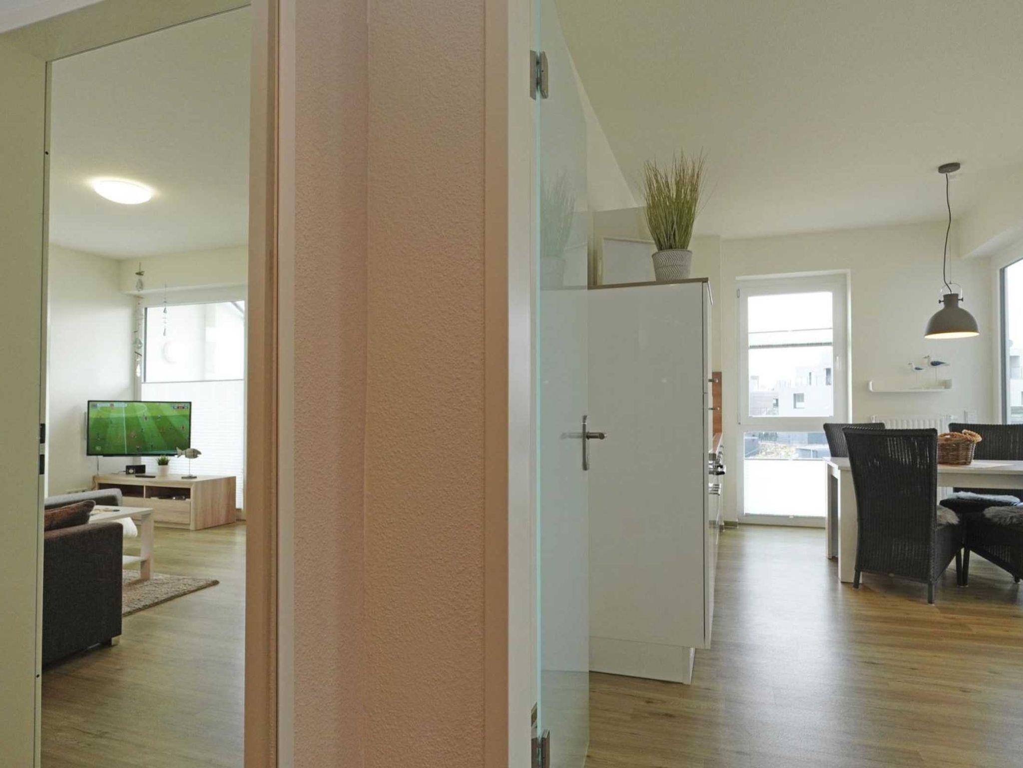 Die sorgfältig aufeinander abgestimmten Farben der Bodenbeläge, Möbel und Wohntextilien bilden eine harmonische Einheit. Für Unterhaltung sorgt ein Sat-TV mit Sky-Programmen. Einige Appartements besitzen eine private Sauna. Zu jeder Wohnung gehört ein Stellplatz ? entweder in der Tiefgarage oder im Außenbereich. Über einen Lift sind auch die Wohnungen in den oberen Stockwerken bequem zu erreichen. Eine Rezeption vor Ort ermöglicht ein stressfreies Ankommen. Gerne kümmert sich das Team um alle Fragen und Anliegen der Gäste und gibt Tipps zur abwechslungsreichen Urlaubsgestaltung in der Region. Für Aktivurlauber ist ein geräumiger Fahrradkeller vorhanden. Insbesondere Familien und Feriengäste, die einen längeren Aufenthalt an der Schleimündung genießen, schätzen die Möglichkeit, eine Münz-Waschmaschine sowie einen Münz-Trockner nutzen zu können.