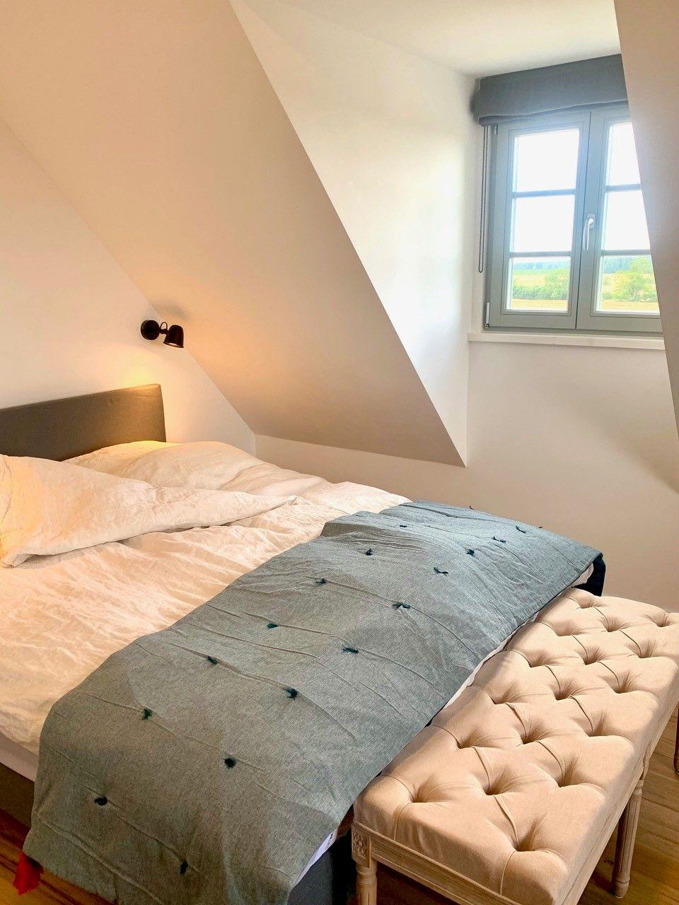 Insgesamt verfügt das "kleine Nest" über 3 liebevoll eingerichtete Schlafzimmer. Die ersten beiden Zimmer bieten jeweils ein komfortables Doppelbett (160x200 cm) mit offenem Fußende, Kleiderschrank und Verdunklungsmöglichkeiten (Rollo und Gardine). Das dritte Schlafzimmer im Dachgeschoss (Empore) besticht durch sein besonderes Flair mit offener Treppe, einem Schlafsofa (140x200cm), Kommode und Verdunklungsmöglichkeiten.