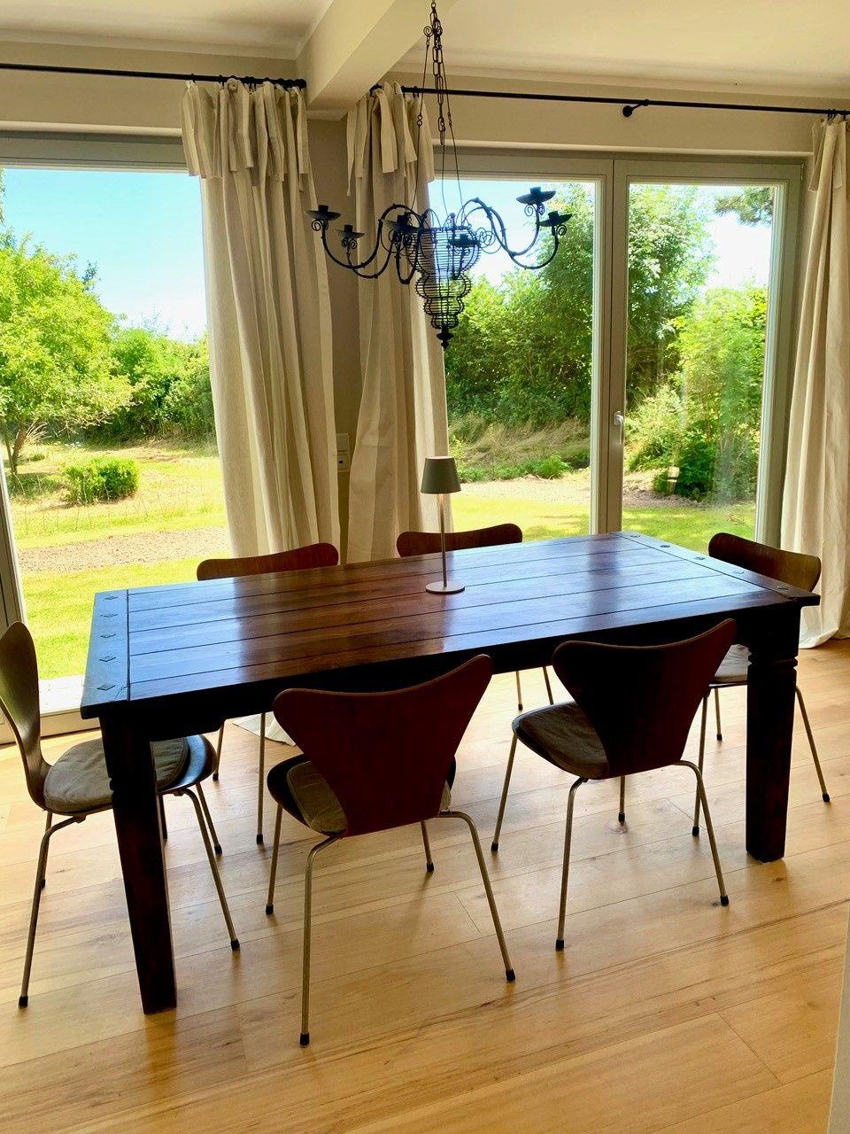 Der kombinierte Wohn- und Essbereich des Objektes ist mit einem Kaminofen ausgestattet und grenzt an die offene Küche. Die Küche ist voll ausgestattet mit einer Mikrowelle, Induktionskochfeld, Backofen, Kühlschrank, Gefriermöglichkeit, Spülmaschine, Filterkaffeemaschine und Kaffeevollautomat, Wasserkocher, Toaster, Handrührgerät, Eierkocher, Raclette sowie Geschirr und Besteck.