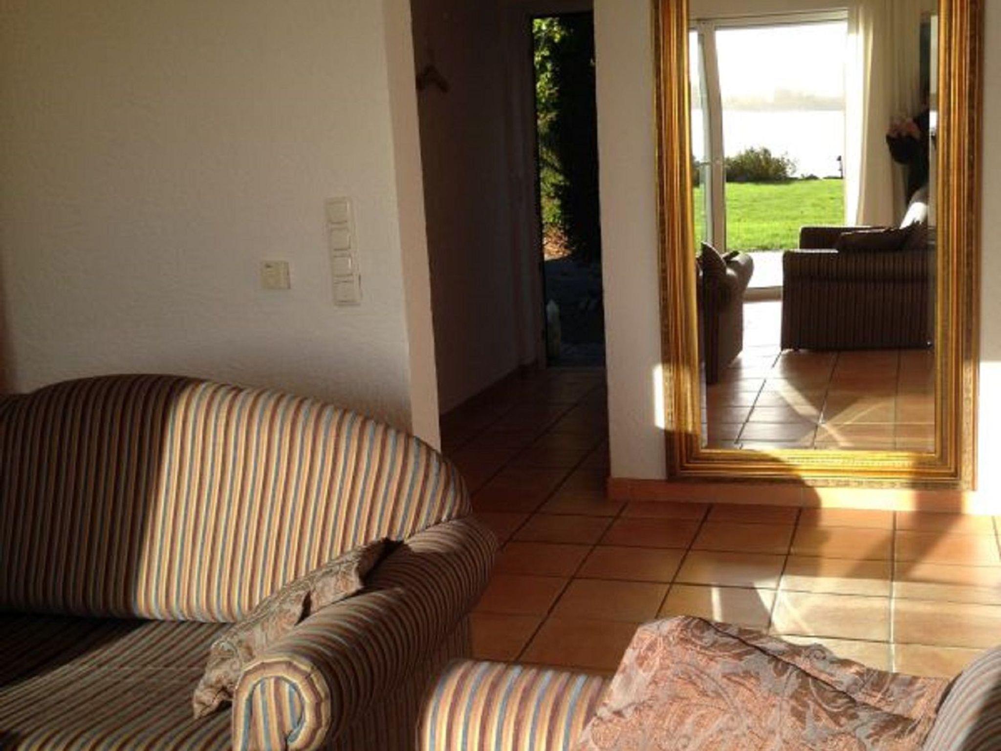 Schöne helle Ferienwohnung 60 m² im Erdgeschoss mit geräumiger Terrasse und Garten mit Liegewiese. Das Grundstück liegt direkt an der Schlei und hat einen eigenen Wasserzugang.