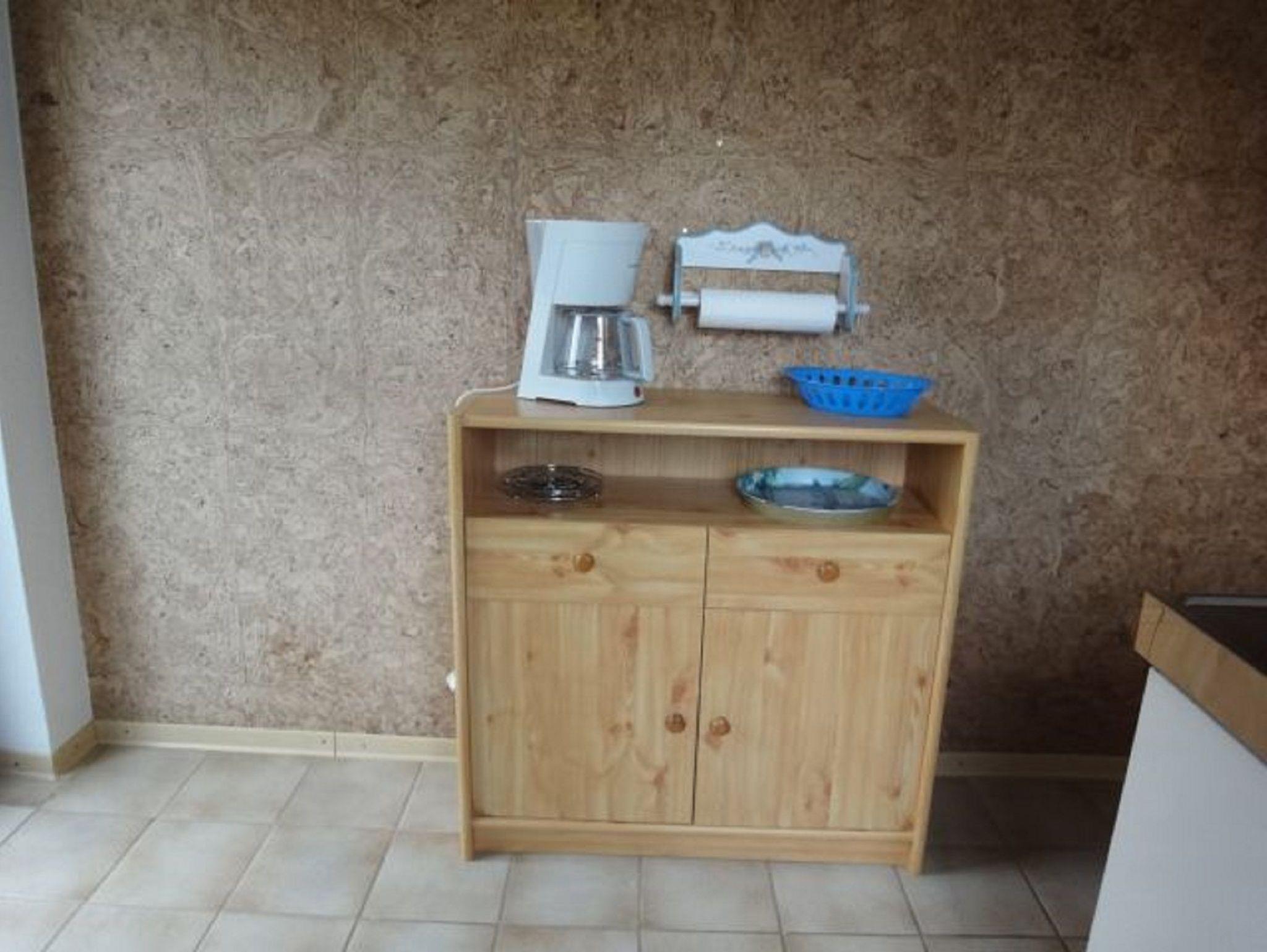 Die Ferienwohnung hat einen separaten Eingang. Es gibt einen kombinierten Wohn- und Schlafraum mit einer Schlafcouch. Das Bad hat eine Dusche. Es gibt eine kleine Pantry Küch. Vor der Wohnung ist ein PKW-Stellplatz vorhanden. Die Ferienwohnung hat eine überdachte Terrasse mit Südlage.