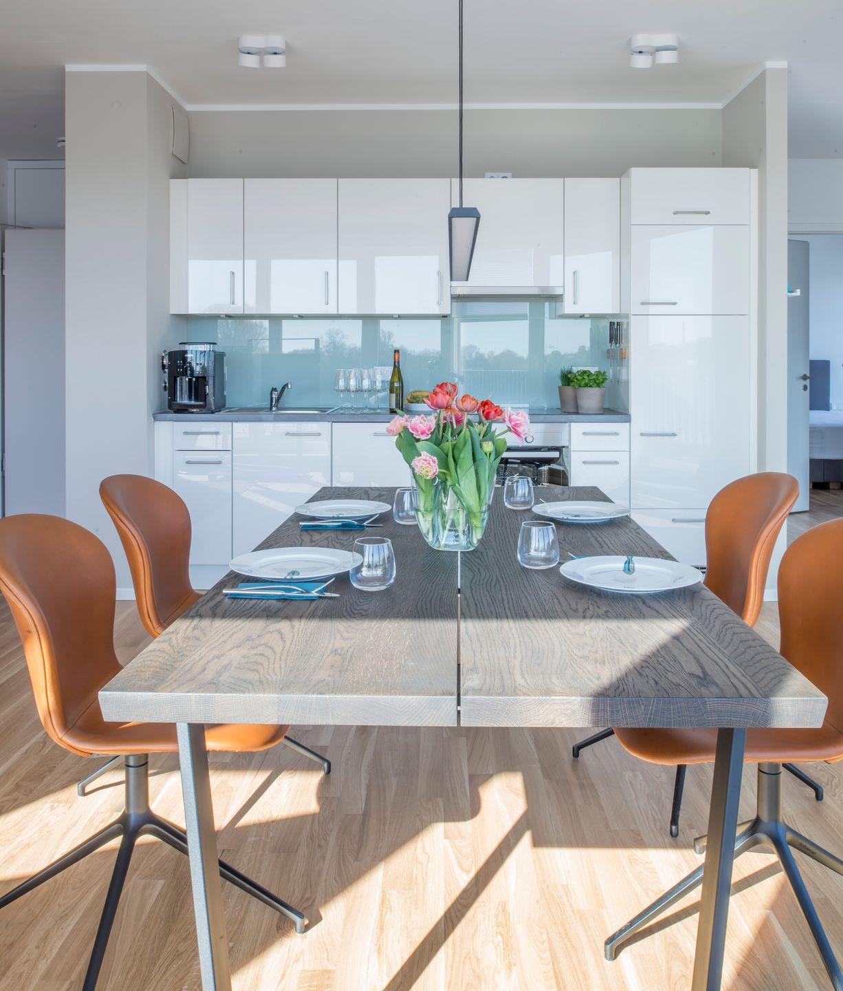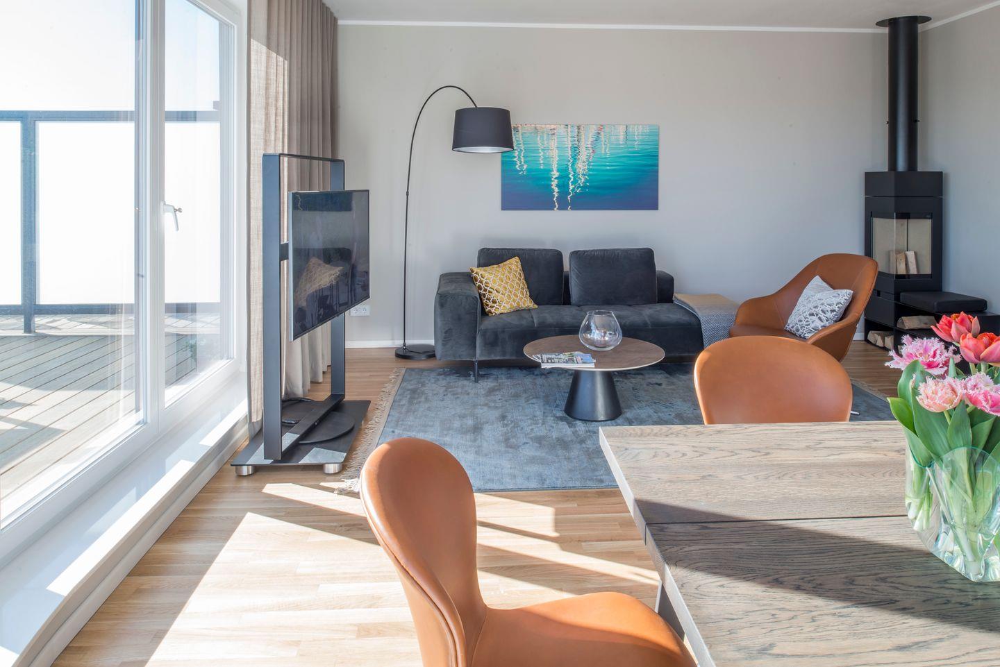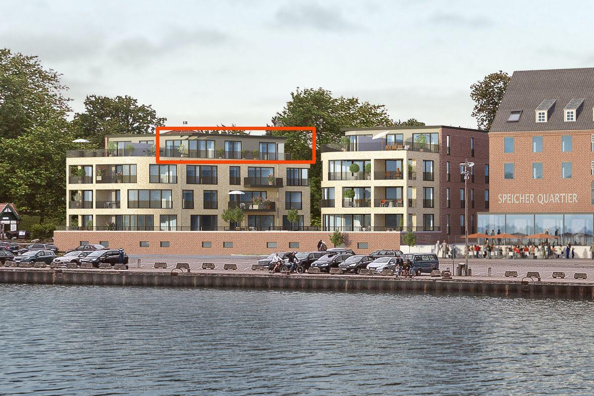 Das Penthouse liegt im Dachgeschoss eines Neubaus, direkt am Südhafen von Kappeln.