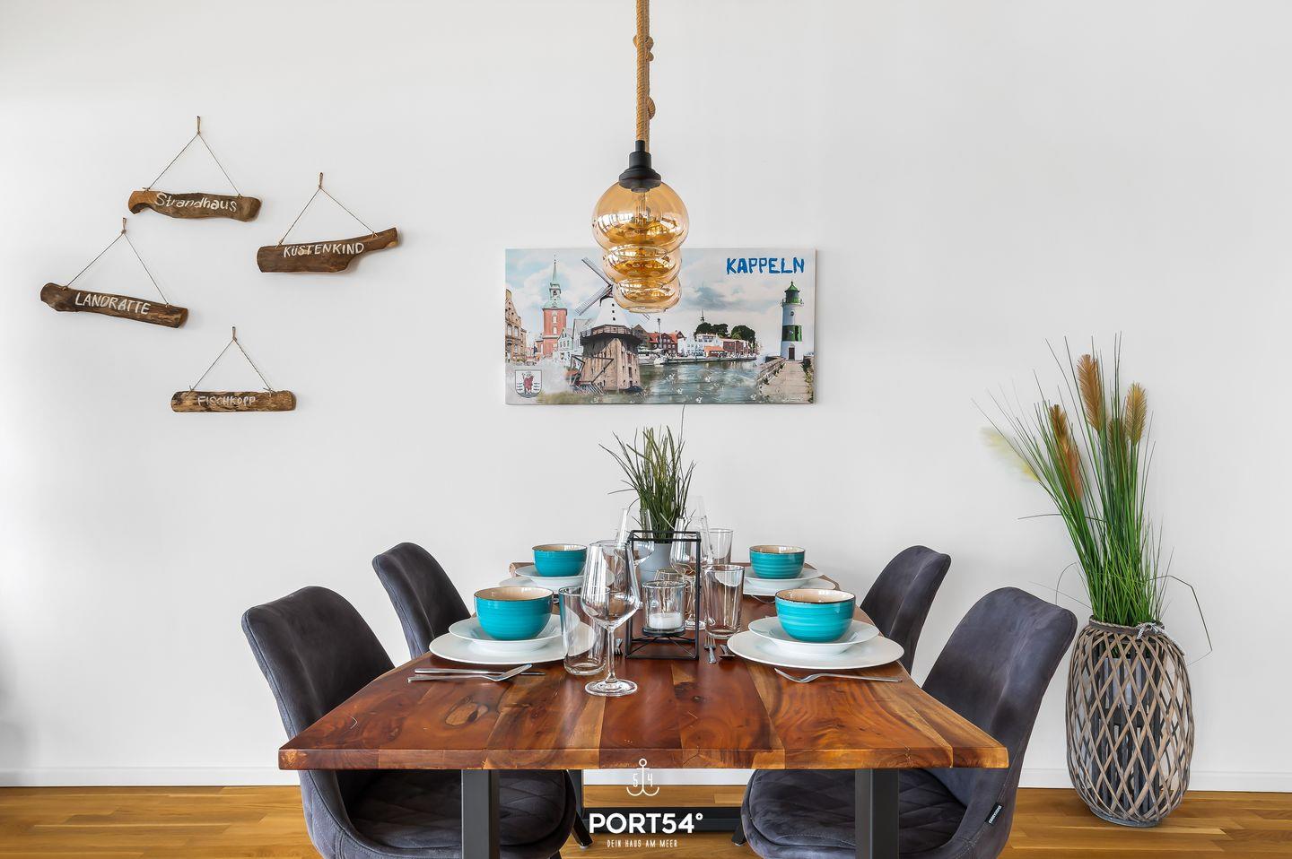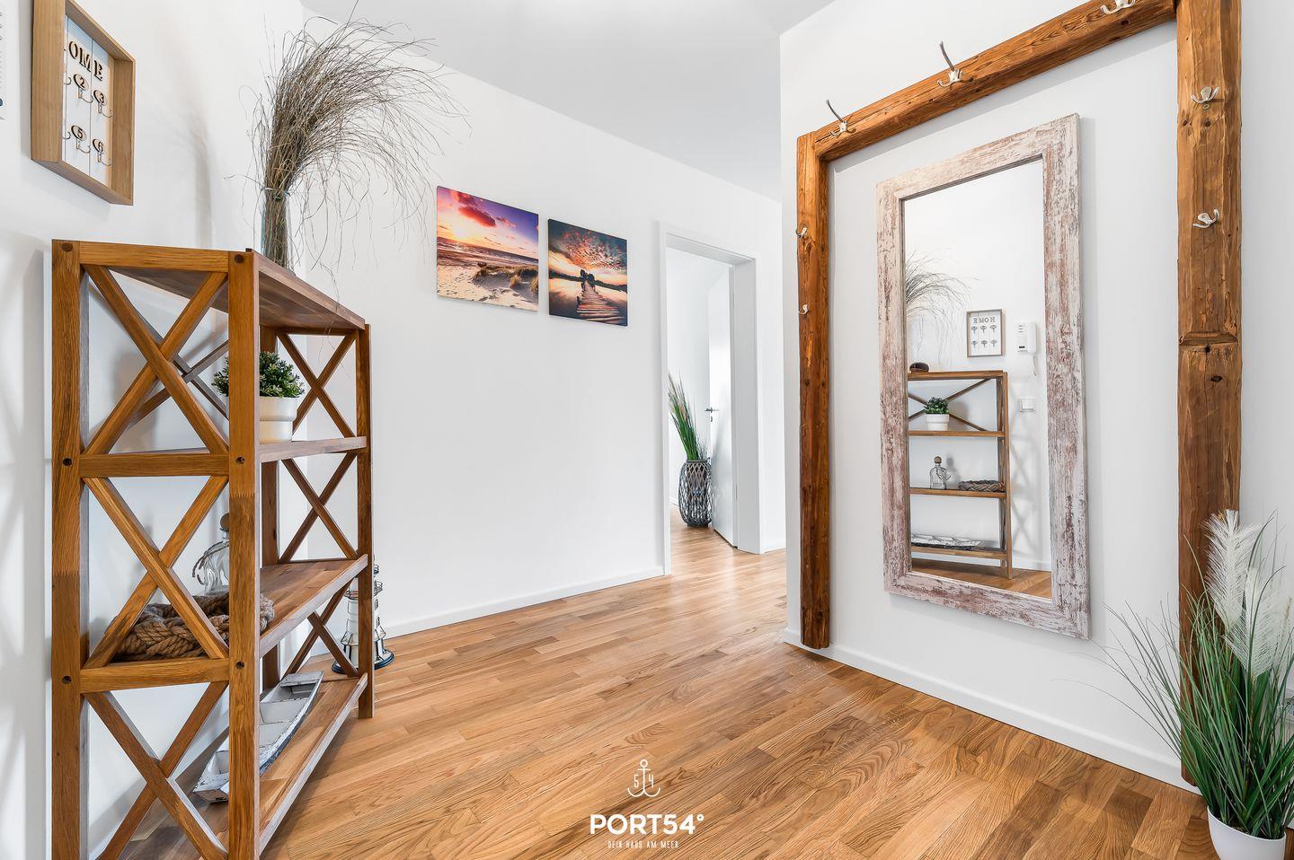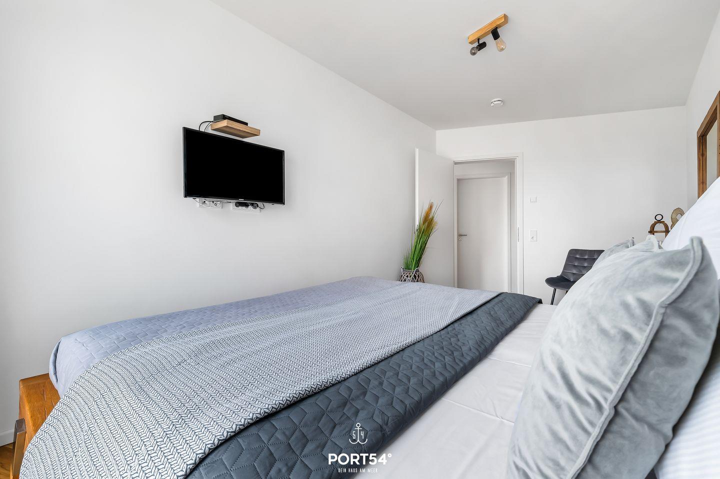 Die vollausgestattete Küche lädt dazu ein, kreative Kochkünste zu entfalten, während der offene Wohnbereich mit gemütlichem Sofa perfekte Stunden für Entspannung und Geselligkeit verspricht. Beide Schlafzimmer präsentieren je ein traumhaftes, gemütliches Doppelbett (160x200cm) und Kommoden zur Unterbringung Ihrer Kleidung – hier findet jeder seine persönliche Ruheoase. Im Badezimmer erwartet Sie nicht nur eine ebenerdige Dusche, sondern auch ein Föhn für extra Komfort. Für längere Aufenthalte stehen im Keller eine gemeinschaftliche Waschmaschine und ein Trockner gegen Bezahlung bereit. Die Loggia ist der heimliche Star dieser Wohnung. Hier eröffnet sich Ihnen ein atemberaubender Blick auf den Hafen von Kappeln und die majestätische Klappbrücke. Beobachten Sie die vorbeifahrenden Schiffe, lassen Sie sich von der frischen Ostseeluft umschmeicheln und erleben Sie maritime Romantik in vollen Zügen. Die Innenstadt von Kappeln, mit ihren charmanten kleinen Läden, erreichen Sie in nur wenigen Fußminuten. Ein perfekter Ort für entspanntes Bummeln und Shoppen, um das Flair der Stadt zu erleben.
