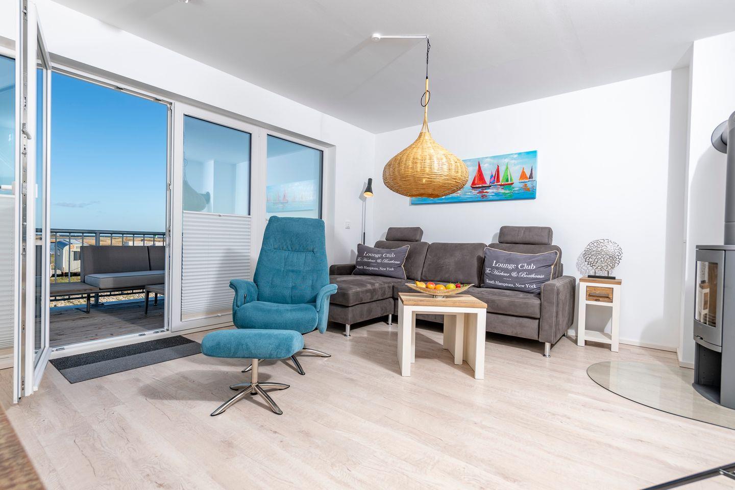 Die Ferienwohnung "Baltic Side" bietet auf 97 m² eine moderne Ausstattung mit zwei Schlafzimmern, Kaminofen, offenem Wohn- und Essbereich sowie einem Balkon mit Meerblick. Der Sandstrand ist in 350 m erreichbar.