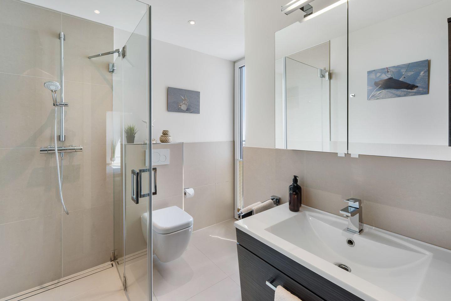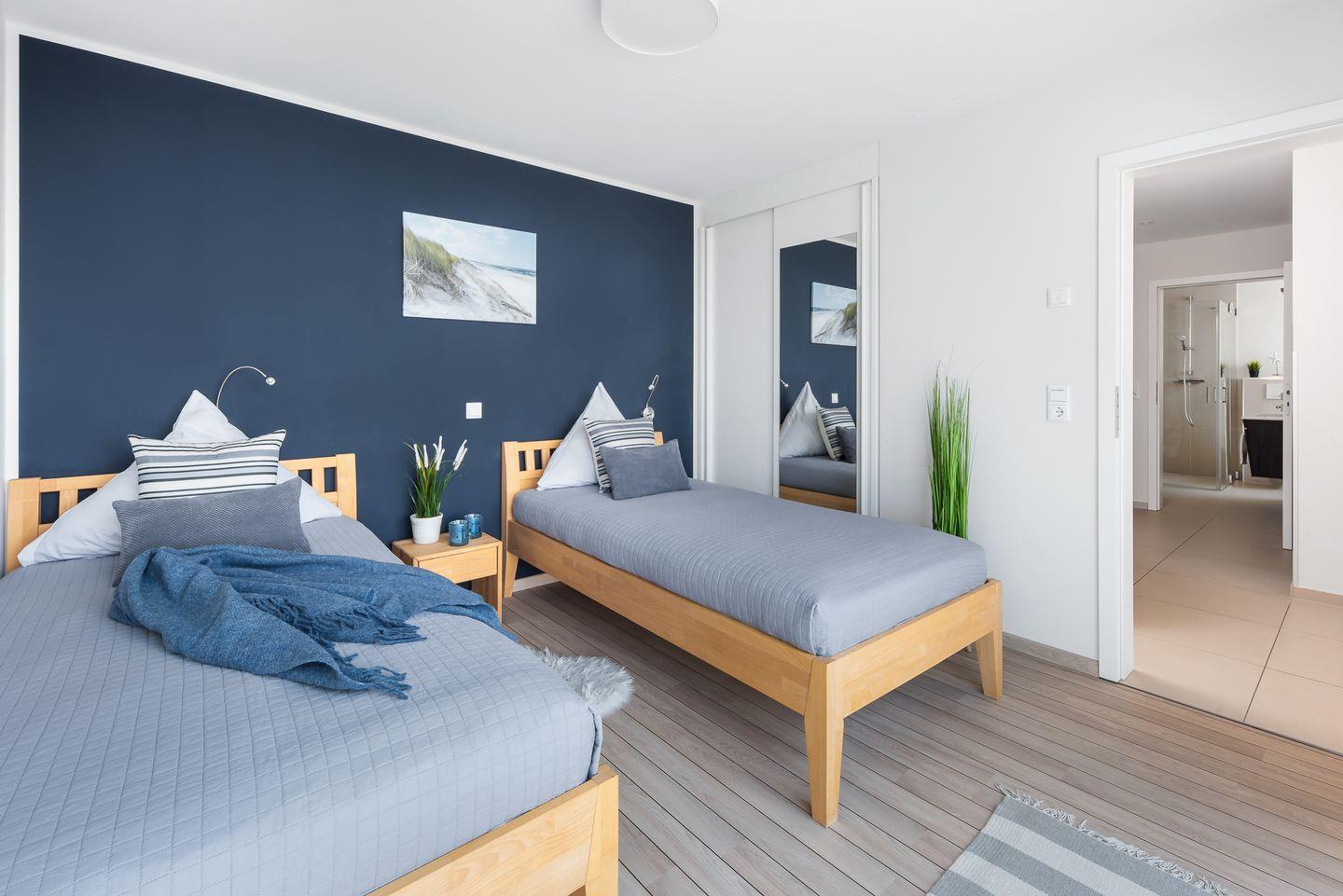 Auf 4 Zimmern und großzügig angelegten Wohnbereichen finden bis zu sechs Gäste Platz. Drei separate Schlafzimmer sorgen für angenehme Rückzugsorte, während zwei voll ausgestattete Badezimmer (mit Dusche und Eckbadewanne) sowohl Komfort als auch Funktionalität bieten. Die Fußbodenheizung in allen Räumen sorgt das ganze Jahr über für angenehme Temperaturen – auch an kühleren Tagen.