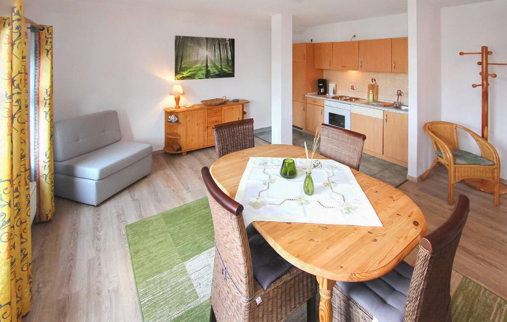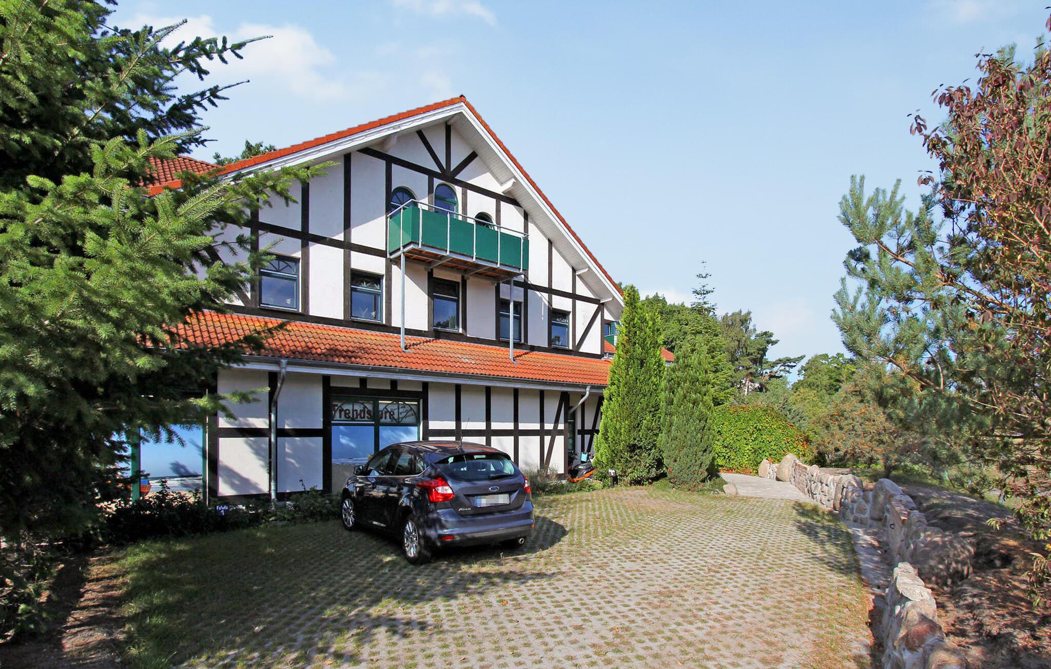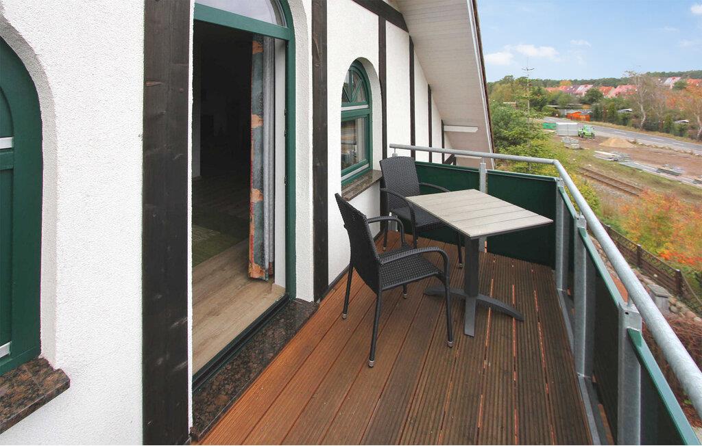 De fem ferielejligheder ligger på øverste etage i et bolig- og erhvervsbyggeri med en central beliggenhed, cirka 500 m fra Østersøstranden. Der er en restaurant, et apotek og en souvenirbutik i bygningen. Adgang til lejlighederne, parkeringspladser, cykelrum og et centralt udendørs opholdsområde med siddepladser og grill er til rådighed for feriegæster i et separat og afgrænset område. Den samlede pris inkluderer vand- og energiforbrug samt slutrengøring. Du skal selv medbringe sengelinned og håndklæder. Husdyr: ÉN lille hund op til en højde på 30 cm er tilladt i denne ejendom. Denne lejlighed har en størrelse på cirka 50 kvadratmeter og er velegnet til op til 4 personer. egnet. Det har en stue (polstret opholdsområde med sovesofa, spiseplads, TV, radio), tekøkken med el-komfur, soveværelse (dobbeltseng, udtræksseng), bruser/toilet, centralvarme. Karlshagen er et feriested ved Østersøen i den nordlige del af øen Usedom. Restauranter, butikker, lystbådehavn med fragtmuligheder og cykelstier ligger i byen. Ridestald, tennis og bowlingbane ca 2,5 km. Stedet har en smuk sandstrand.