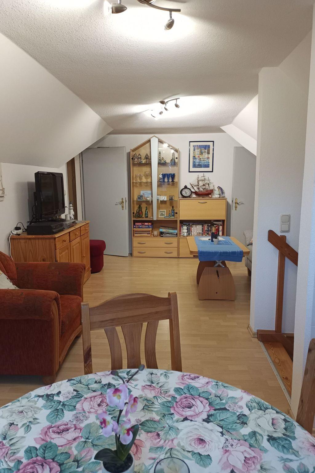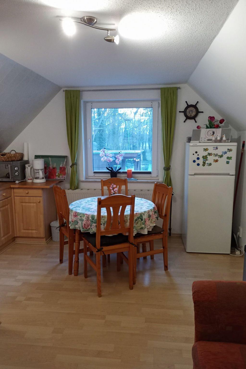 The 60 m² living space is divided into a bedroom with a double bed and an open-plan living area with dining table and kitchenette. There is also a shower room with WC and wash hand basin. The spacious bedroom offers enough space for an extra bed for a child. Use the TV with digital TV in the lounge for cosy evenings in the seating area with a couch and an armchair. The fully-equipped kitchen has a fridge with freezer compartment, induction hob and small electrical appliances such as a coffee machine, toaster and kettle, providing you with everything you need for convenient self-catering.