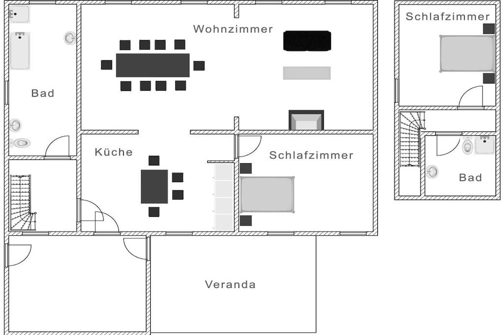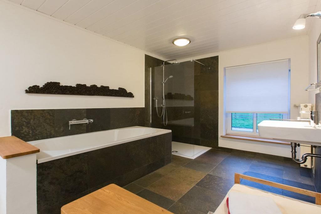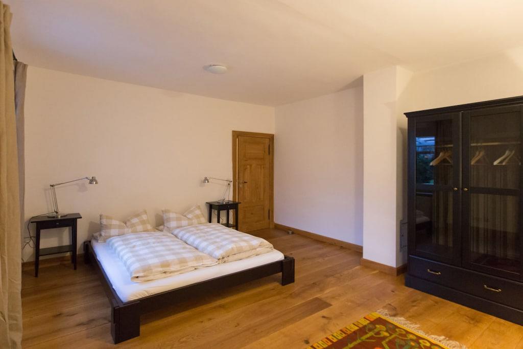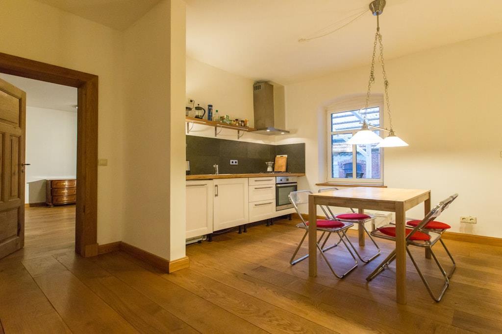 Very spacious holiday apartment for 4 people. 2 bedrooms, 2 bathrooms. TV, WiFi. Oak floors. Quiet location. Forest and river next door.