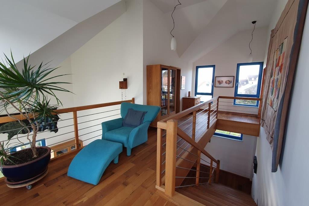 På 2. etage: (Køkken(mikrobølgeovn), stue / spisestue(, Fjernsyn, spisebord, varme), badeværelse(, toilet, badekar, bruser, håndvask, varme)) , , soveværelse(, , dobbeltseng, varme), Internetadgang, Internetadgang, varme, have(Grill center, havemøbler), cykler til rådighed