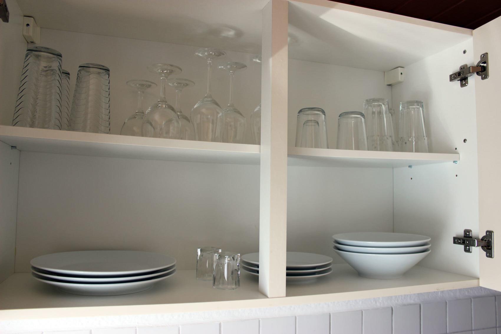 1 Küche (Herd mit vier Kochfeldern, Backofen, Kühlschrank, Kaffeemaschine für Filterkaffee, Toaster, Wasserkocher, Kaffeepulver, Kaffeesahne, Salz, Pfeffer, Zucker, Essig und Olivenöl inkl. Geschirr, Besteck siehe Bilder) ,