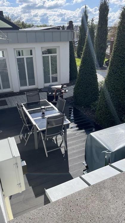 • Außenbereich mit Sitzgelegenheiten und Gasgrill