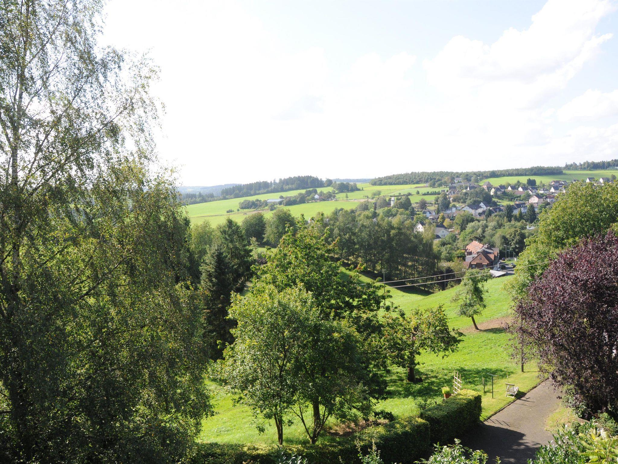Unser Haus befindet sich auf einer Anhöhe, die von Wiesen und Wäldern umgeben ist und einen wunderschönen Weitblick bietet.